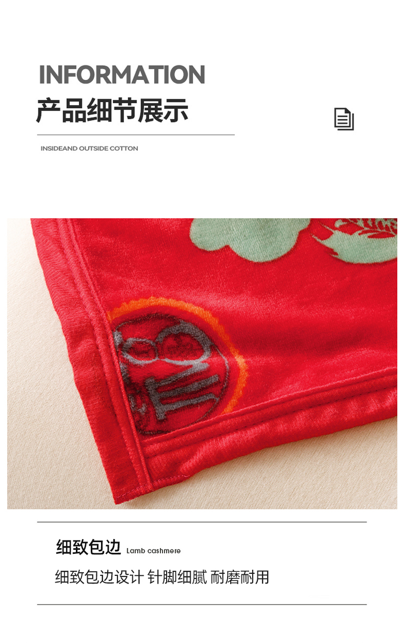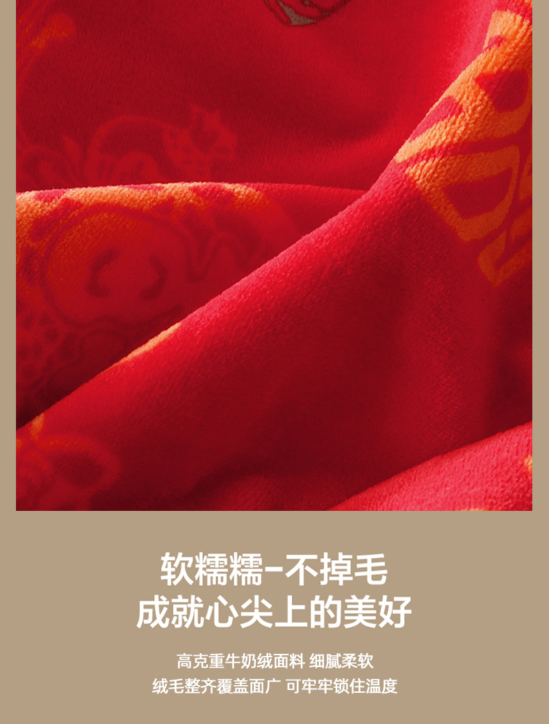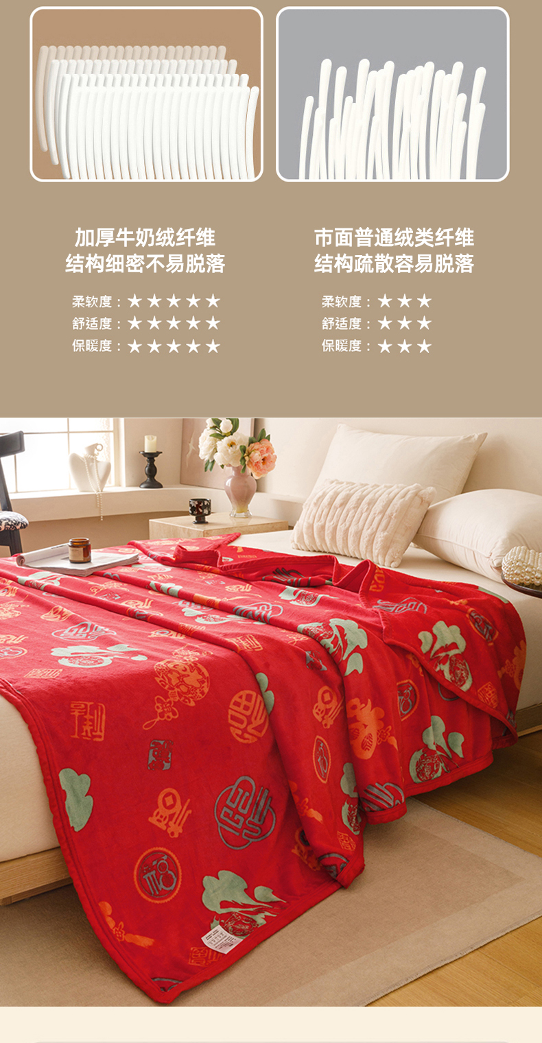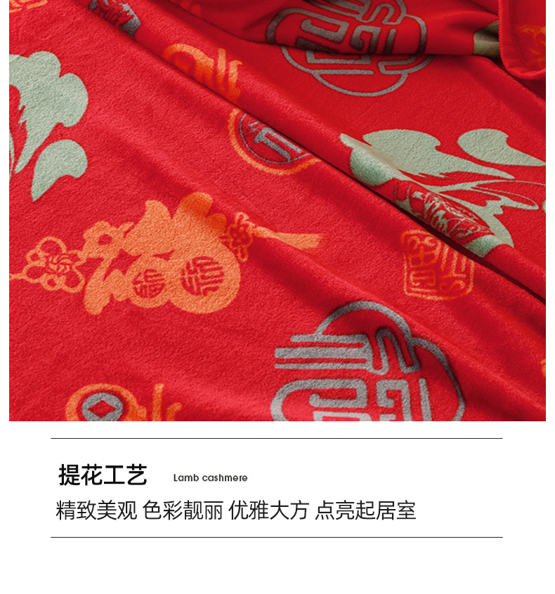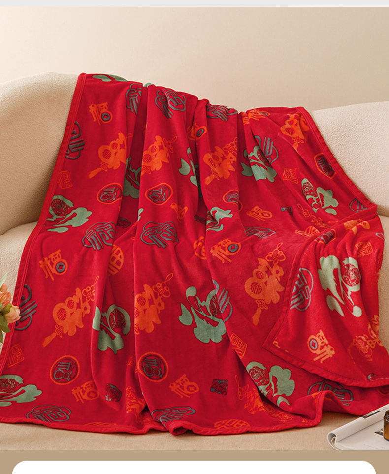 商品名称:悦然毛巾被 2025新款300克印花牛奶绒盖毯休闲毯素色毛毯毯子 百福毯红
