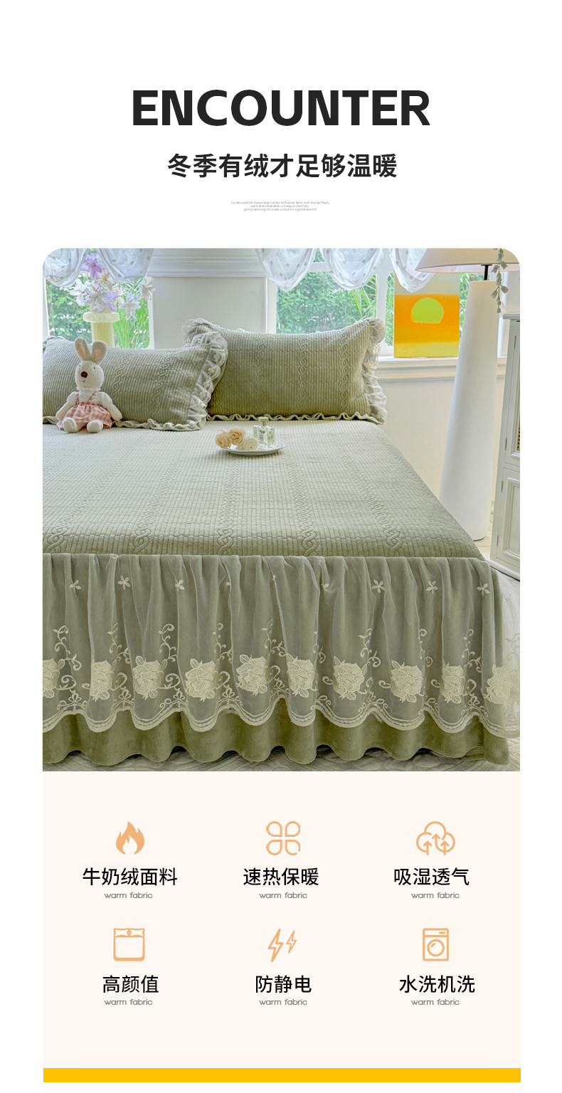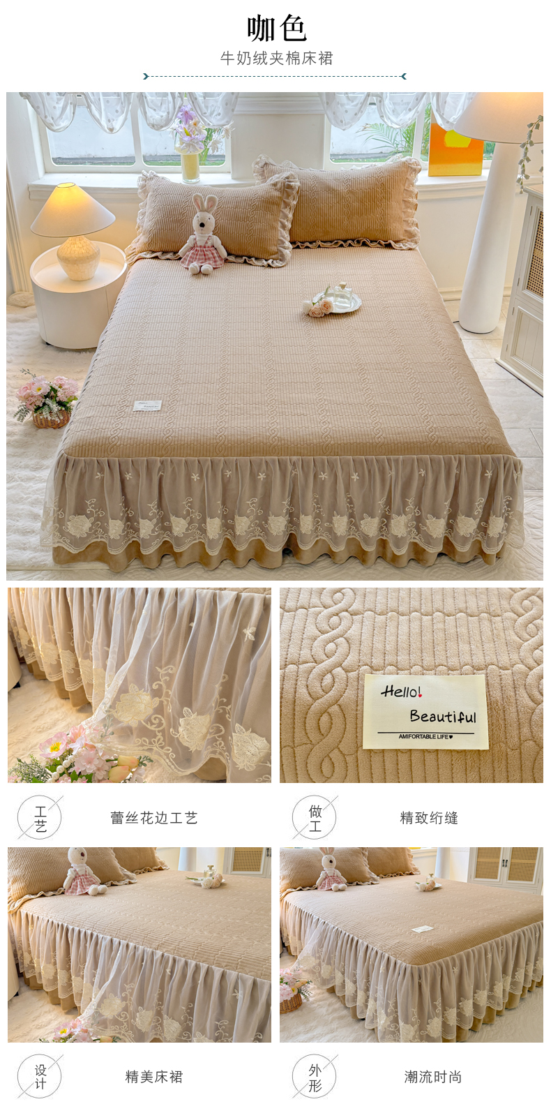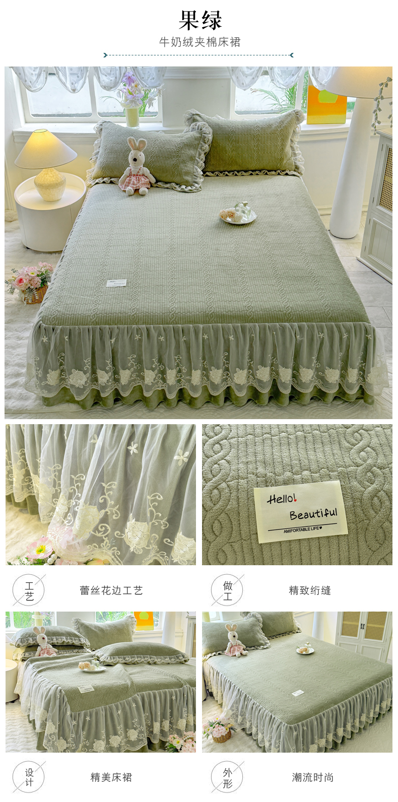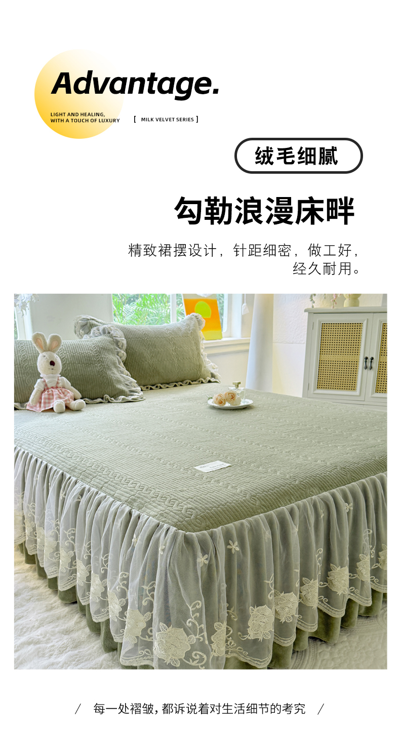 美达家纺 2025新款牛奶绒纯色夹棉床裙 牛奶绒夹棉床裙-雾蓝