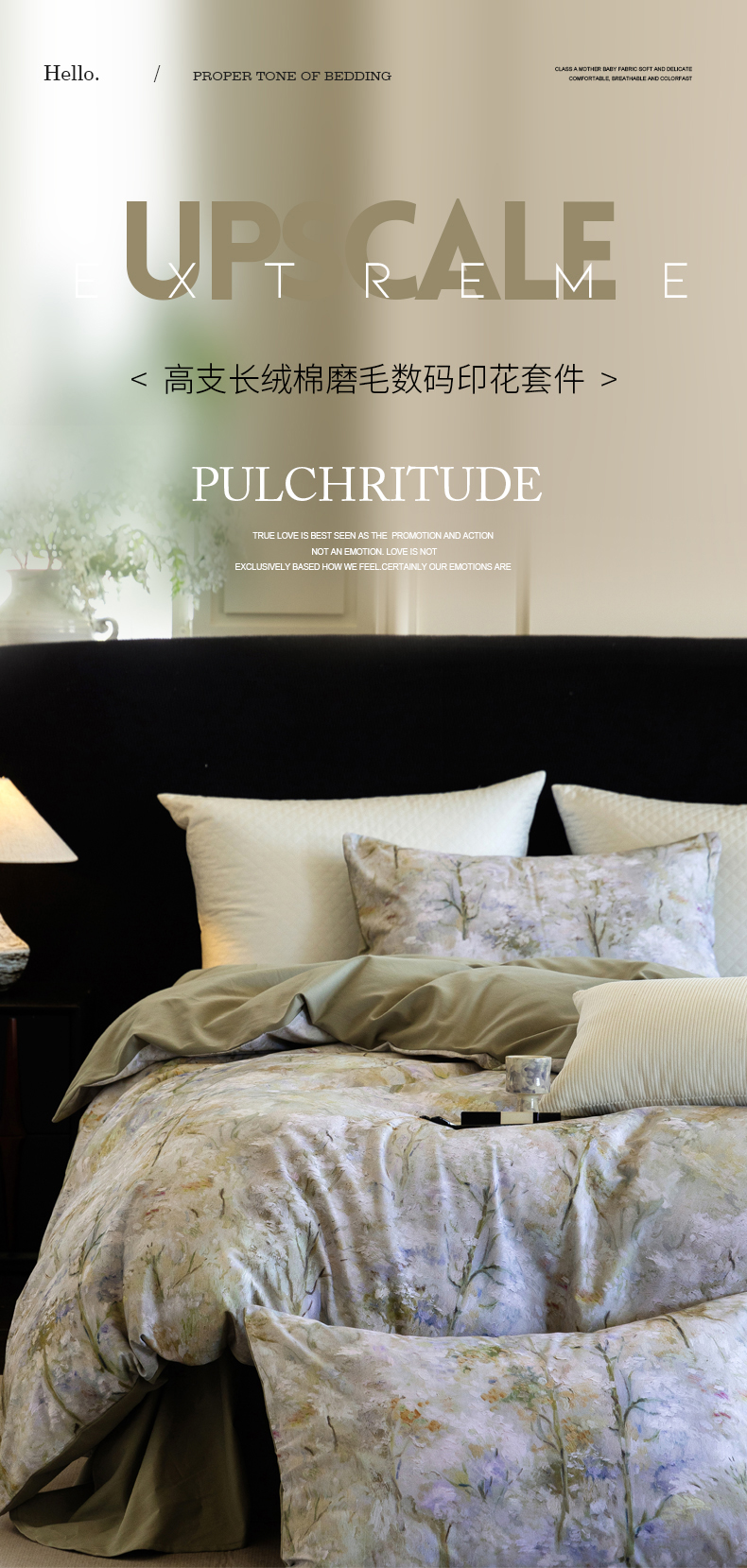 商品名称:立奥被业 2025新款全棉高密磨毛数码印花四件套(控价199)丛林绿