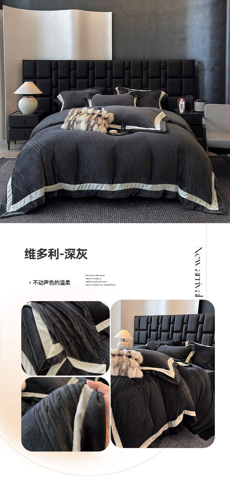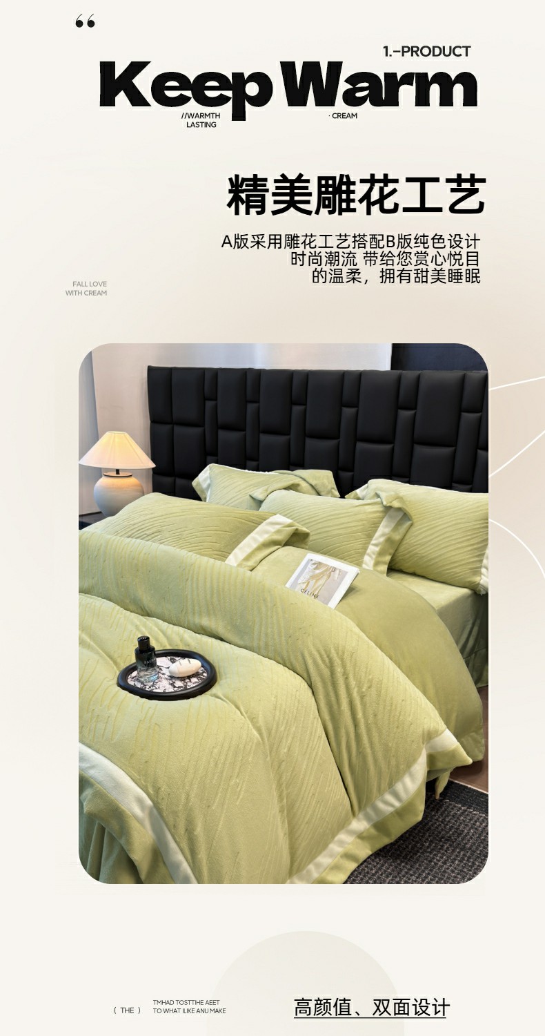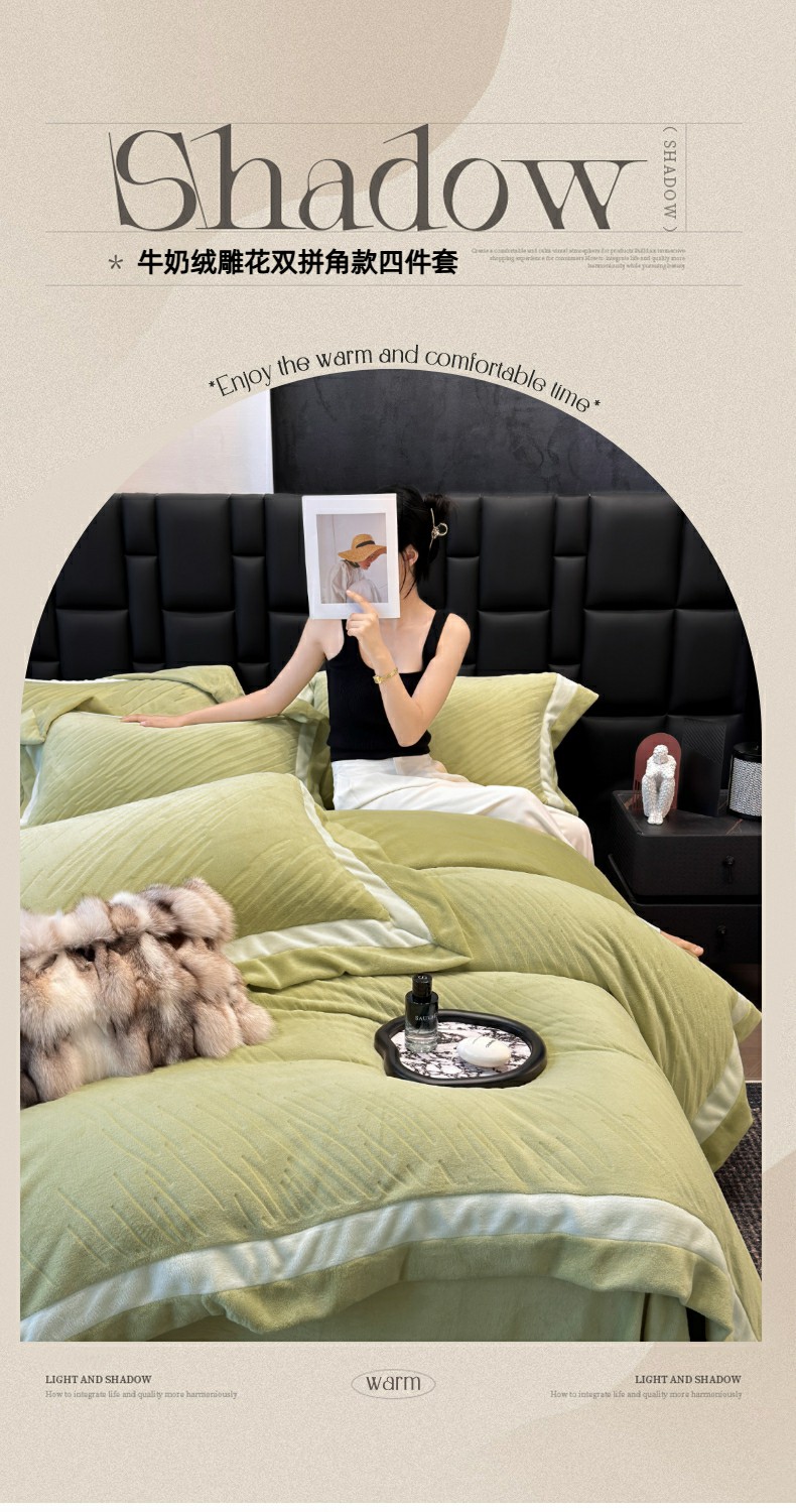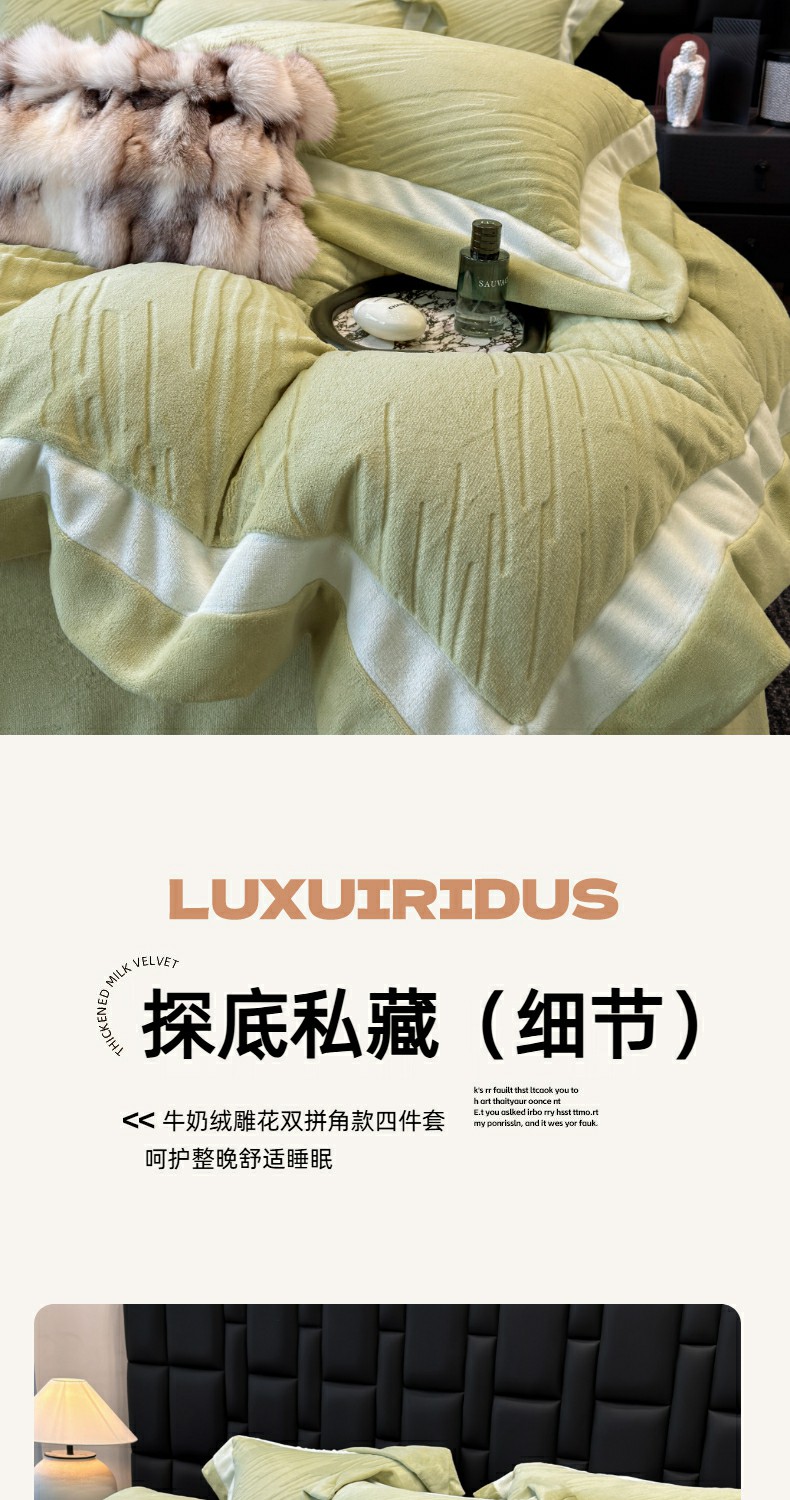 (总)首尔家纺 2025新款雕花牛奶绒双拼角四件套-维多利系列