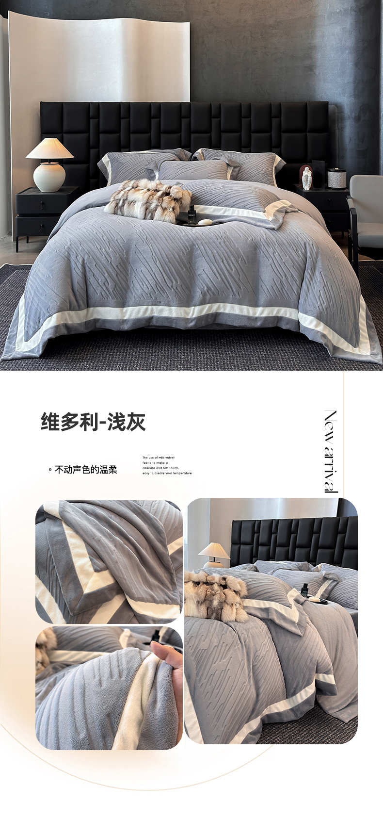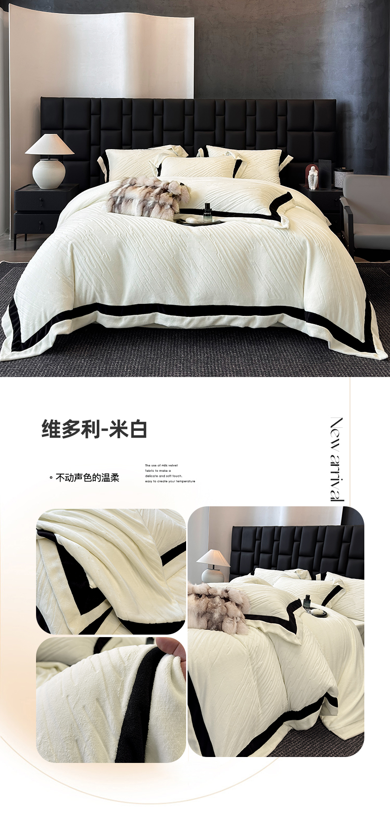 商品名称:(总)首尔家纺 2025新款雕花牛奶绒双拼角四件套-维多利系列