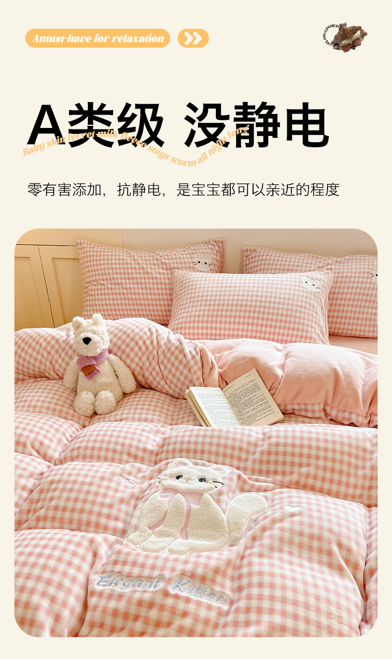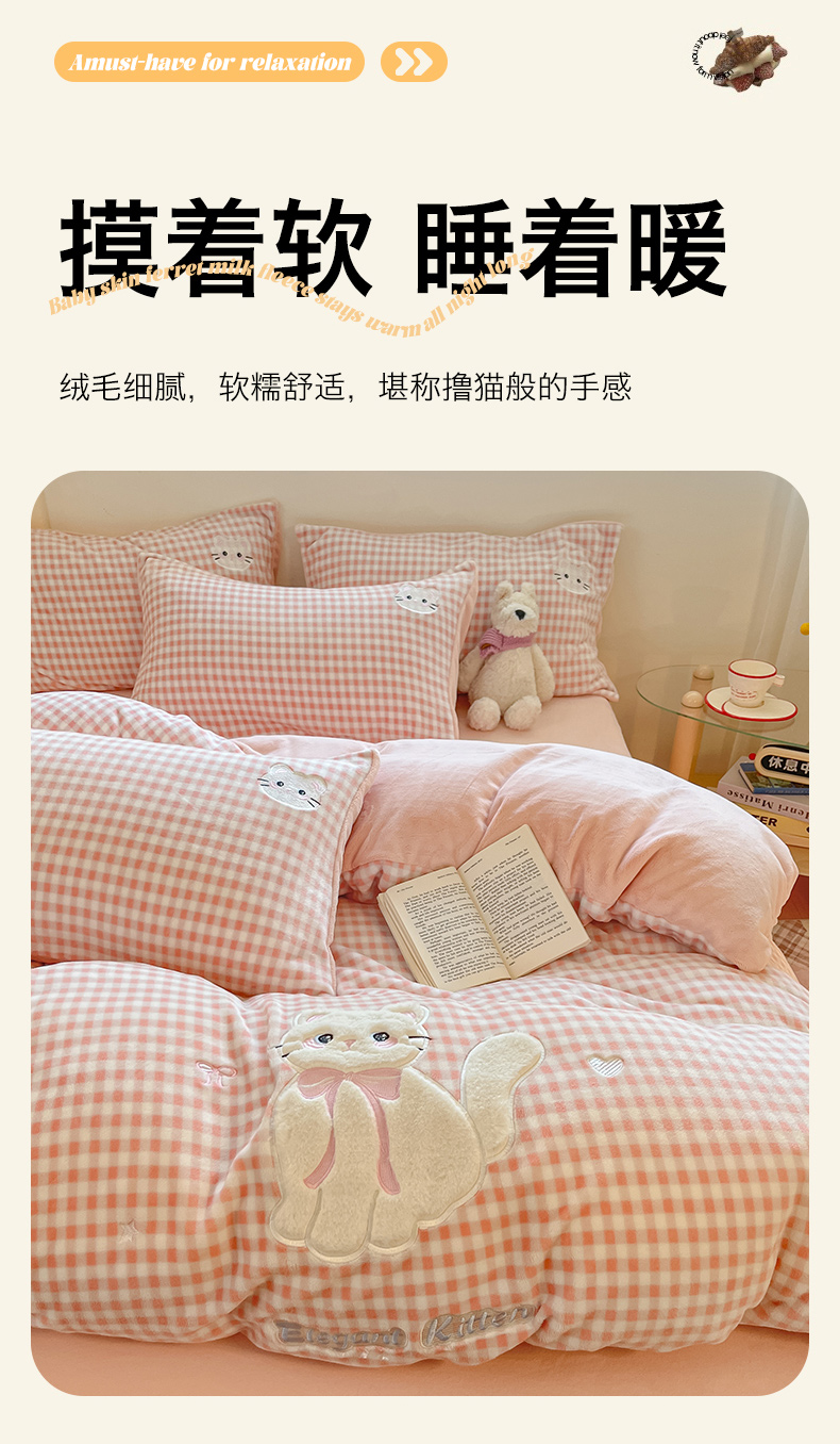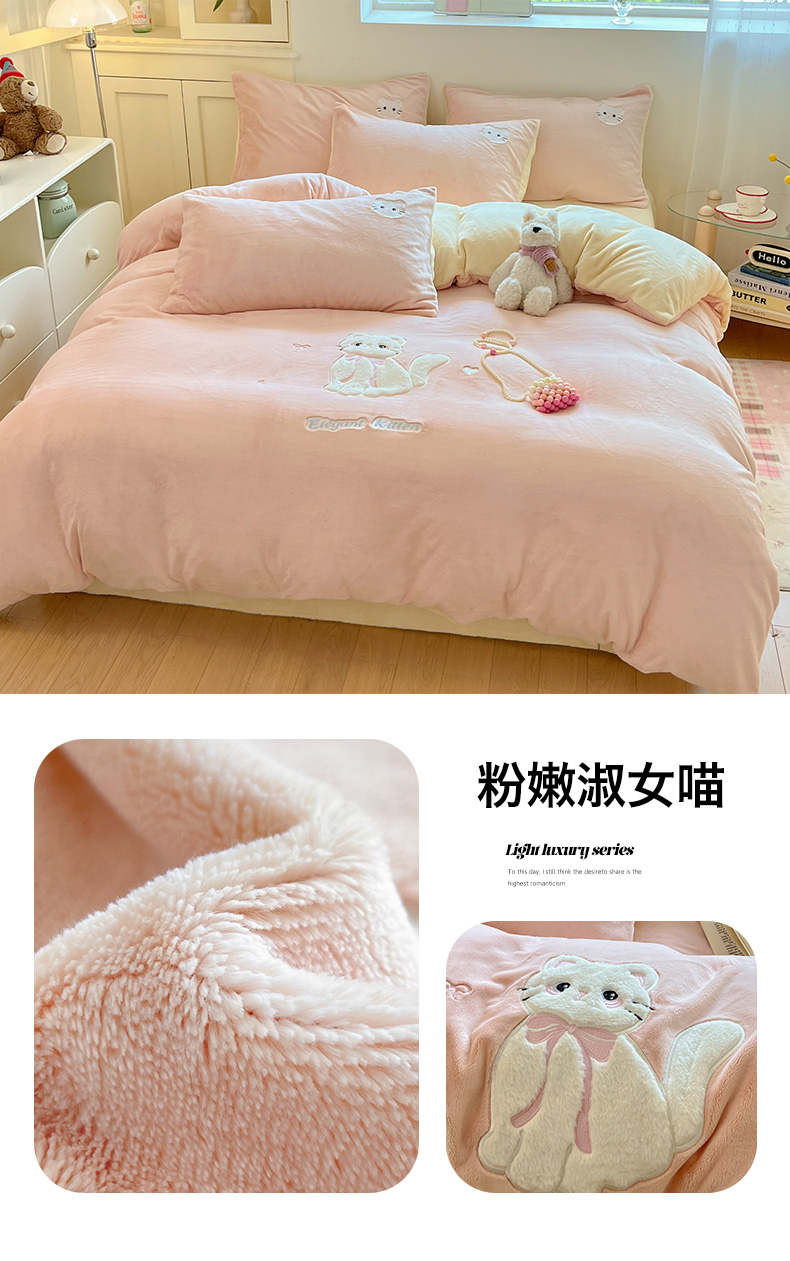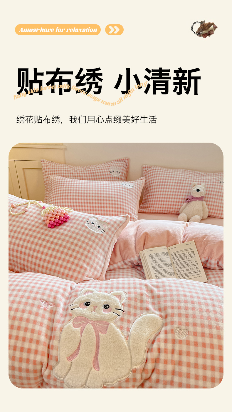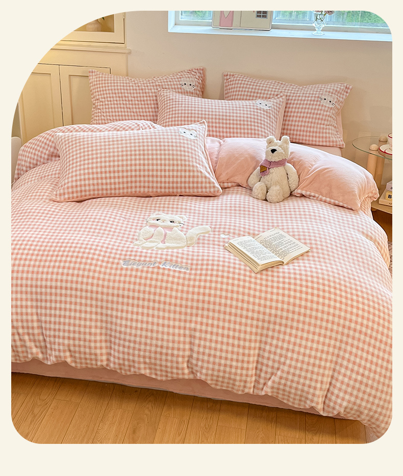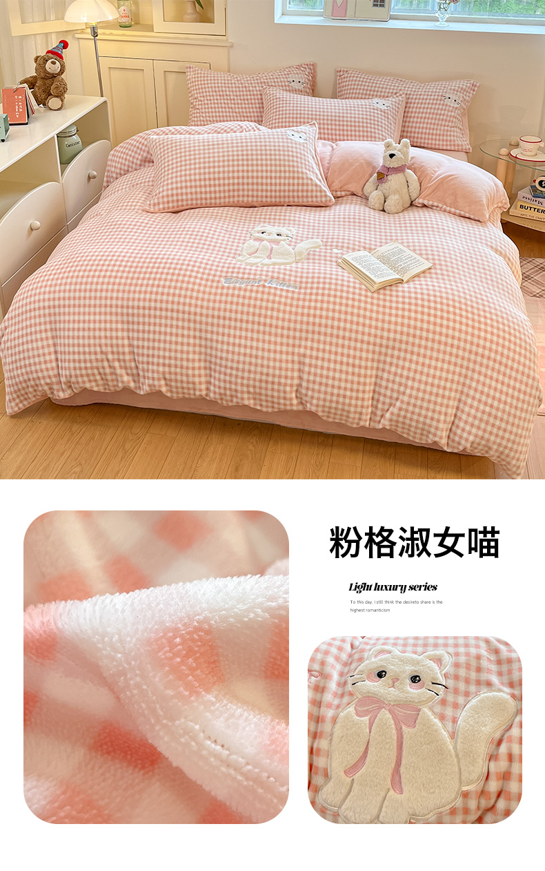 当前位置: 91家纺网 > 商品网购 > 床品套件 > 四件套 > 牛奶绒四件套 > 沐慕 2025新款200克牛奶绒贴布绣四件套 粉格淑女喵