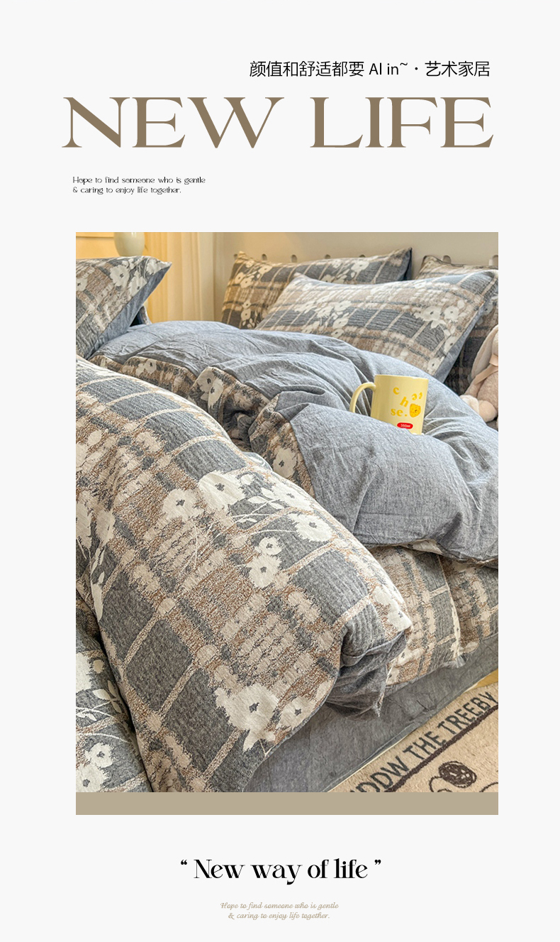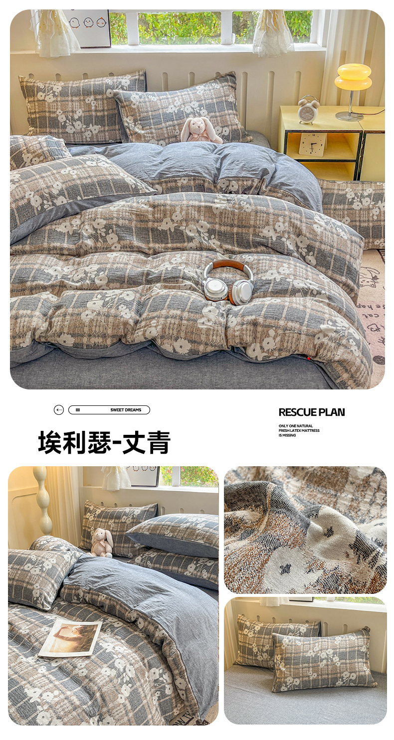 当前位置: 91家纺网 > 商品网购 > 床品套件 > 四件套 > 全棉普通四件套 > 菡宝 2025新款全棉纯棉色织双层纱提花四件套支持定制定做尺寸 梦幽