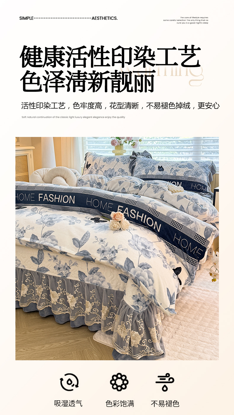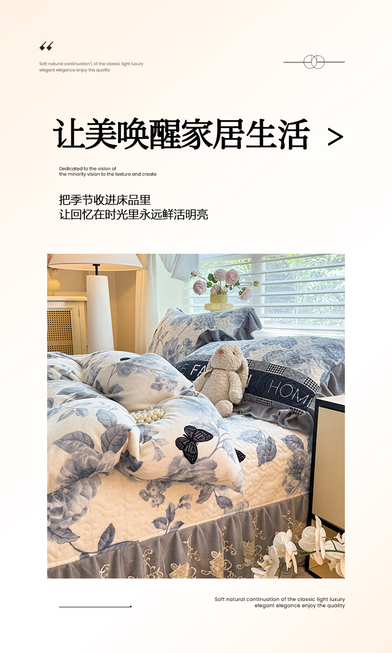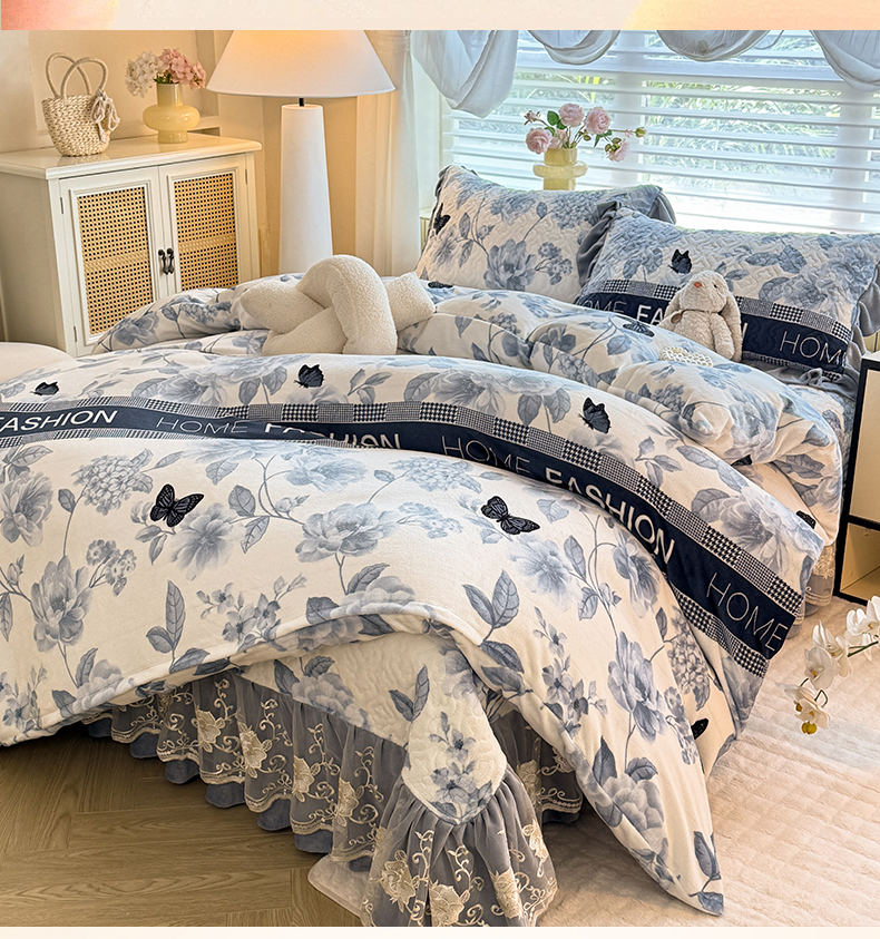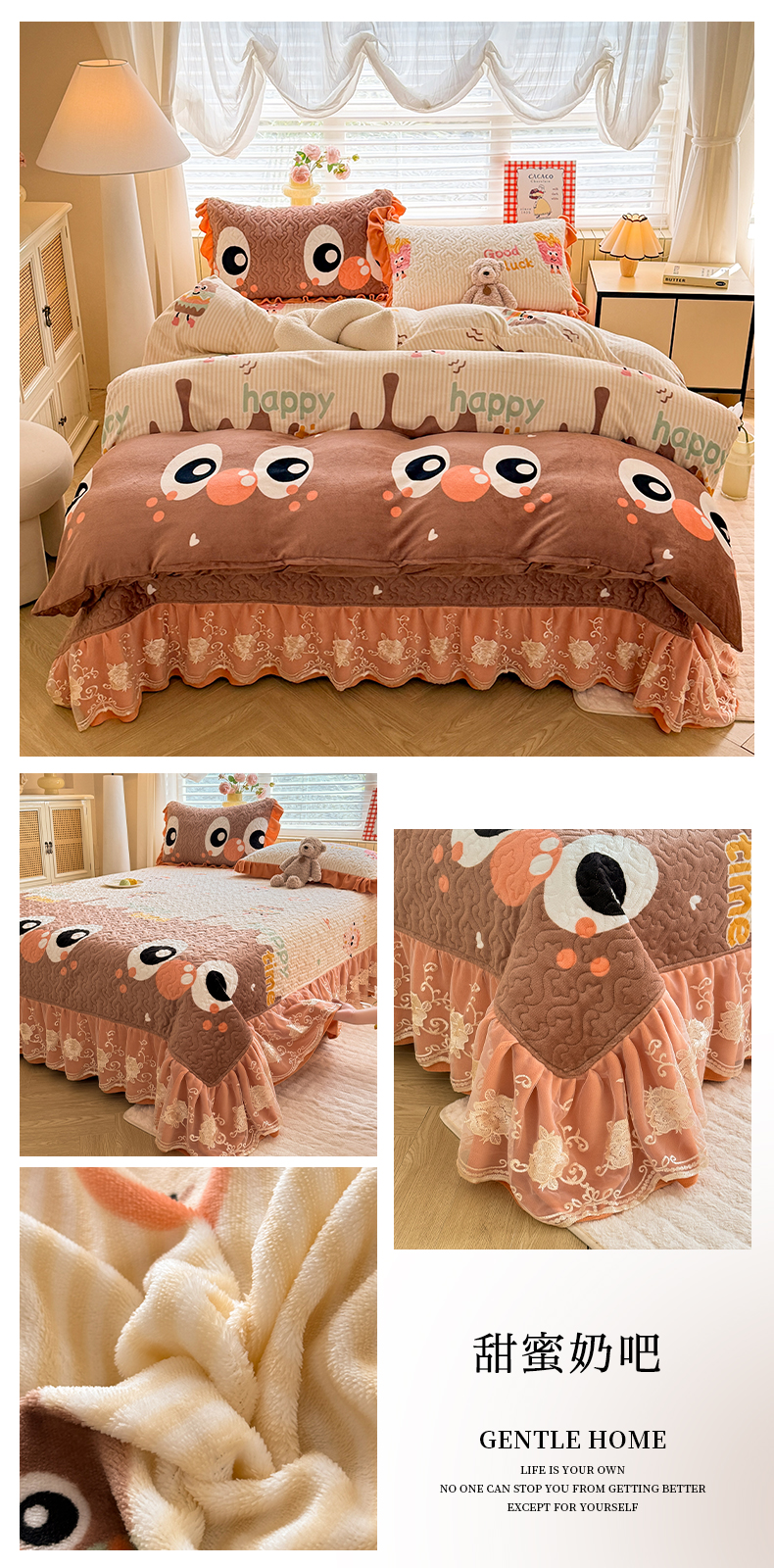 美达家纺 2025新款卡通牛奶绒印花床盖四件套 梦蝶