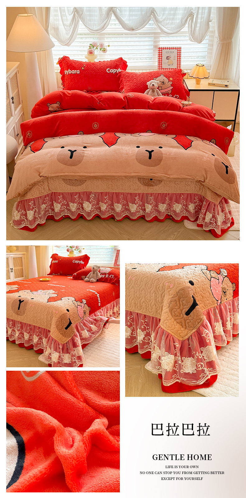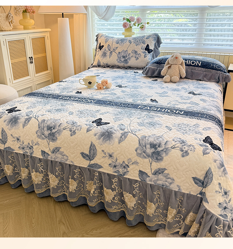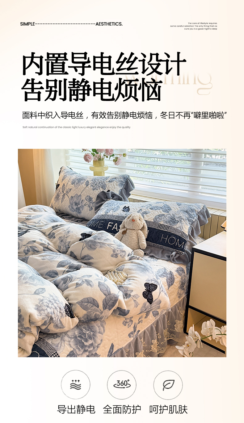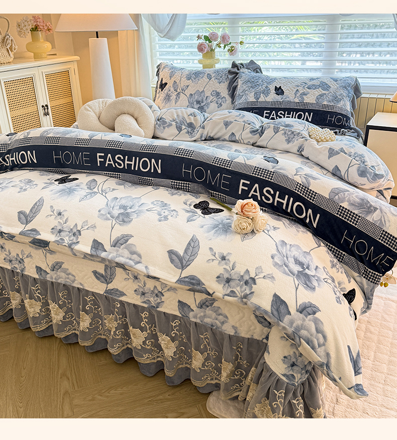 美达家纺 2025新款卡通牛奶绒印花床盖四件套 梦蝶