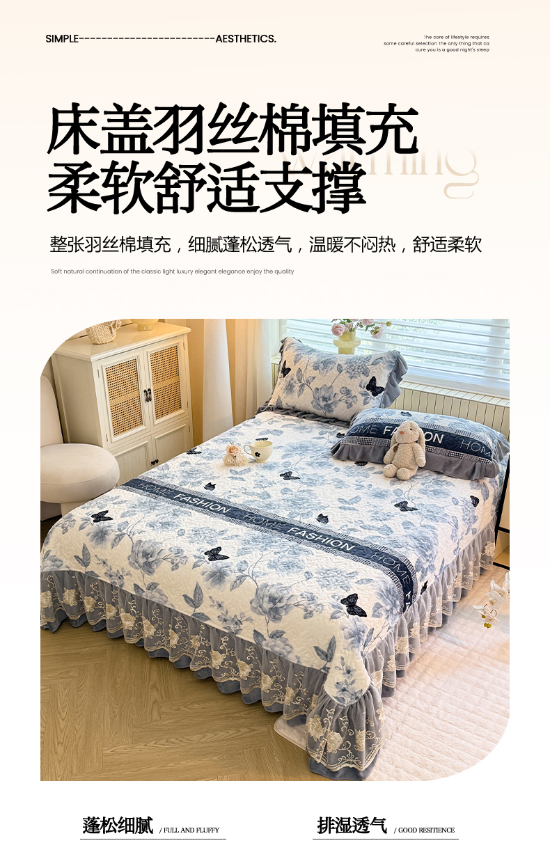 (总)美达家纺 2025新款全棉AB版单层床裙,解语花,南湘,沁雨花叶,悦棠