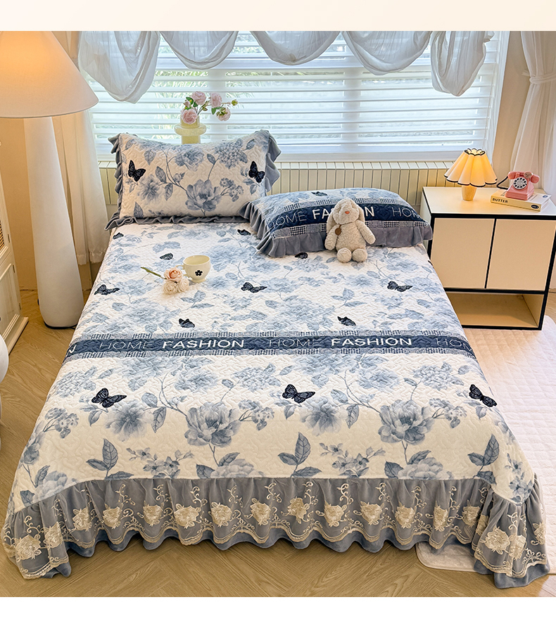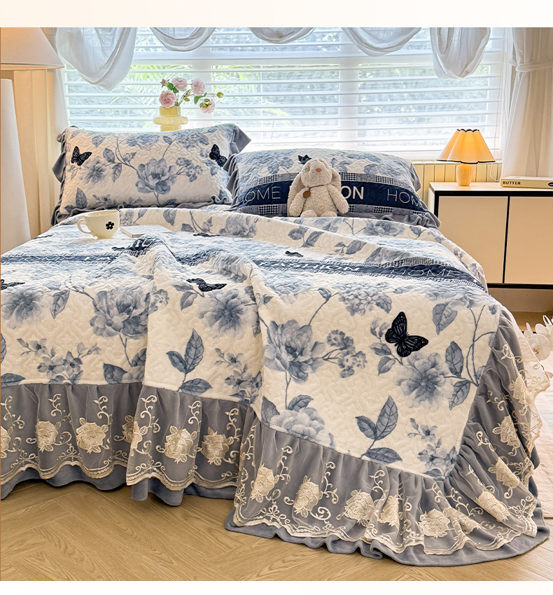商品名称:美达家纺 2025新款卡通牛奶绒印花床盖四件套 梦蝶