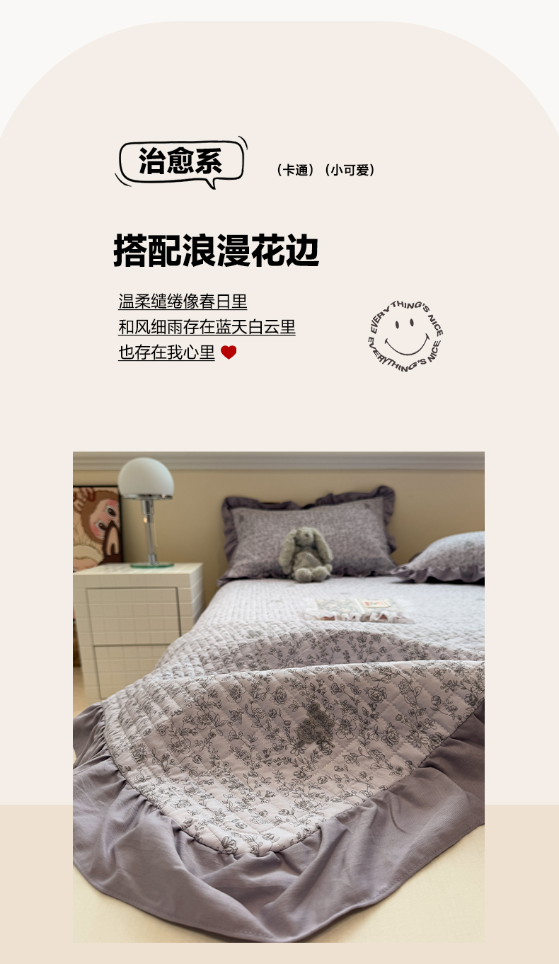 当前位置: 91家纺网 > 商品网购 > 床上用品 > 床盖 > 一加一 2025新款小清新花边款大豆被床盖系列 巴洛克之恋