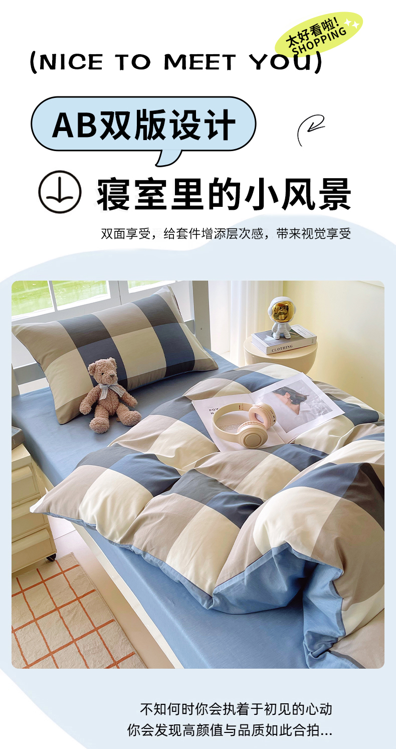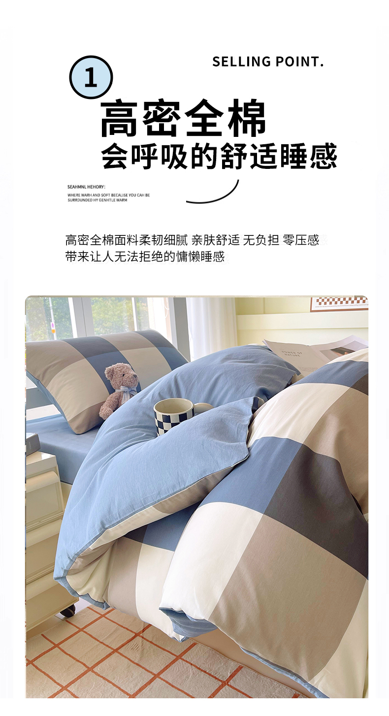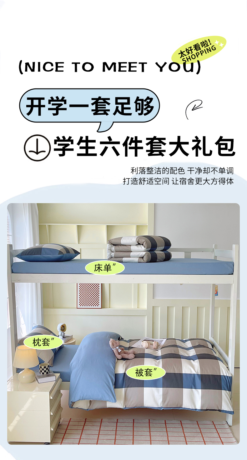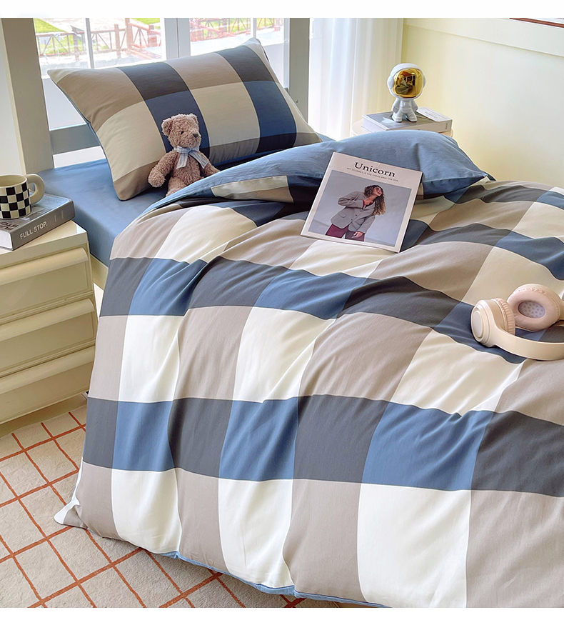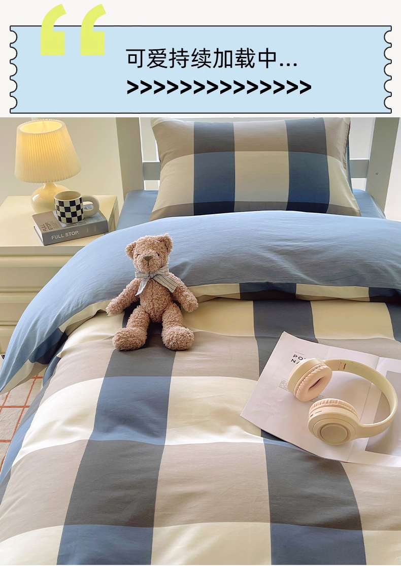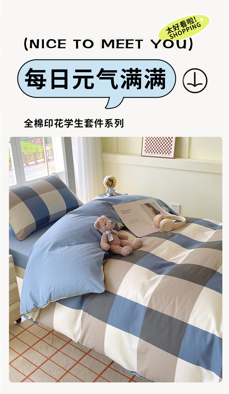 当前位置: 91家纺网 > 商品网购 > 床品套件 > 三件套 > 春皖家纺 2025新款12868全棉印花上下铺四件套-学生床 蓝大格