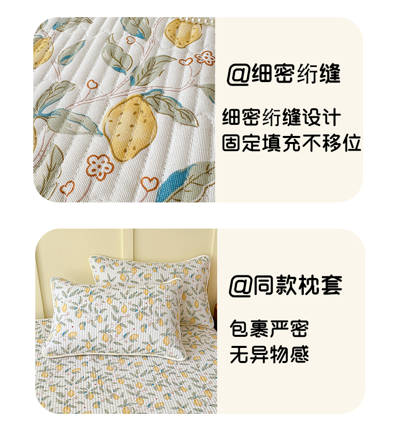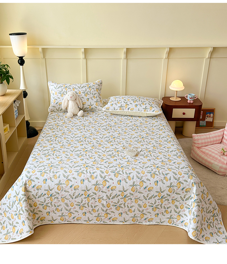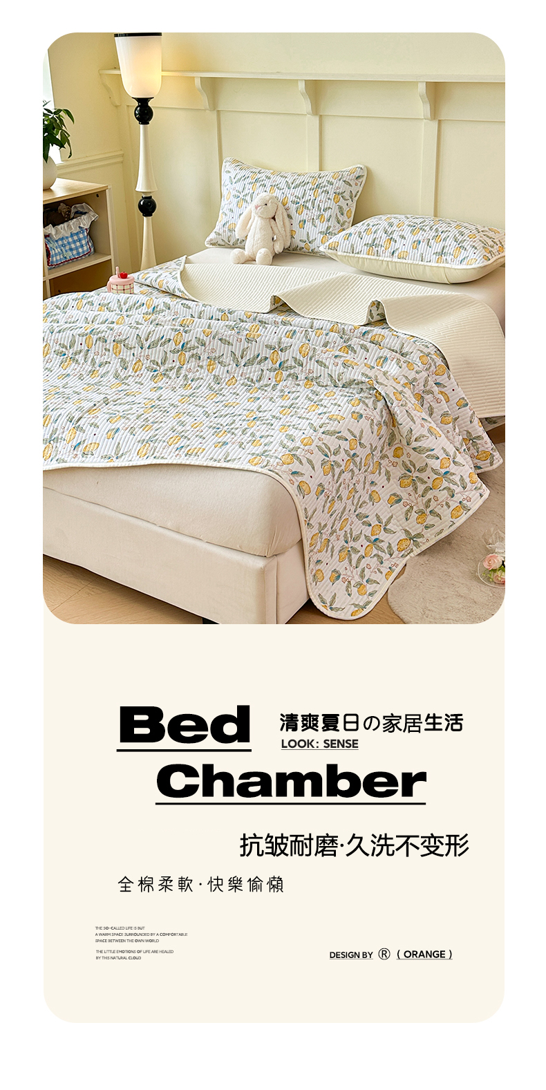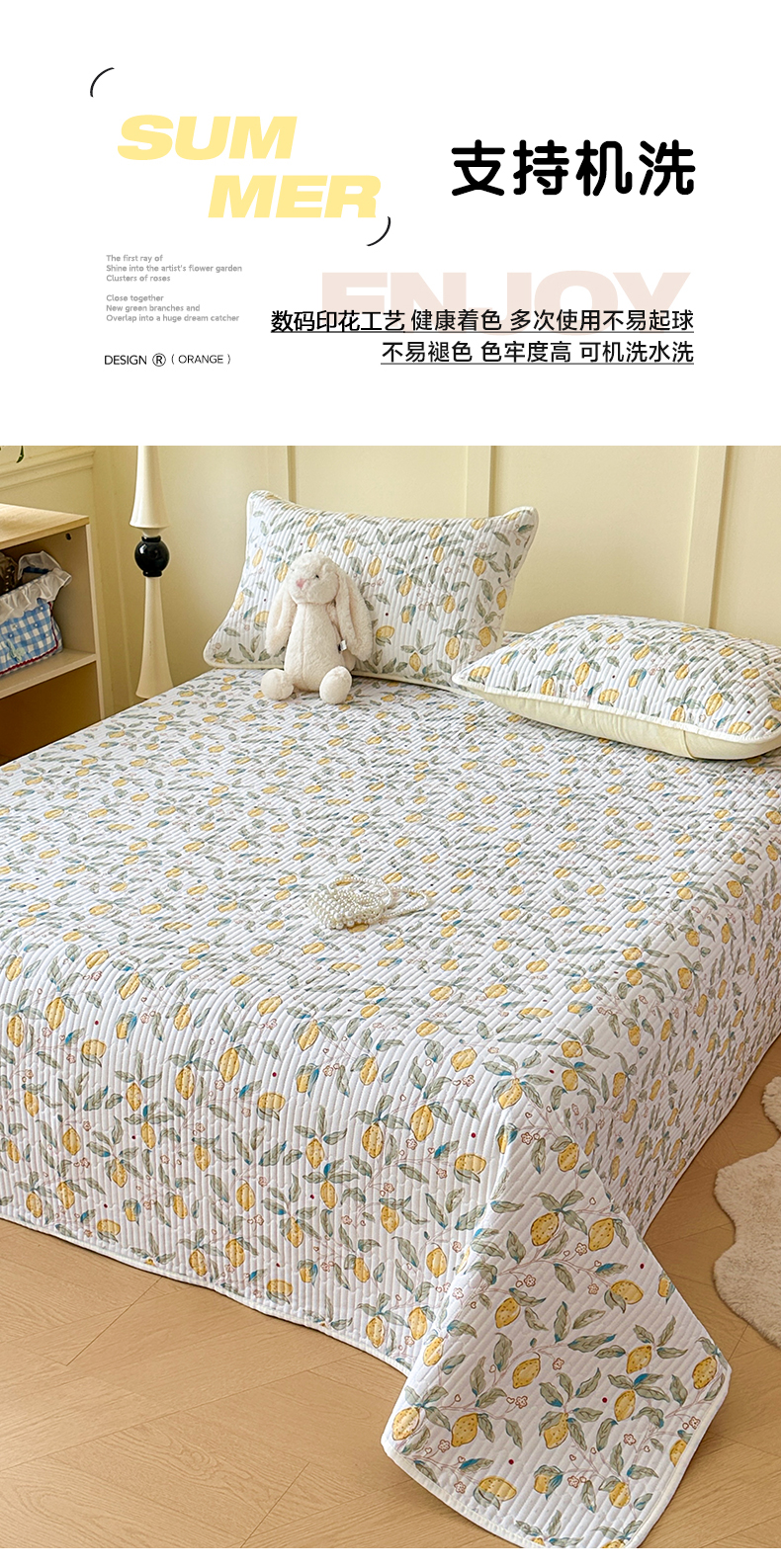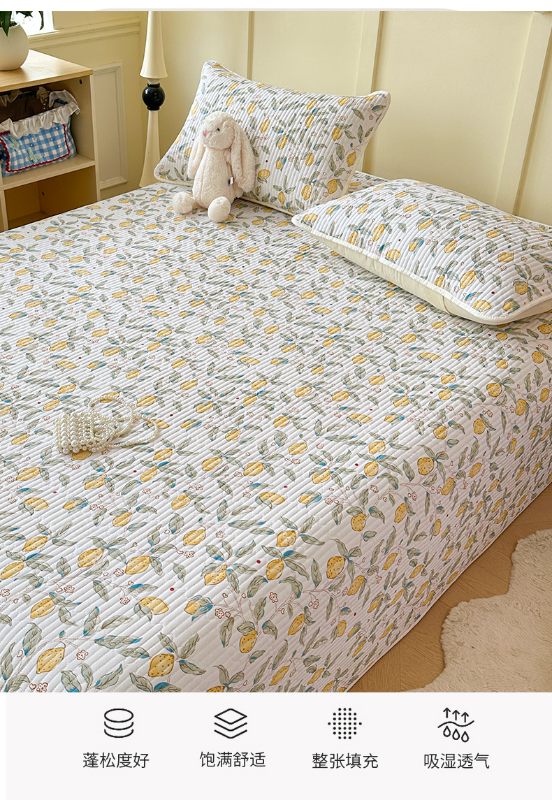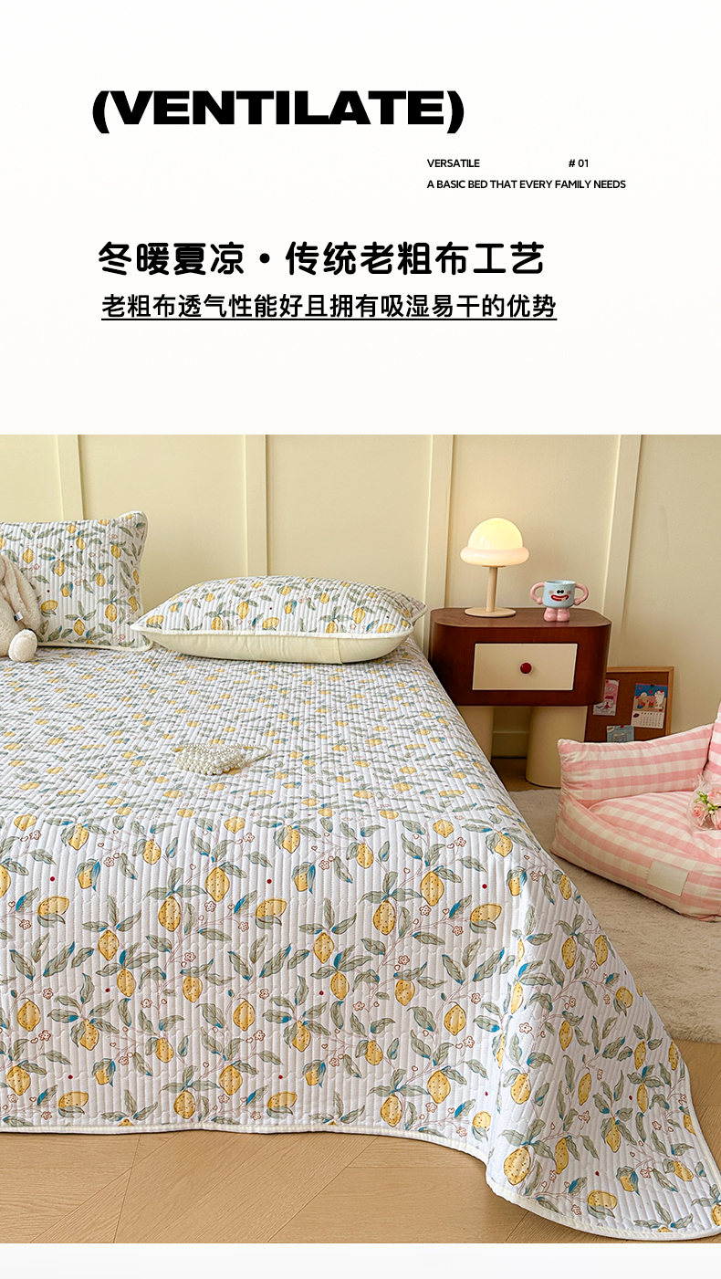 寐居家纺 2025新款A类数码印花老粗布夹棉床盖 浆果枝枝