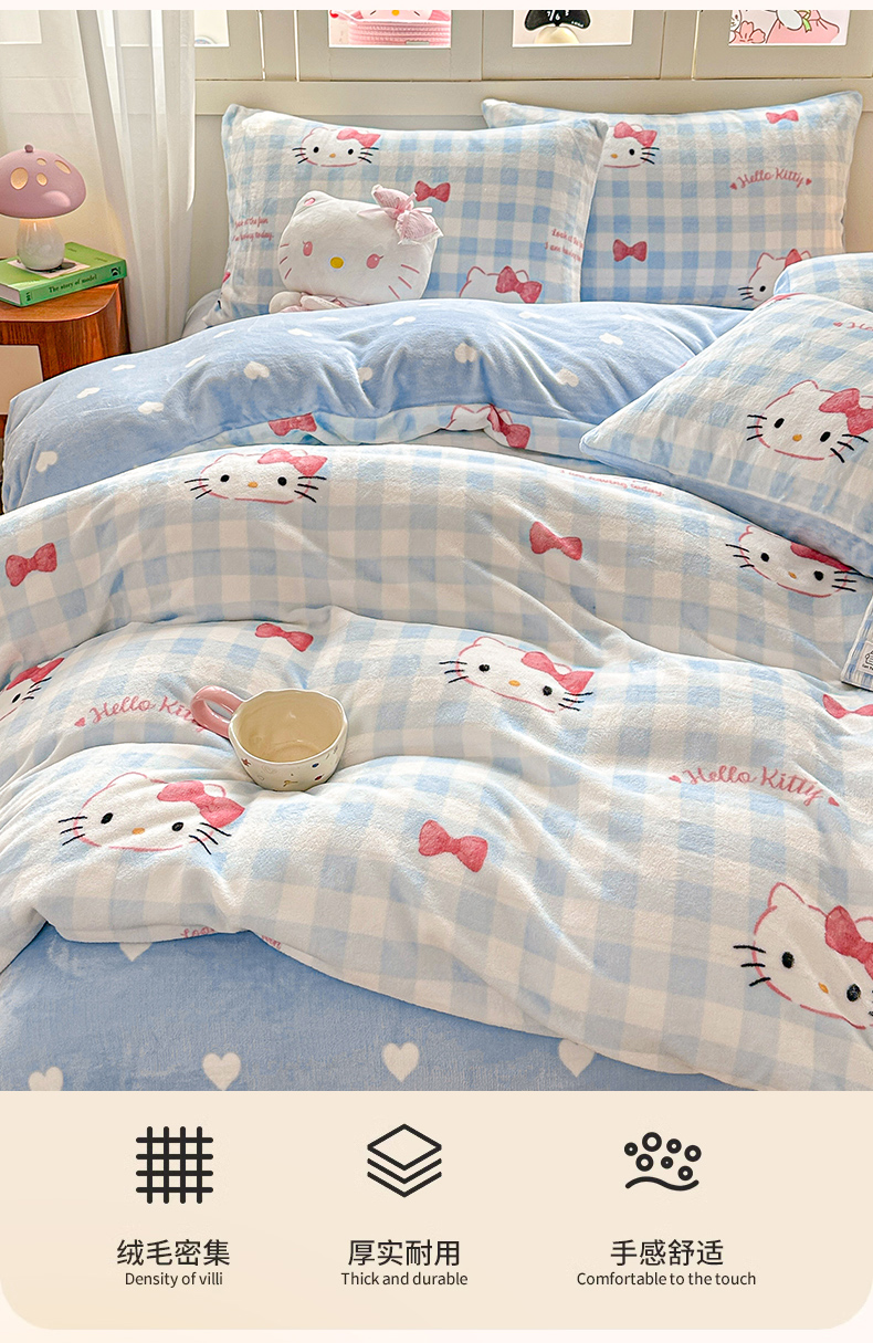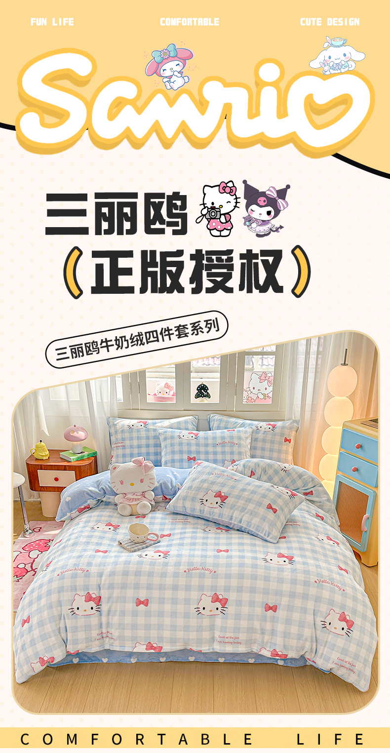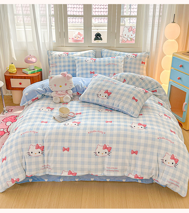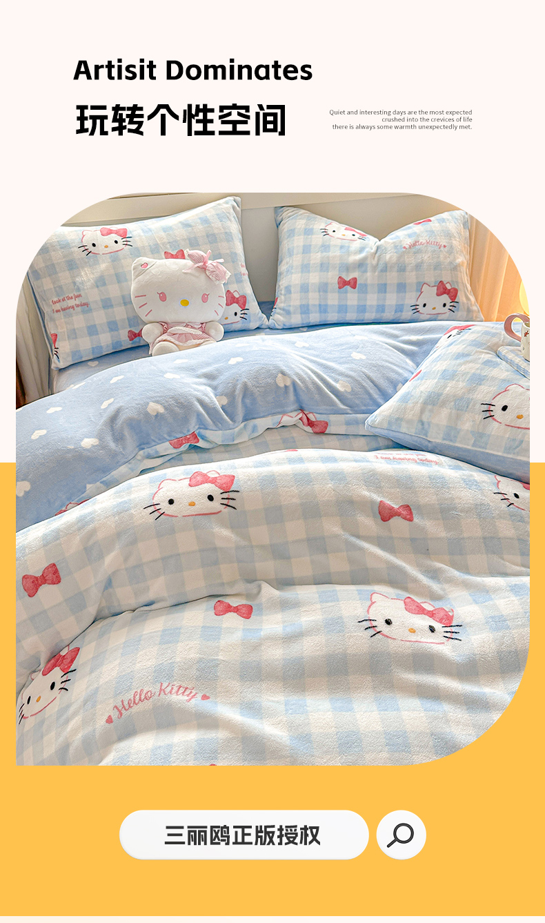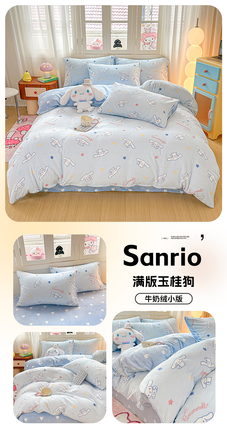 当前位置: 91家纺网 > 商品网购 > 床品套件 > 四件套 > 牛奶绒四件套 > 博雅 2025新款三丽鸥正版授权高克重牛奶绒小版四件套提供买家秀 牛奶绒小版-蓝色蝴蝶结KT