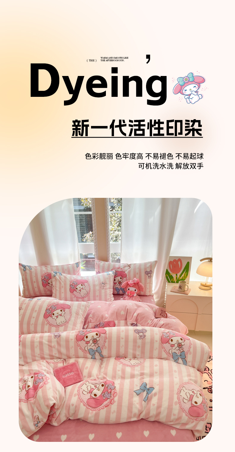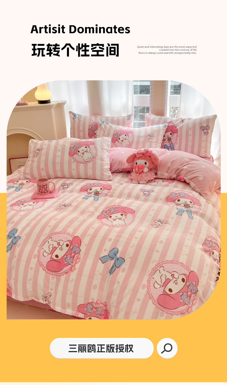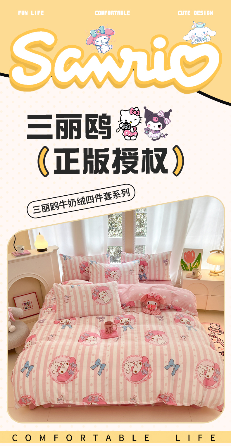 当前位置: 91家纺网 > 商品网购 > 床品套件 > 四件套 > 牛奶绒四件套 > 博雅 2025新款三丽鸥正版授权高克重牛奶绒小版四件套提供买家秀 牛奶绒小版-甜甜美乐蒂专版花型