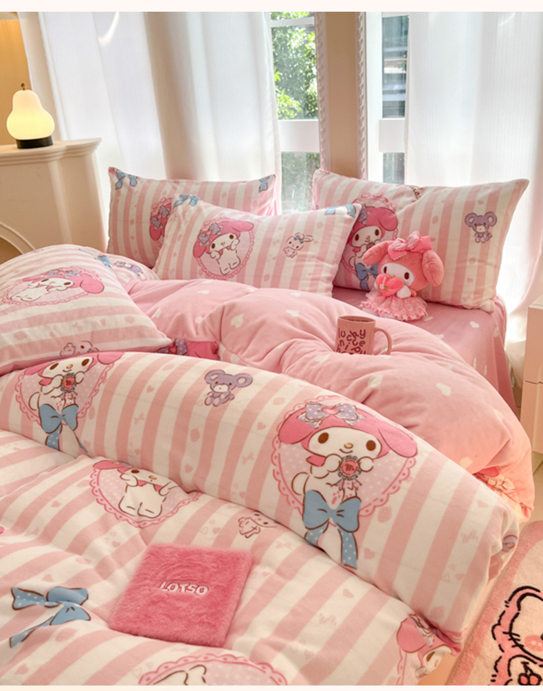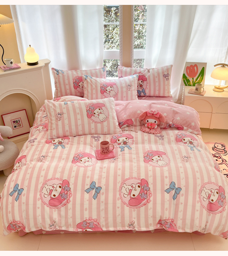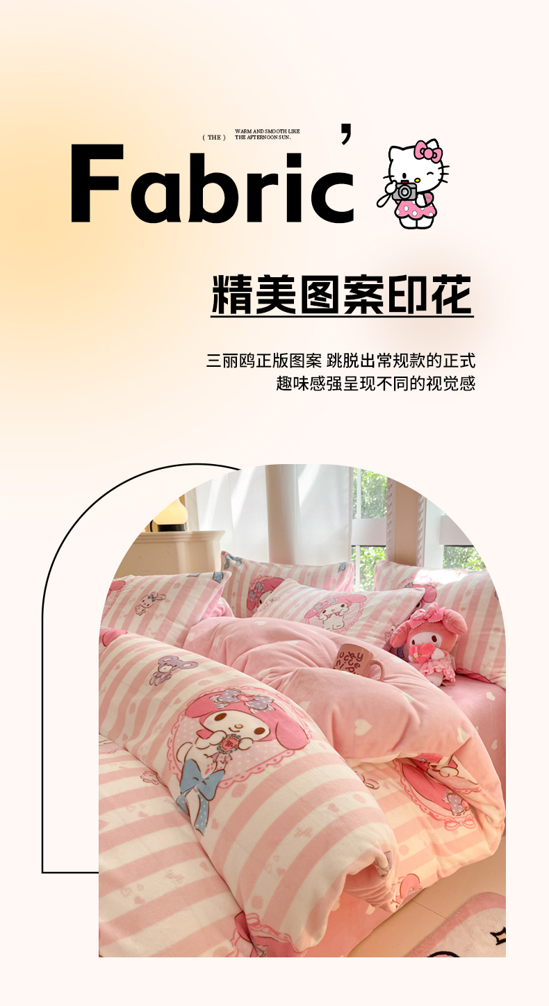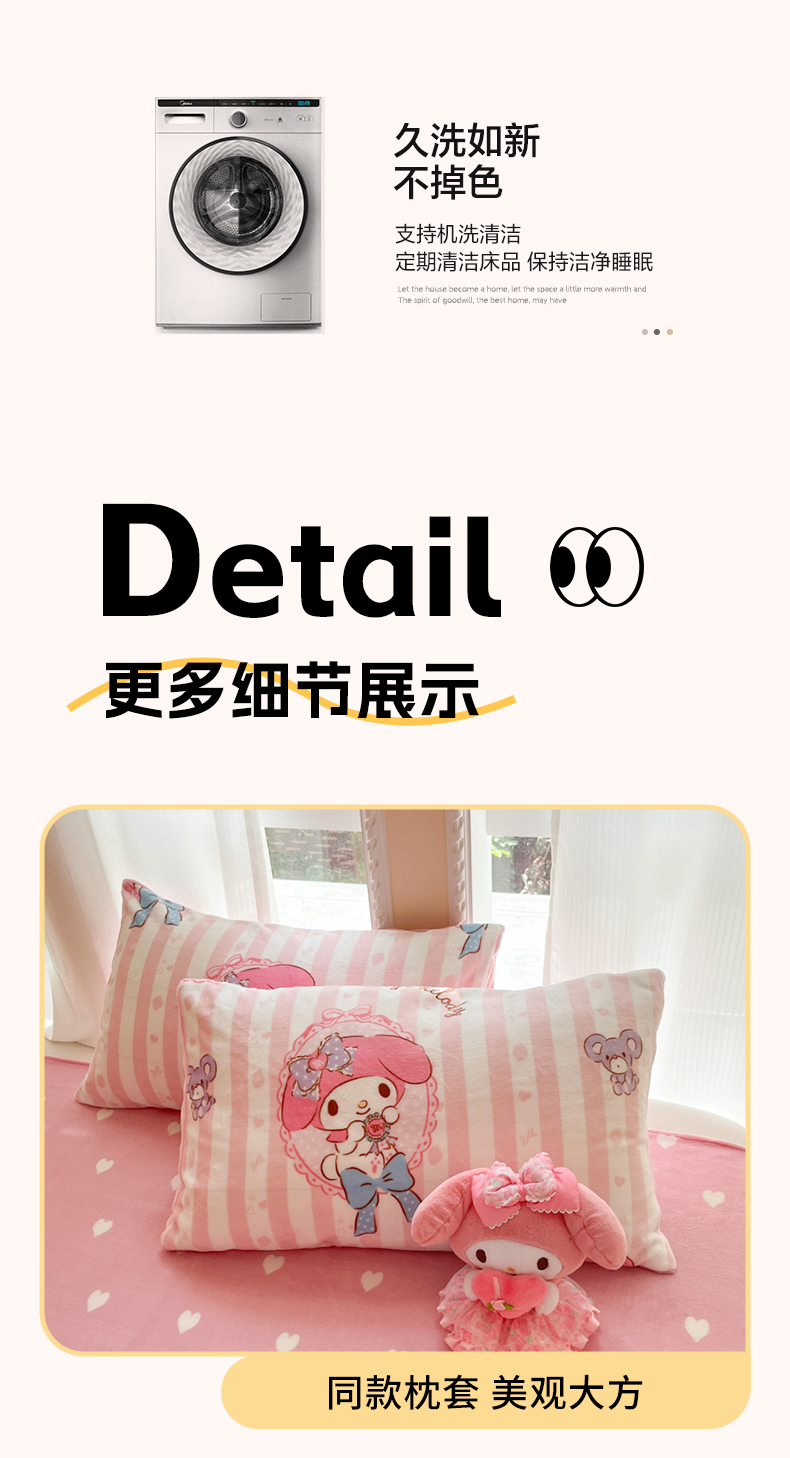 当前位置: 91家纺网 > 商品网购 > 床品套件 > 四件套 > 牛奶绒四件套 > 博雅 2025新款三丽鸥正版授权高克重牛奶绒小版四件套提供买家秀 牛奶绒小版-甜甜美乐蒂专版花型