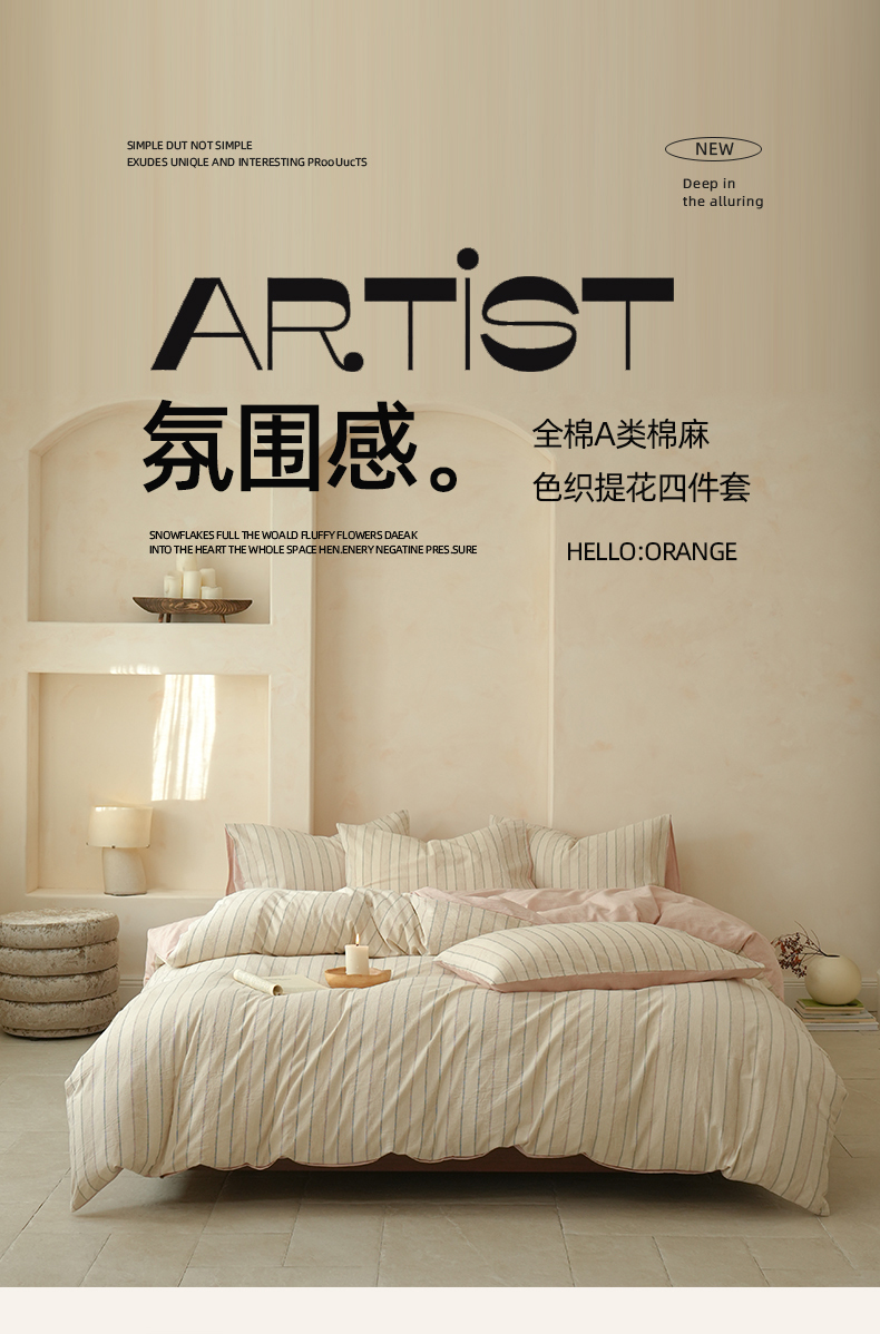 (总)寐居家纺 2025新款全棉A类棉麻色织提花四件套