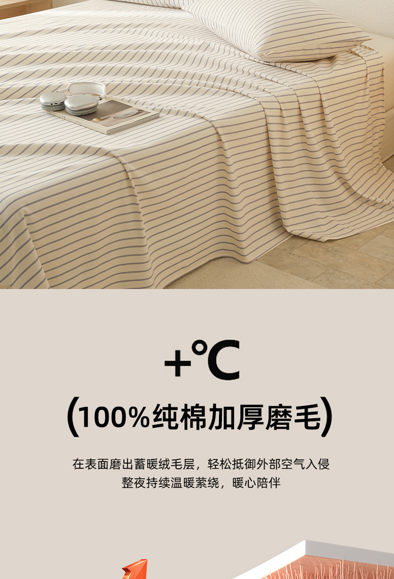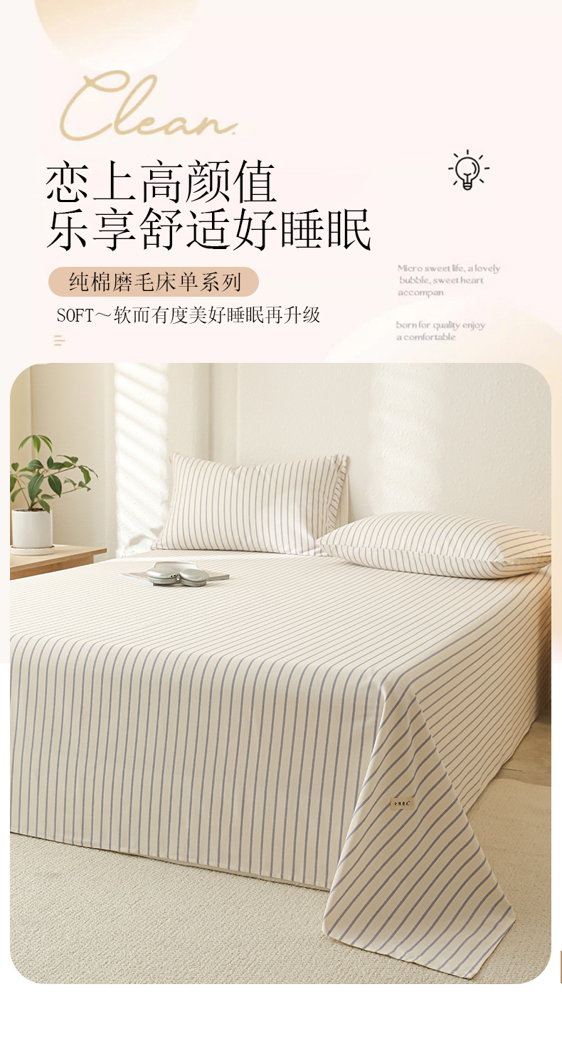 简宜家居(朝初家纺) 2025新款纯棉全棉磨毛单床单系列 线素-蓝