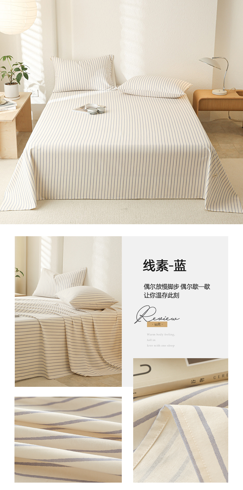 (总)简宜家居(朝初家纺) 2026新款12868全棉简约纯棉四件套,布莱德,渐色条纹,菱序,圣托里尼,素色浪线,星落灰条
