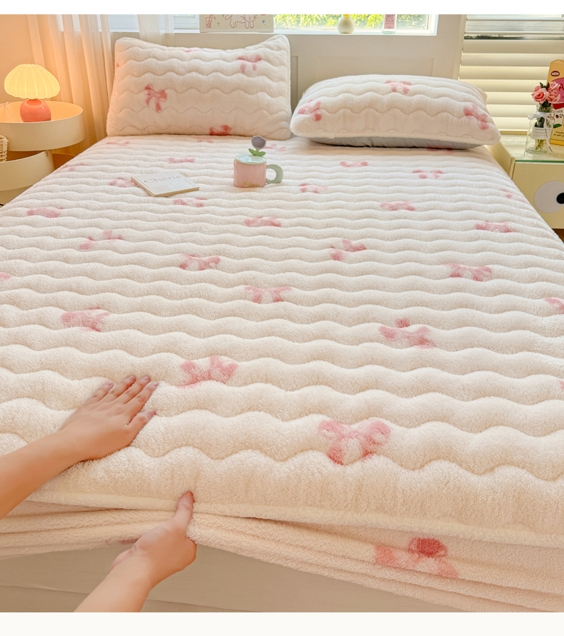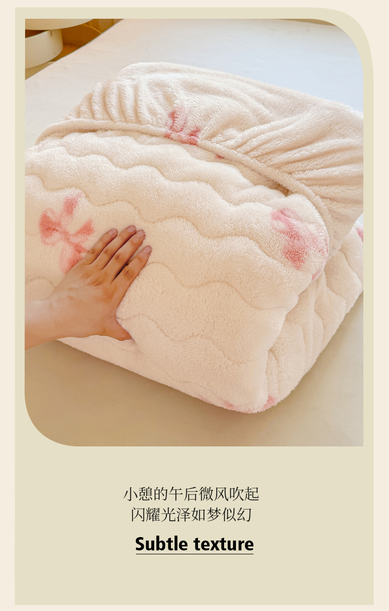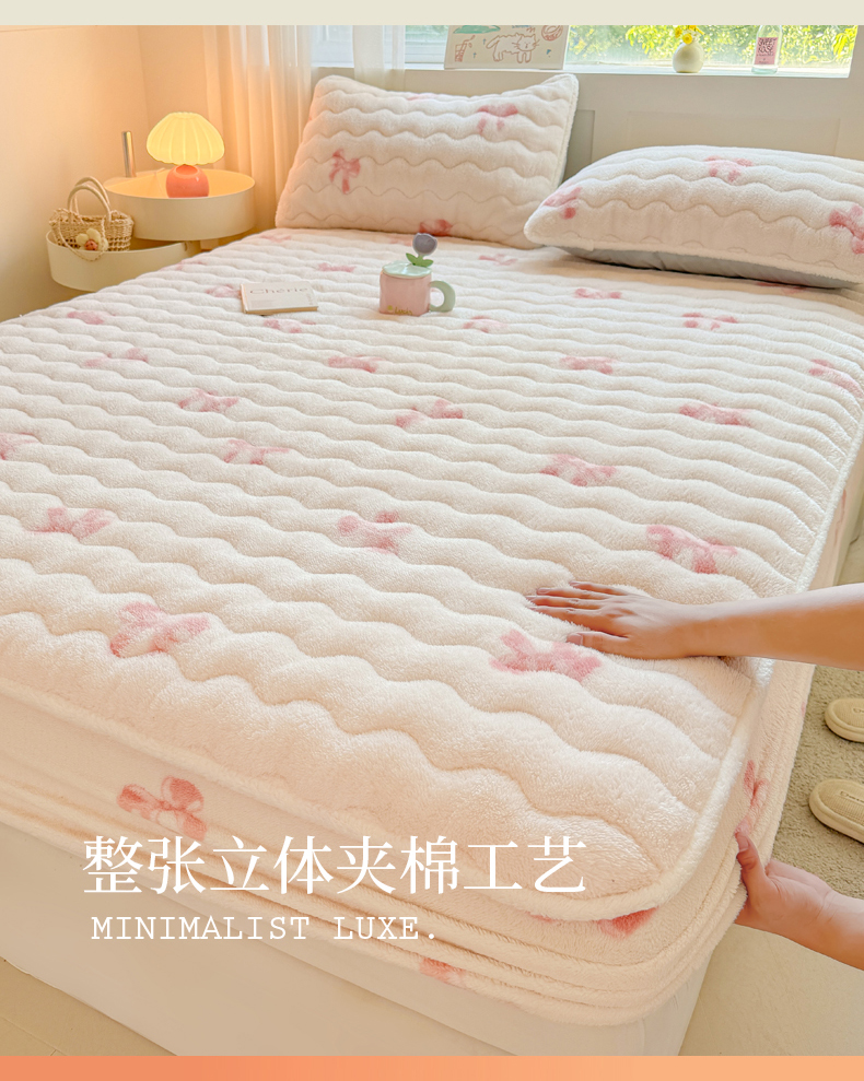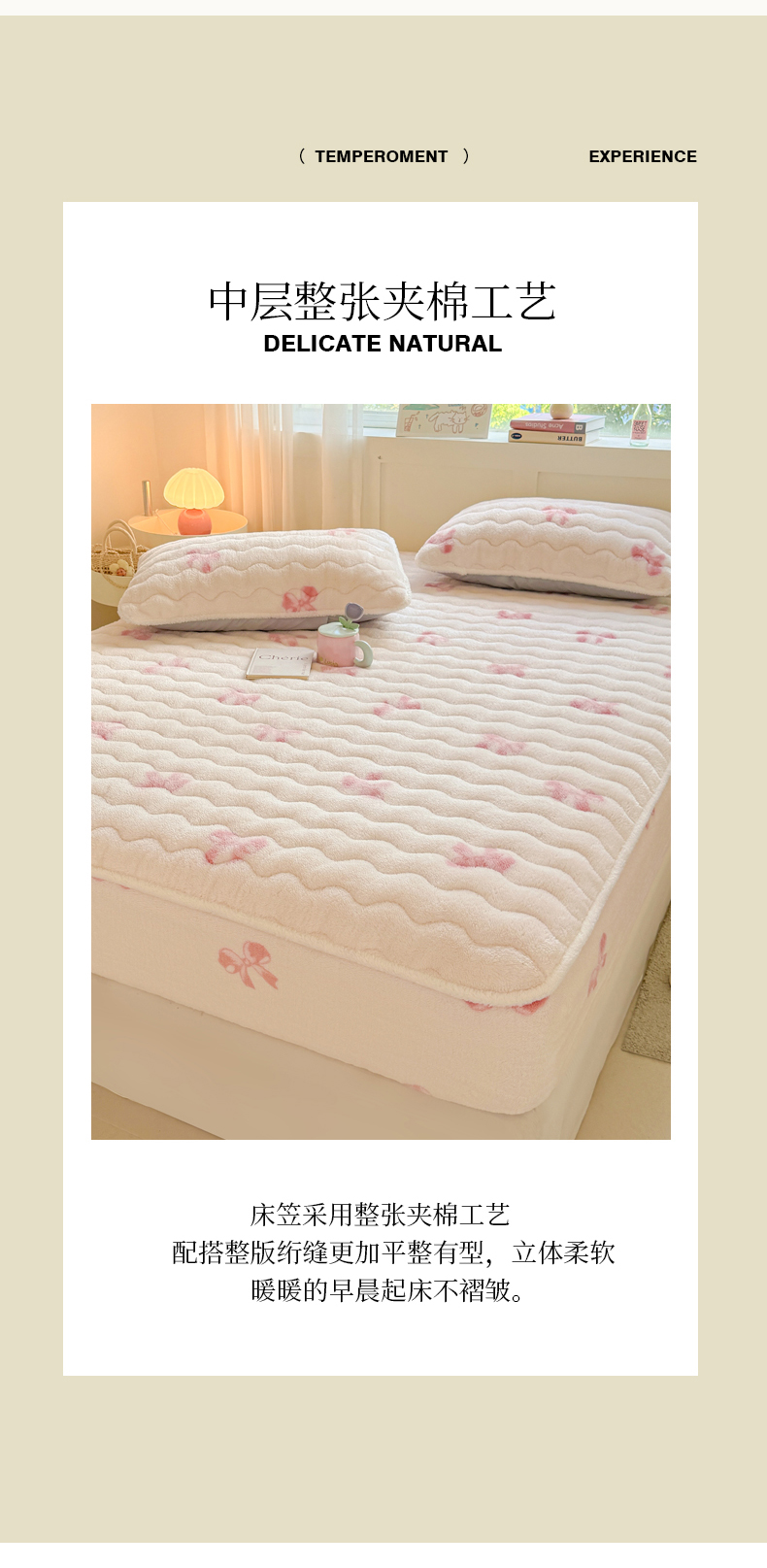 • 91家纺网 家纺一手货源 找家纺 LIFE.丽芙 2025秋冬新款北极绒加厚夹棉单床笠款床垫子保护套牛奶绒保暖床罩子三件套 蝶梦-粉