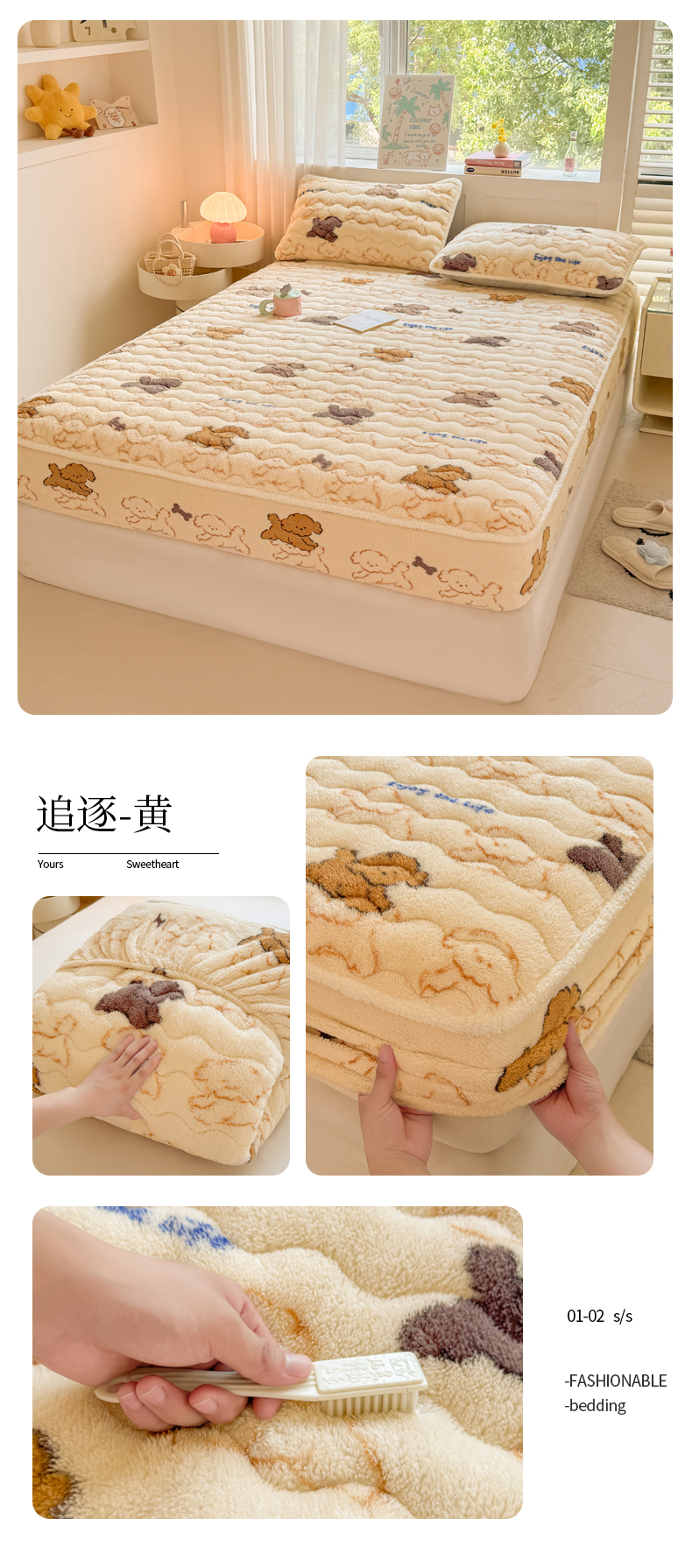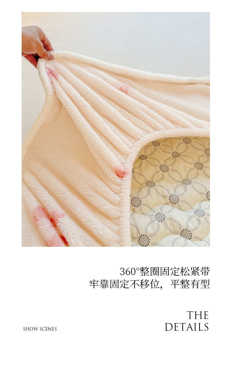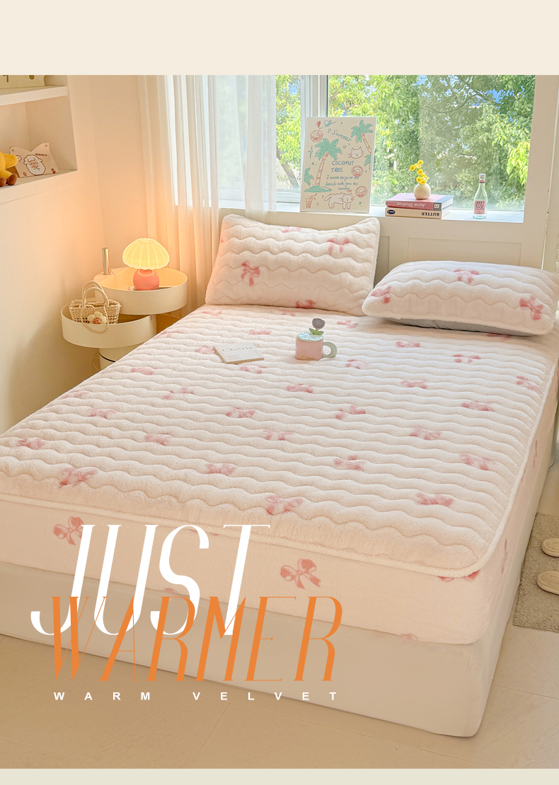 • 91家纺网 家纺一手货源 找家纺 LIFE.丽芙 2025秋冬新款北极绒加厚夹棉单床笠款床垫子保护套牛奶绒保暖床罩子三件套 蝶梦-粉