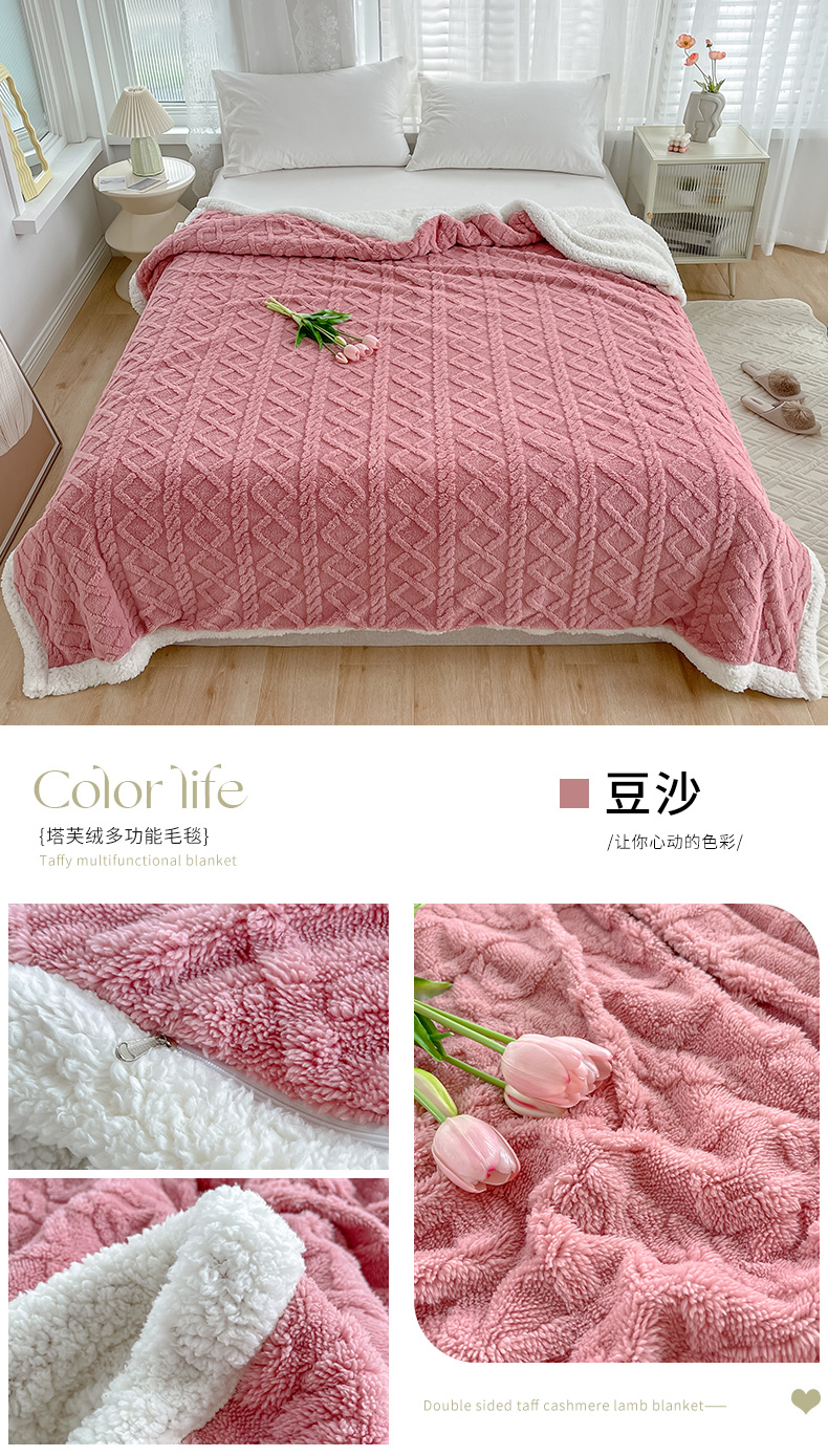 悦织湾家纺 2025新款塔芙绒羊羔绒舒棉绒毛毯麻花格系列 麻花格-米白