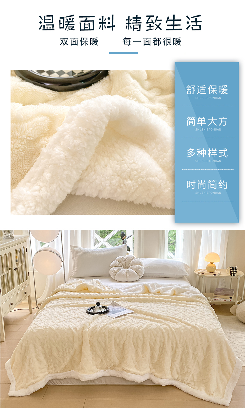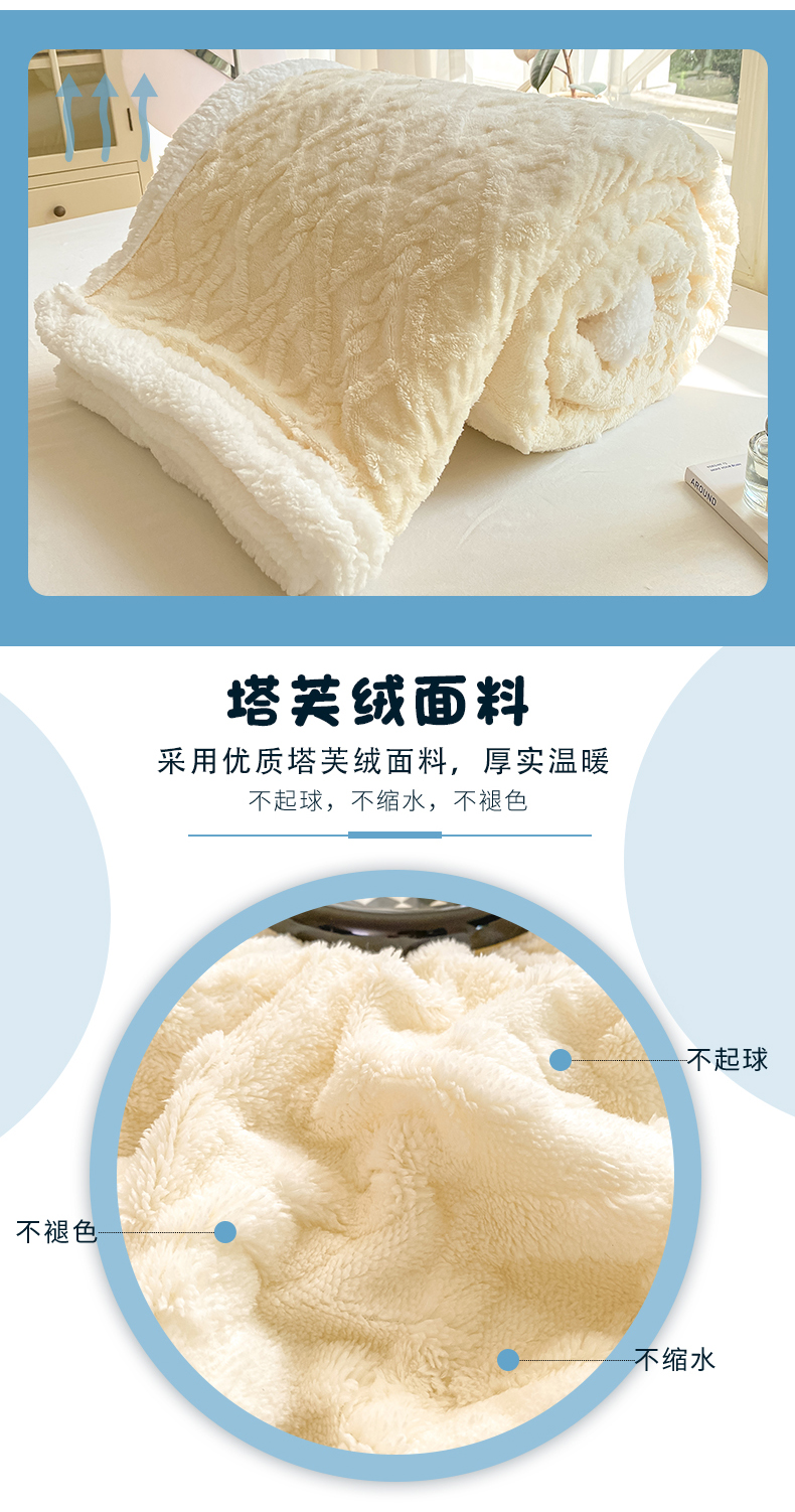 商品名称:悦织湾家纺 2025新款塔芙绒羊羔绒舒棉绒毛毯麻花格系列 麻花格-米白