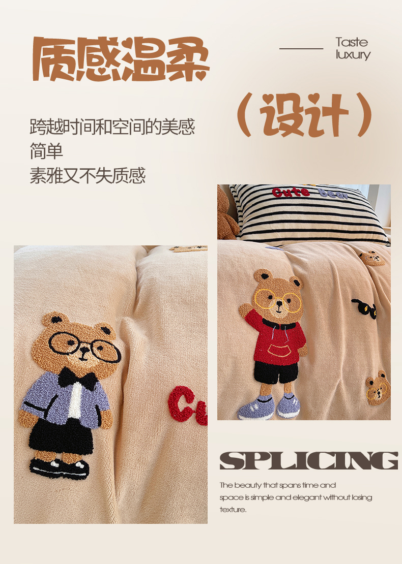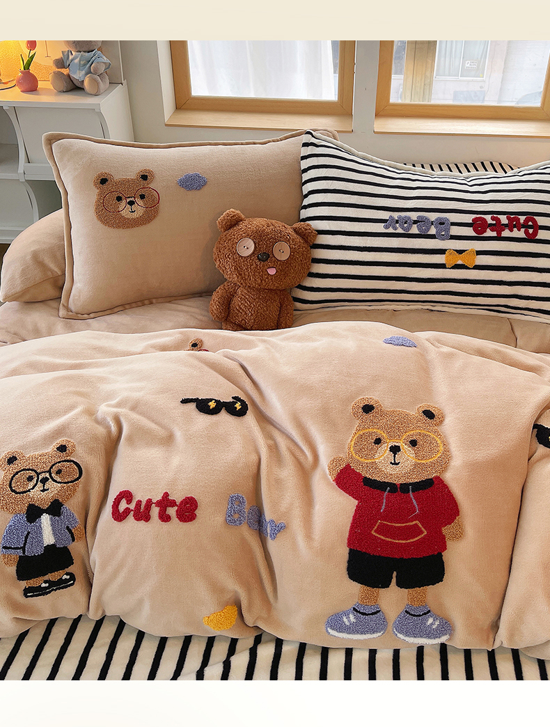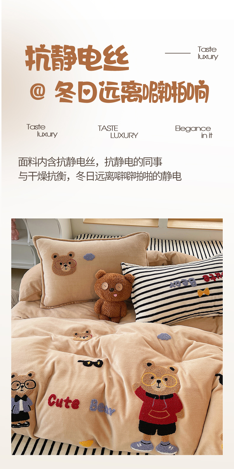 商品名称:(总)炫拼家纺 2025新款高克重牛奶绒满版毛巾绣卡通加厚四件套-糯米系列
