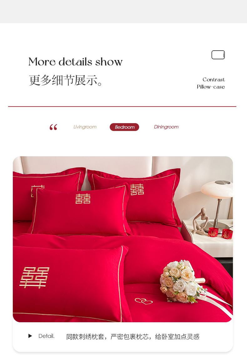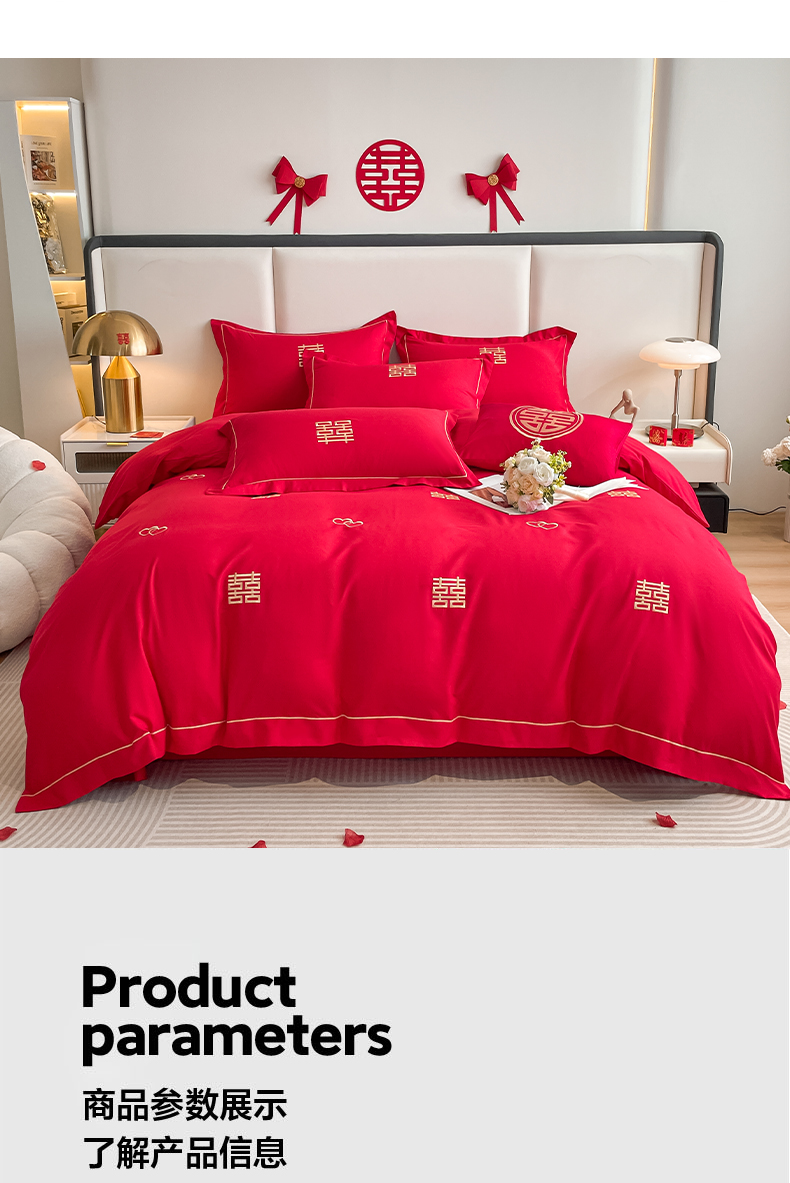 (总)花愿(原花纪) 2026新款婚庆刺绣四件套(礼盒款),浪漫花园-红,浪漫一生,龙凤呈祥,满心欢喜,天赐良缘,喜气洋洋,祥瑞,喜结良缘