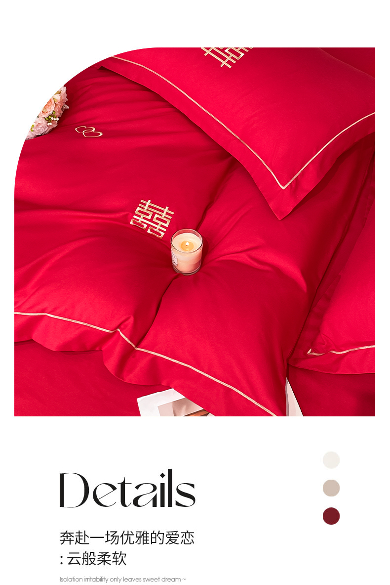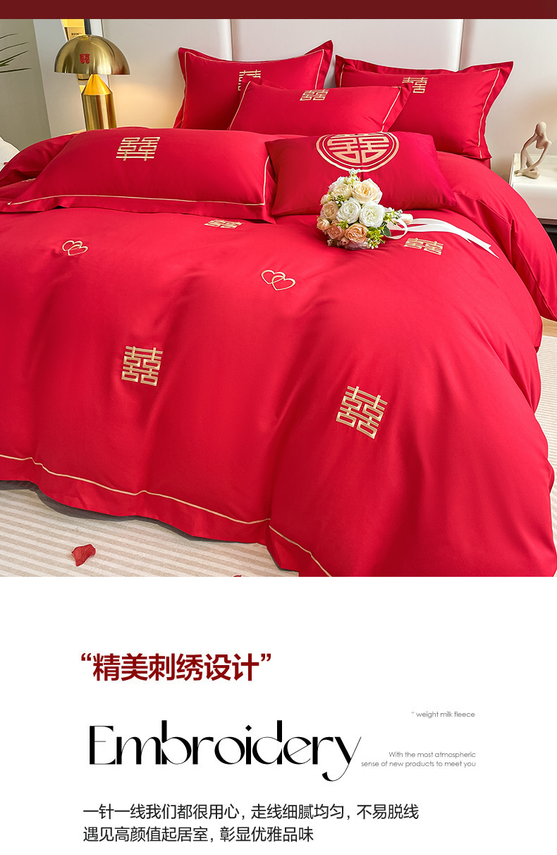 花愿(原花纪) 2026新款婚庆刺绣四件套(礼盒款) 满心欢喜