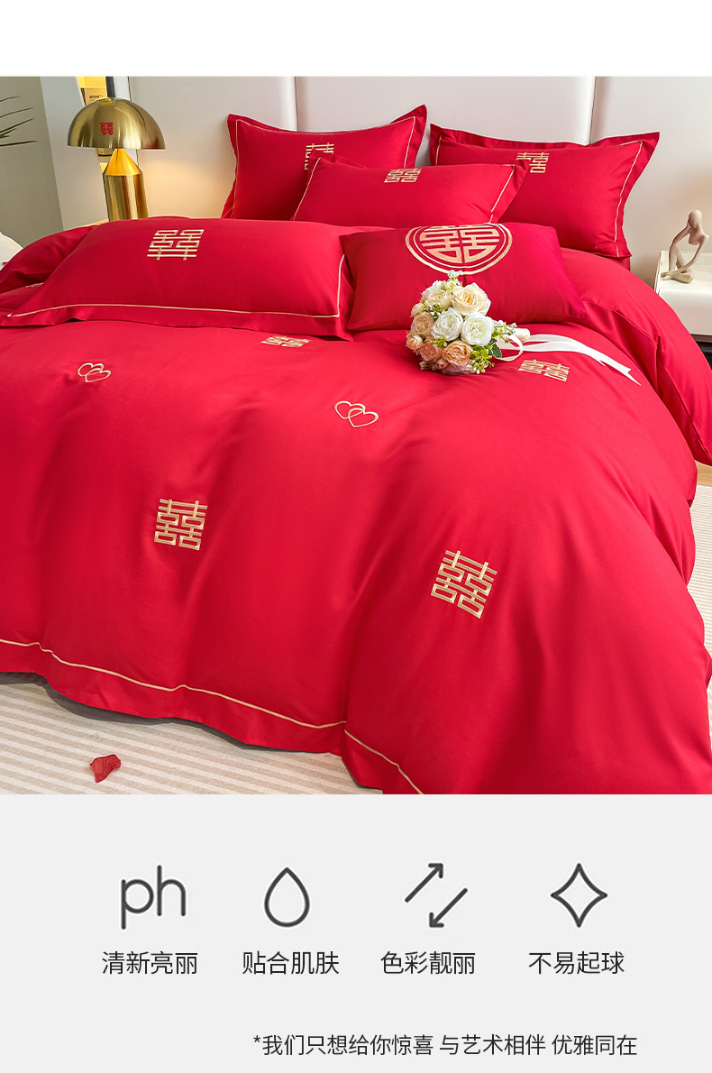 商品名称:花愿(原花纪) 2026新款婚庆刺绣四件套(礼盒款) 满心欢喜