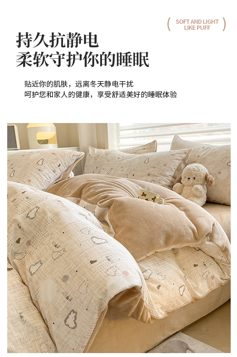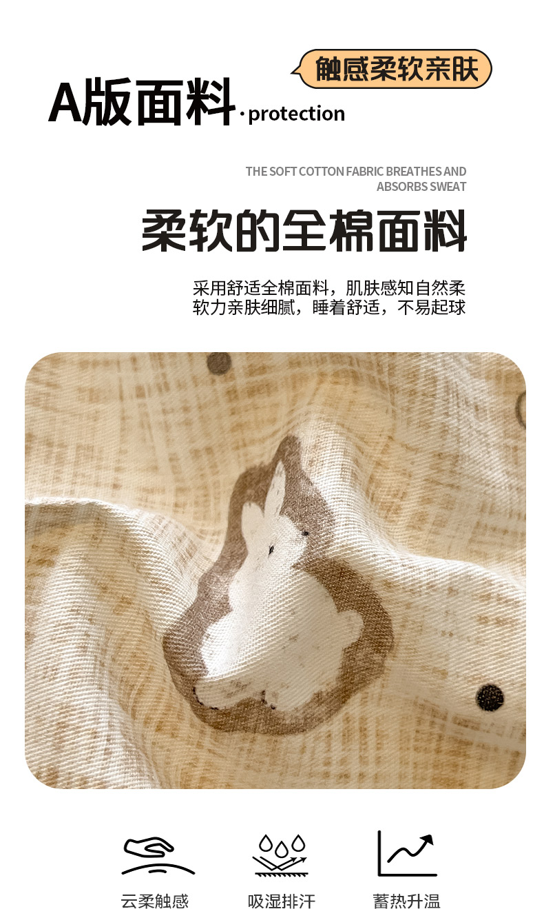 当前位置: 91家纺网 > 商品网购 > 床品套件 > 四件套 > 牛奶绒四件套 > 晨希家居 2025A面40支全棉印花B版高克重牛奶绒棉加绒多规格套件棉加绒-棉野云兔