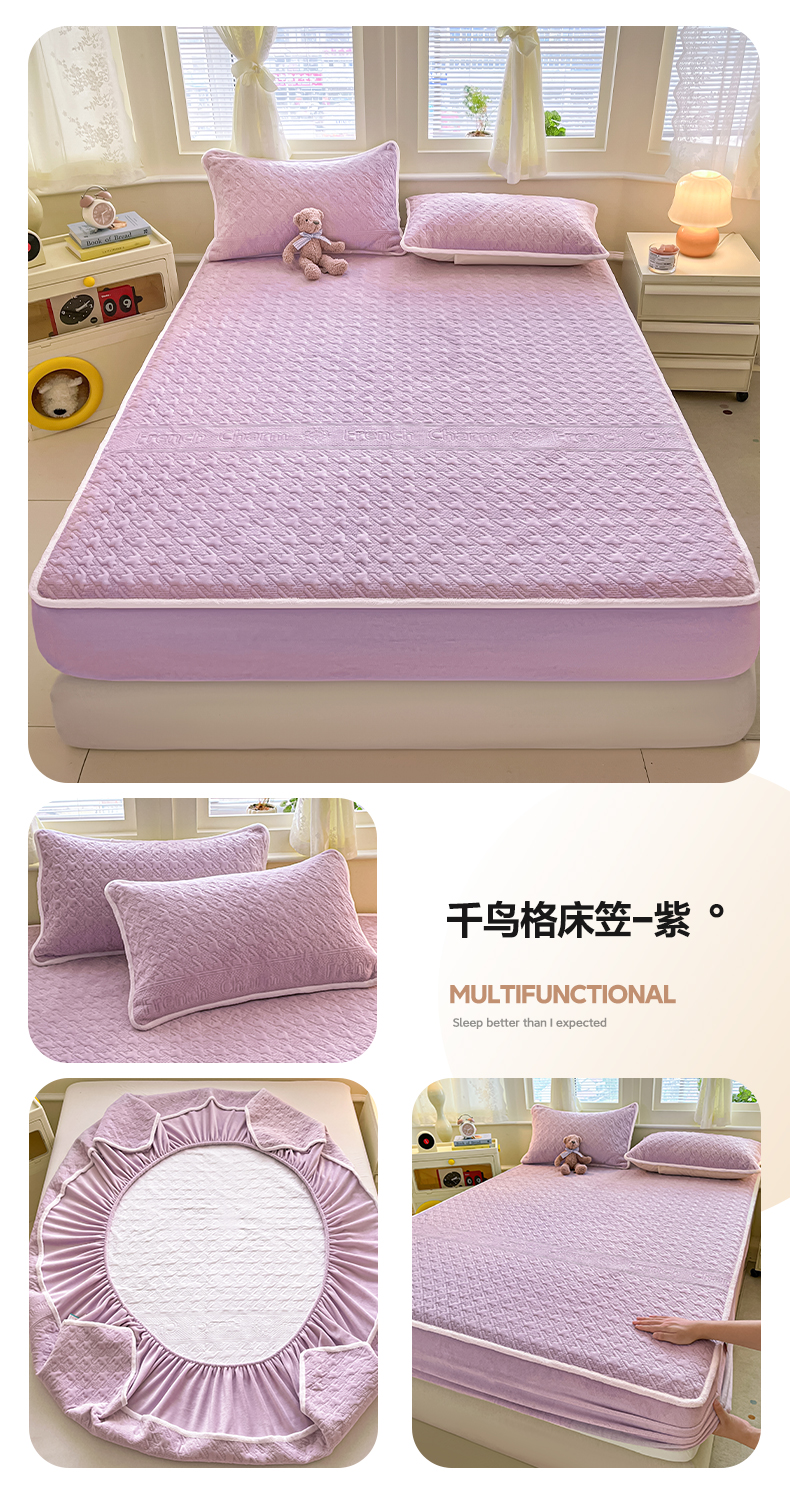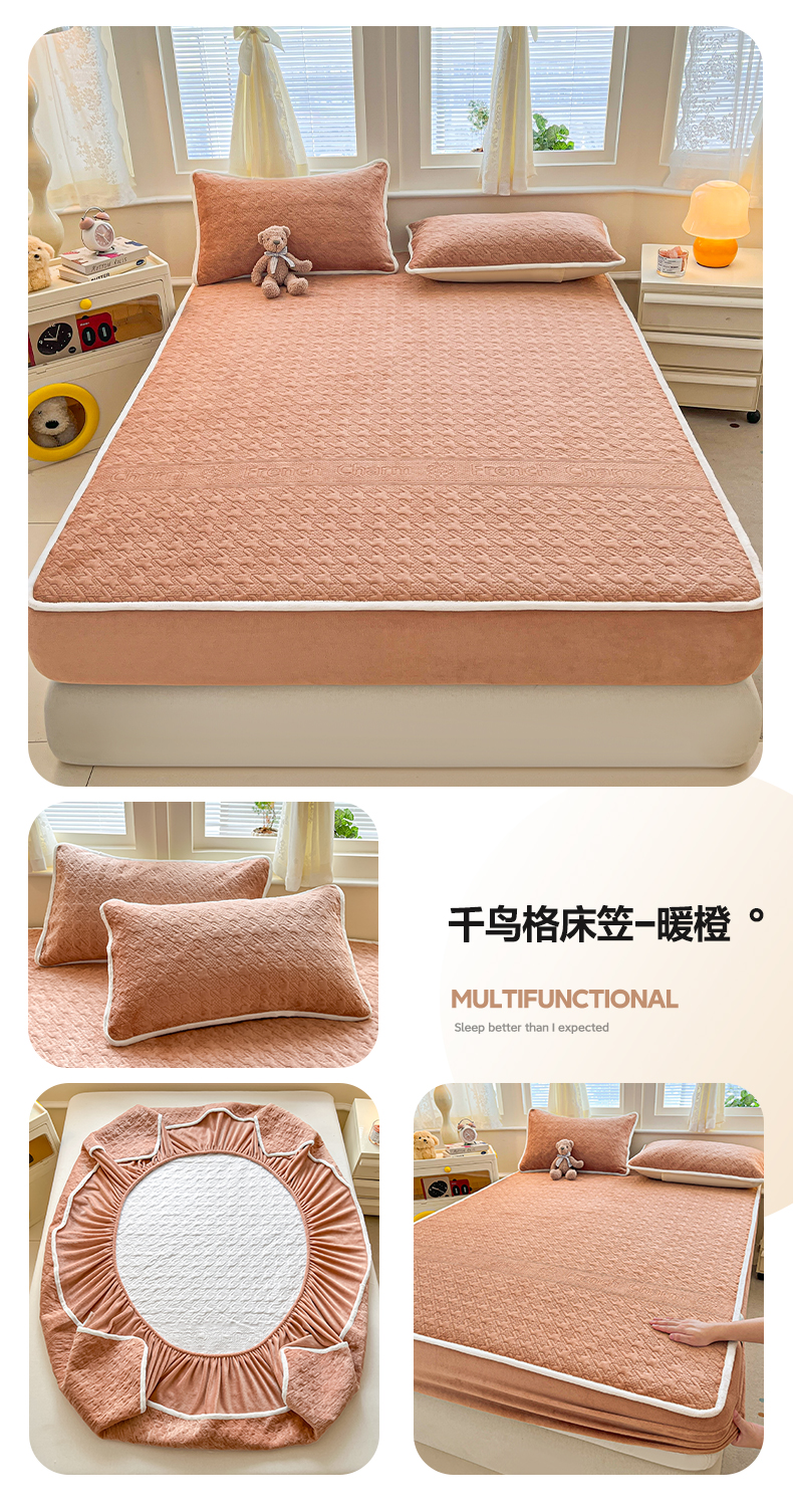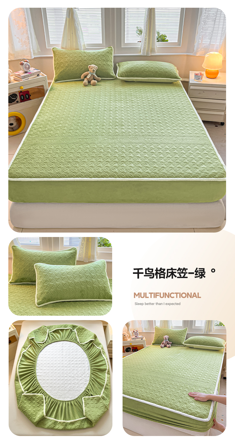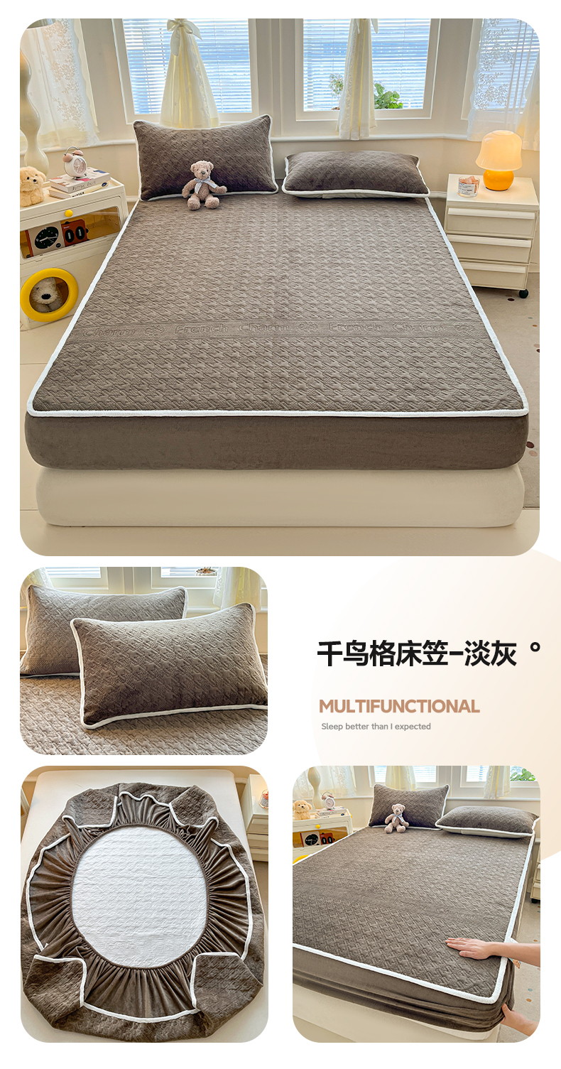 (总)卡伦家纺 2025新款抗菌雕花牛奶绒千鸟格夹棉床笠系列,千鸟格床笠-淡灰,千鸟格床笠-蓝,千鸟格床笠-绿,千鸟格床笠-咖,千鸟格床笠-暖橙,千鸟格床笠-紫,千鸟格床笠-粉,千鸟格床笠-黄,千鸟格床笠-灰