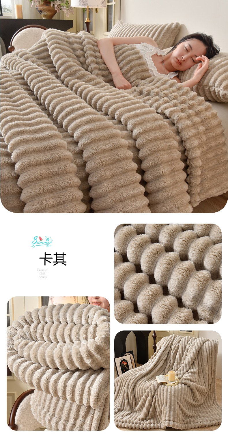 商品名称:圣靓 2025新款高克重牛奶绒抽条毛毯 卡其
