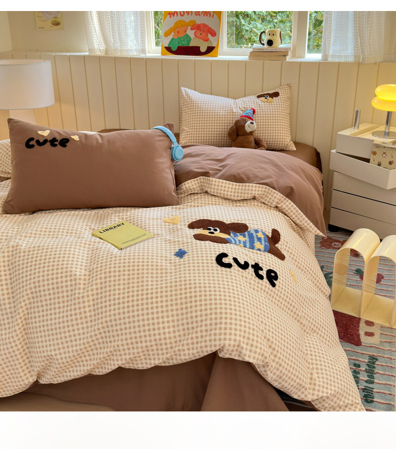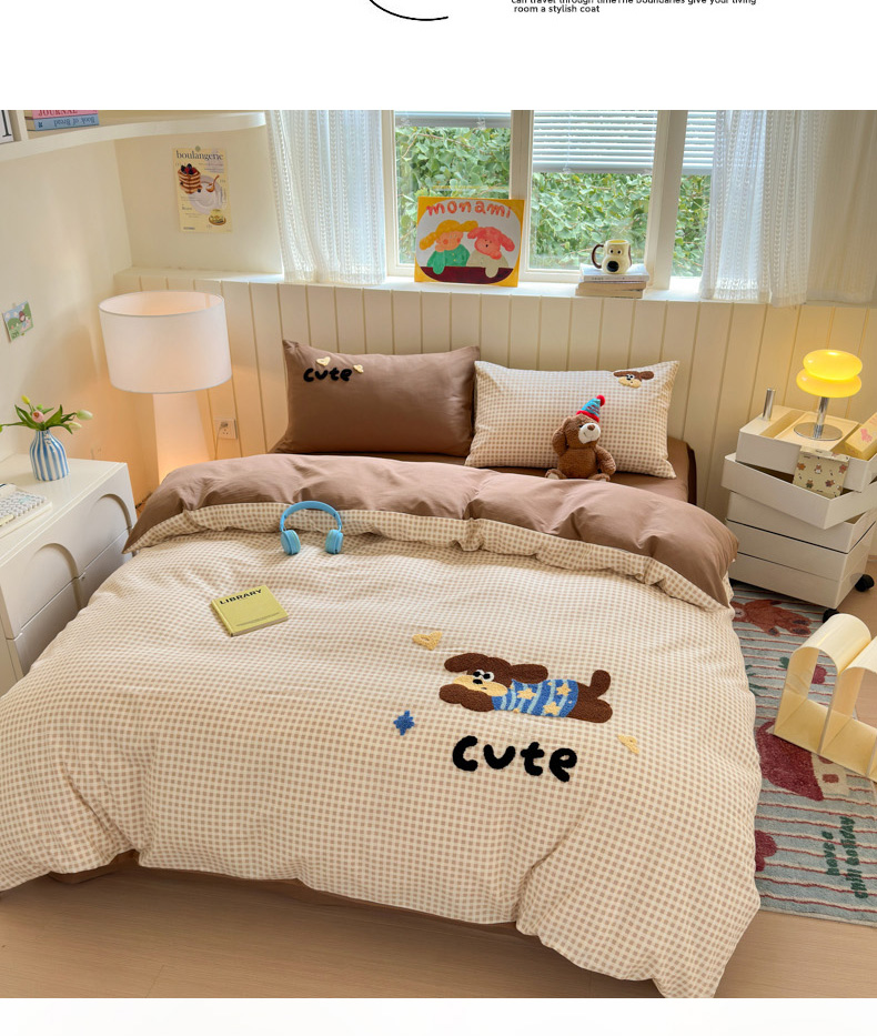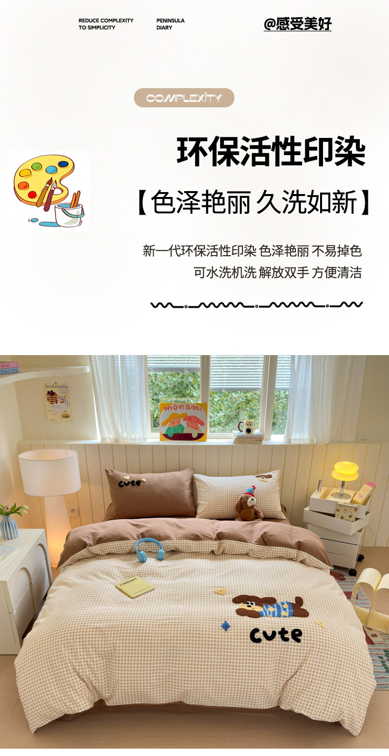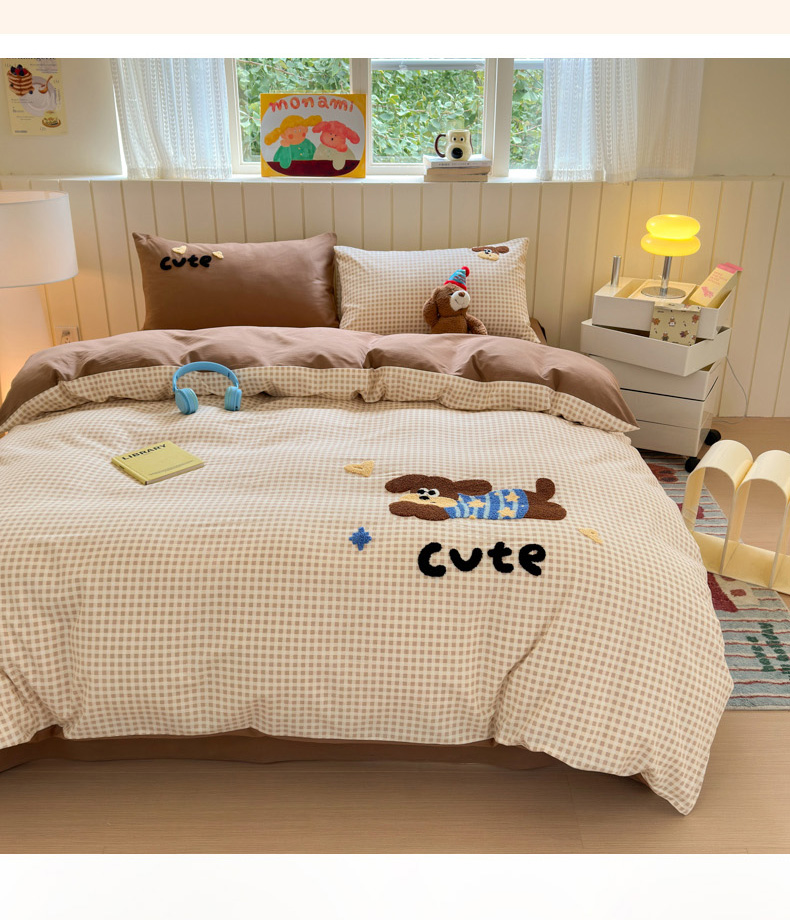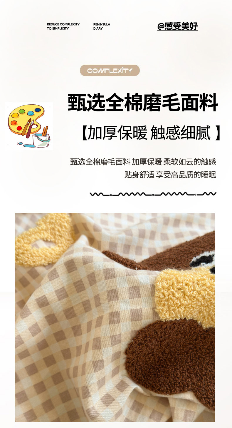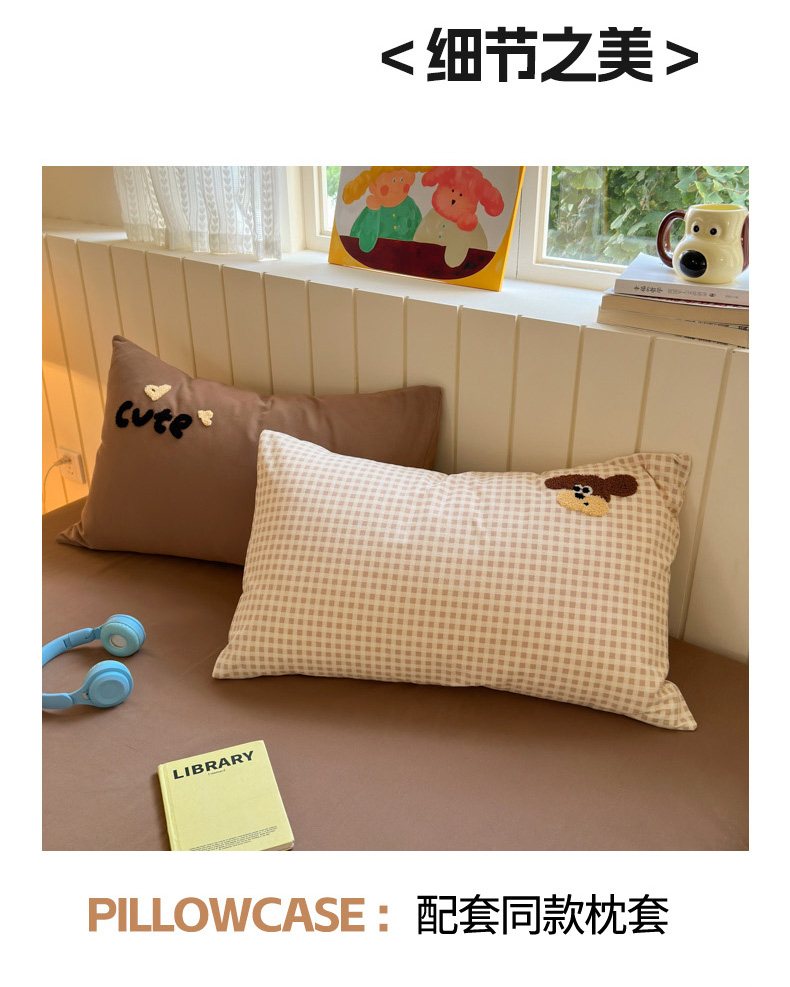 当前位置: 91家纺网 > 商品网购 > 床品套件 > 四件套 > 毛巾绣四件套 > 如意朵 2025新款全棉磨毛卡通毛巾绣四件套(专版花型)-场景二 羞羞狗