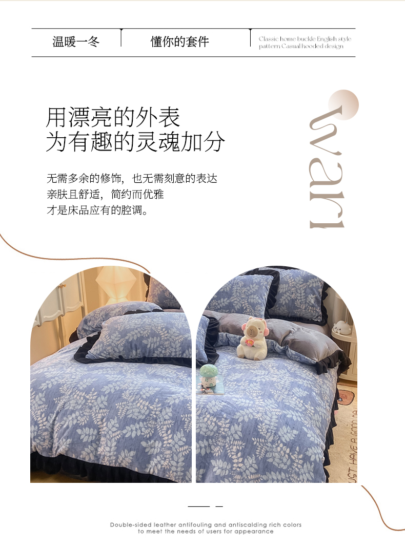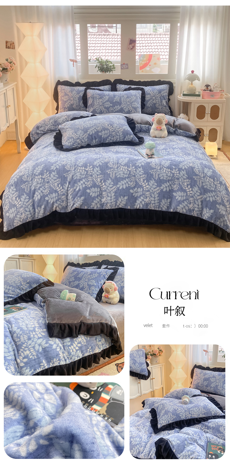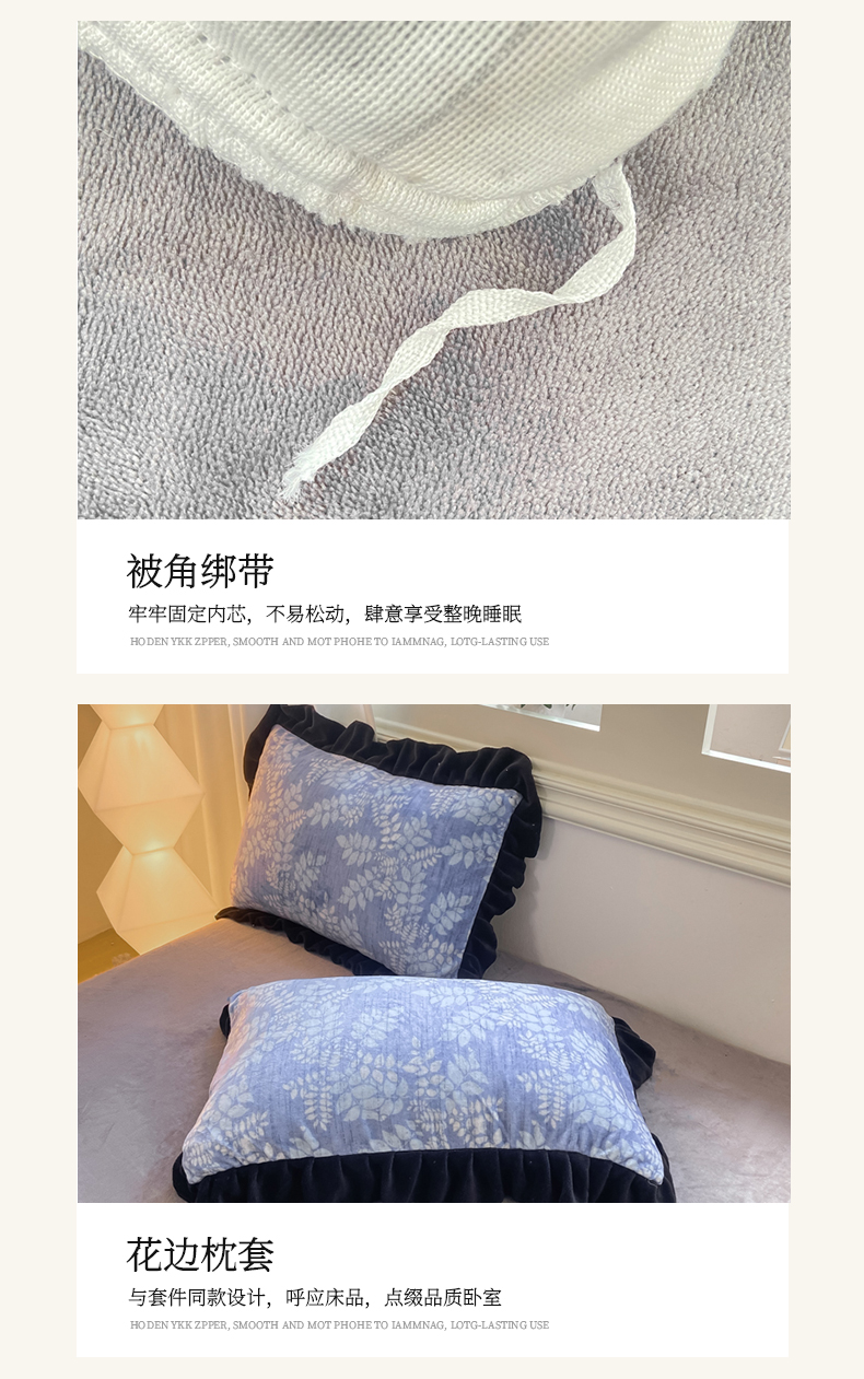 商品名称:富之航家纺 2025新款小香风赫本风ins风大牌韩版大花边轻奢牛奶绒四件套 眠语