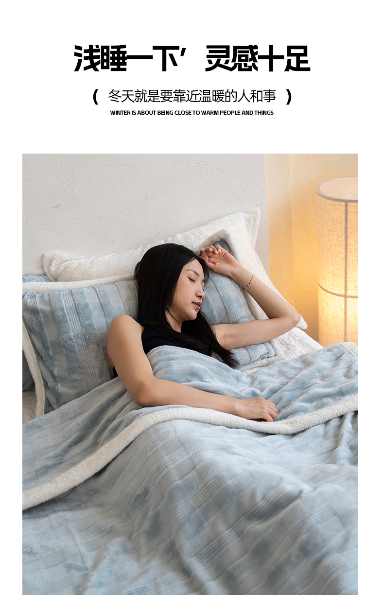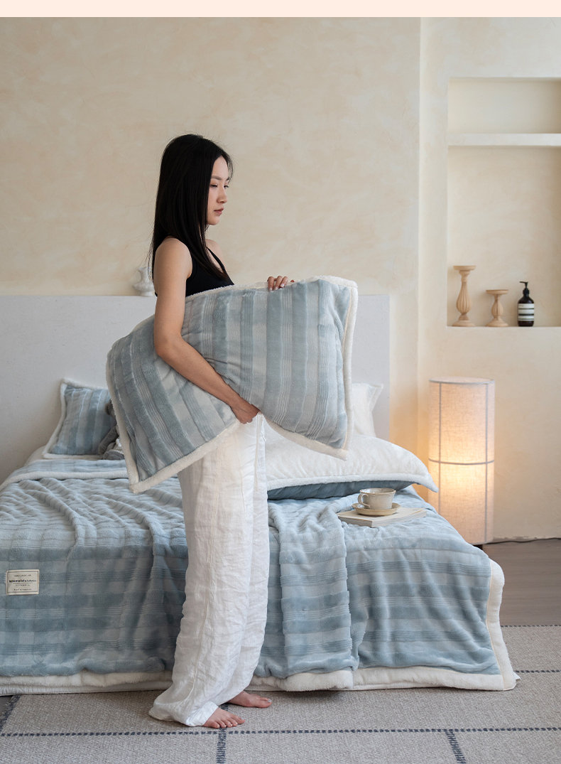(总)宜派家纺 2025新款A类婴儿绒北极绒羽丝棉三层夹棉盖毯,半糖粉【双面绒夹棉】,青提绿【双面绒夹棉】,薄雾绿【双面绒夹棉】,水墨灰【双面绒夹棉】,拿铁咖【双面绒夹棉】,晴空蓝【双面绒夹棉】,星云粉【双面绒夹棉】,丁香紫【双面绒夹棉]
