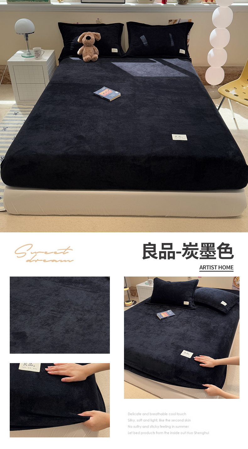 857家居 2025新款高克重牛奶绒床单床笠系列 良品-炭墨色