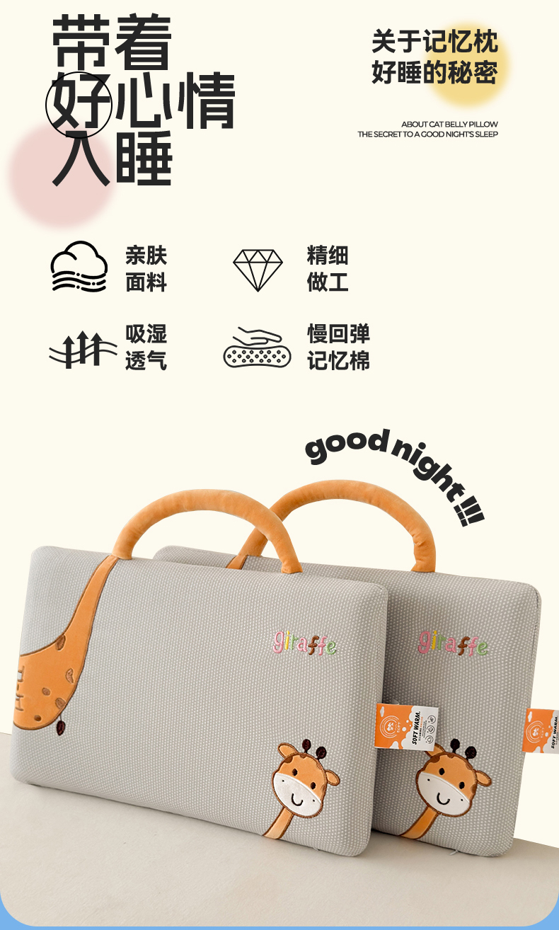 当前位置: 91家纺网 > 商品网购 > 枕头/枕芯/保健枕/颈椎枕 > 枕头枕芯 > 麦肯锡 2025新款长颈鹿面包儿童记忆枕 枕头枕芯 灰色/对