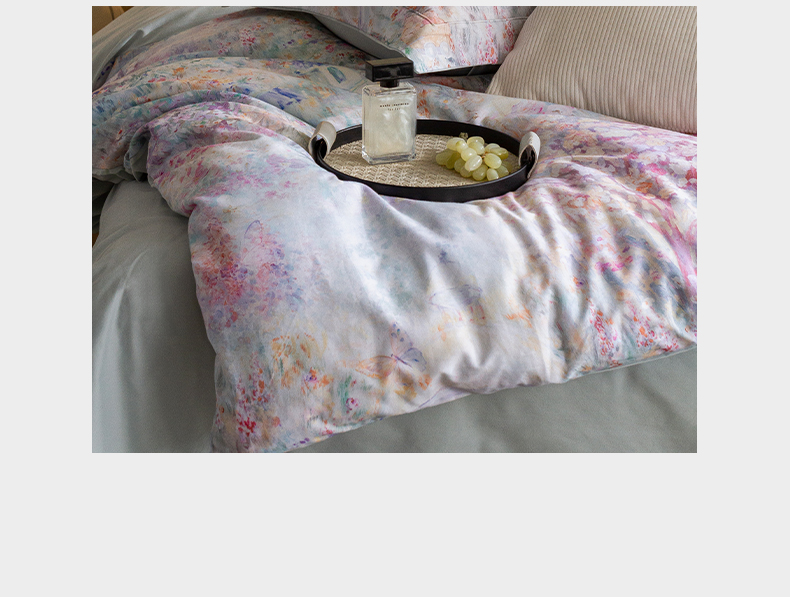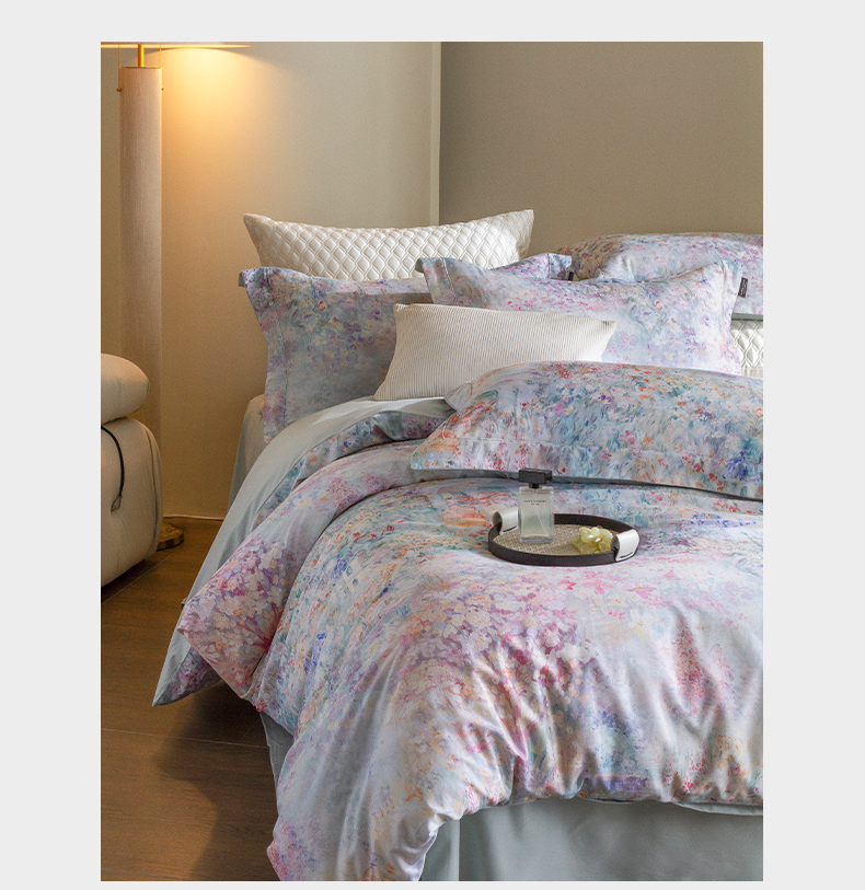 商品名称:三味舒屋 2025新款暖阳画卷系列S50数码印花磨毛四件套 午后莫奈蓝