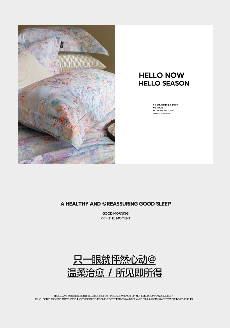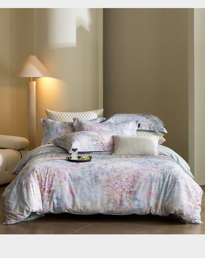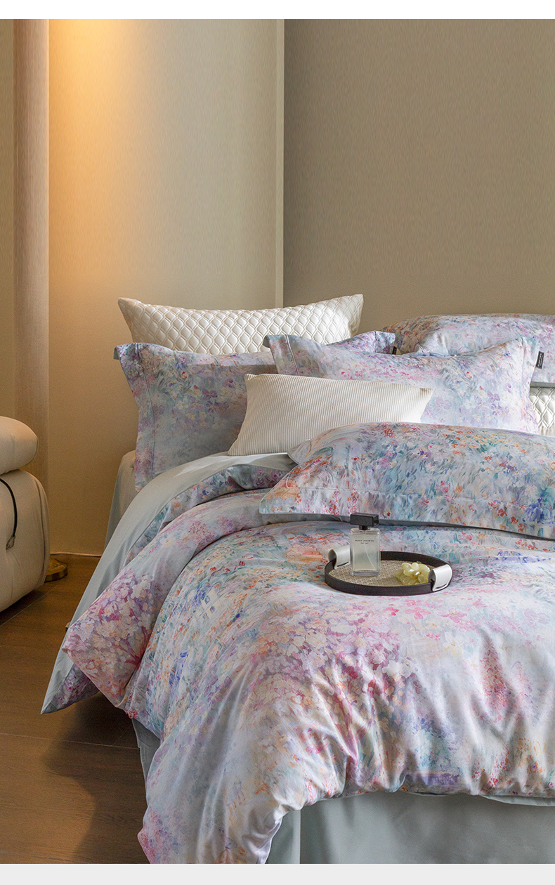 三味舒屋 2025新款暖阳画卷系列S50数码印花磨毛四件套 午后莫奈蓝