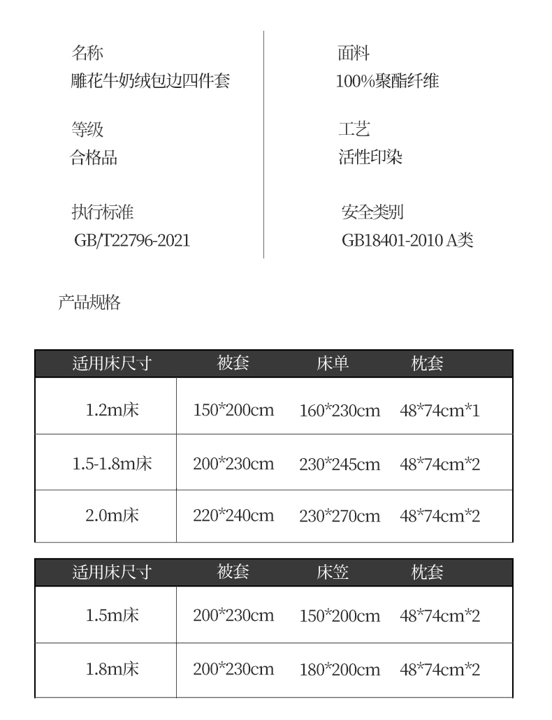 商品名称:(总)小久久(小九九) 2025新款A类高克重雕花牛奶绒四件套