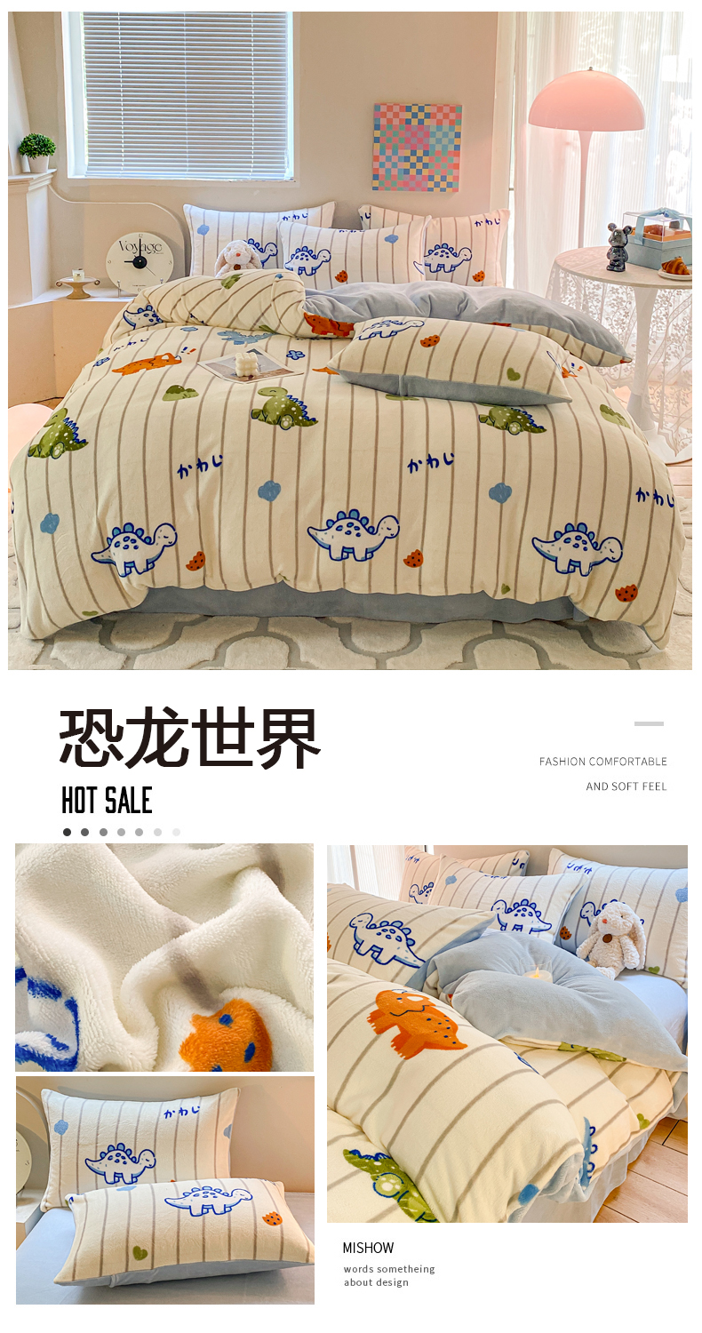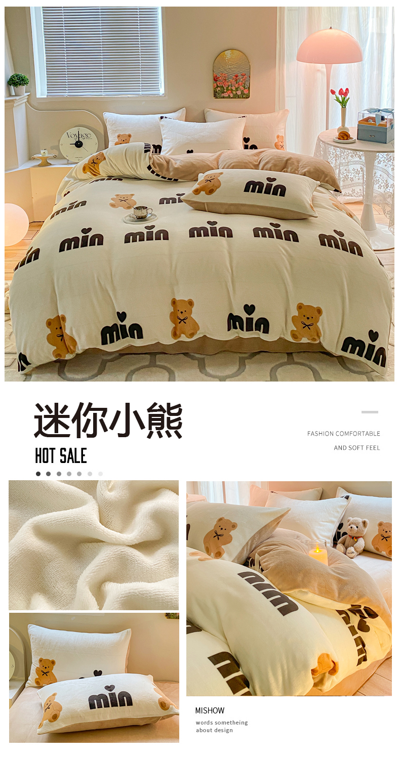 商品名称:斯卡诺家纺 2025小清新加厚高克重牛奶绒四件套网红直播爆款 贝拉