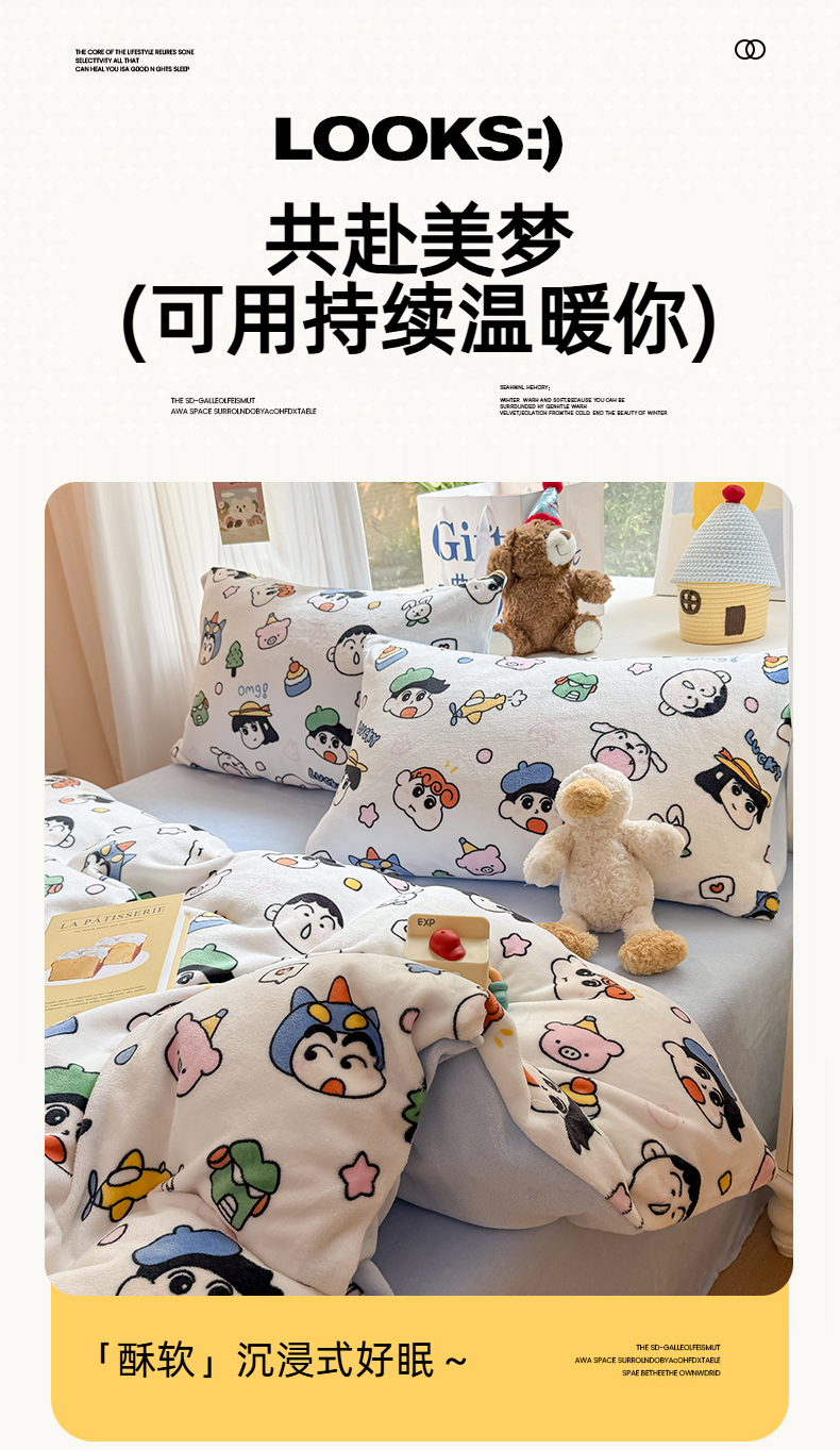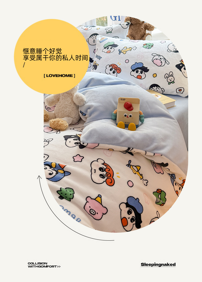 当前位置: 91家纺网 > 商品网购 > 床品套件 > 四件套 > 牛奶绒四件套 > 艾特你 2025新款全工艺200克牛奶绒四件套 小新家族