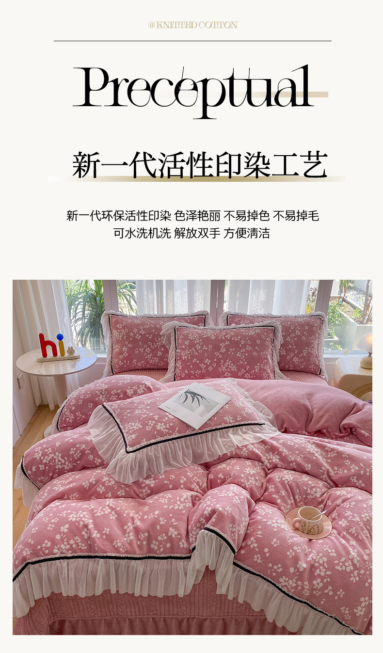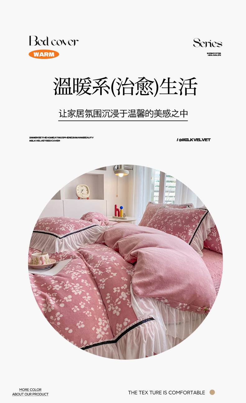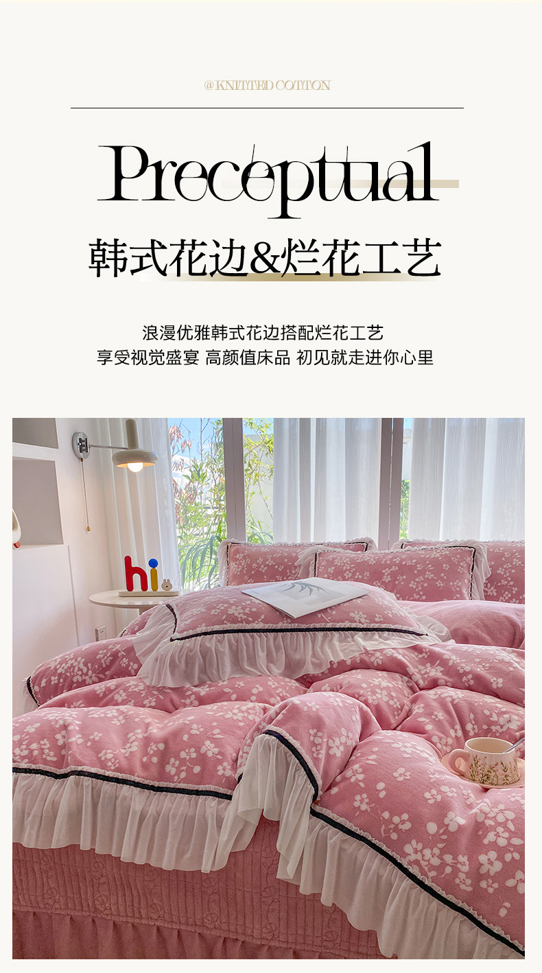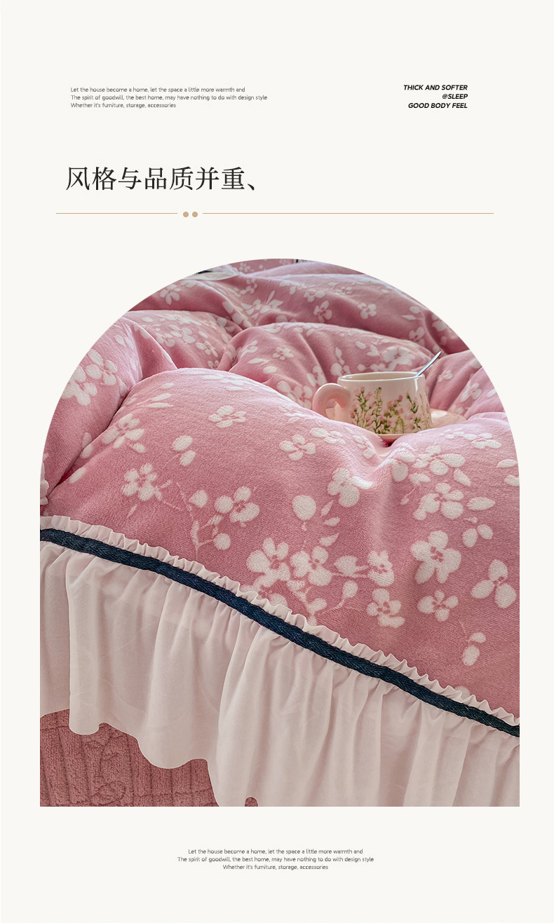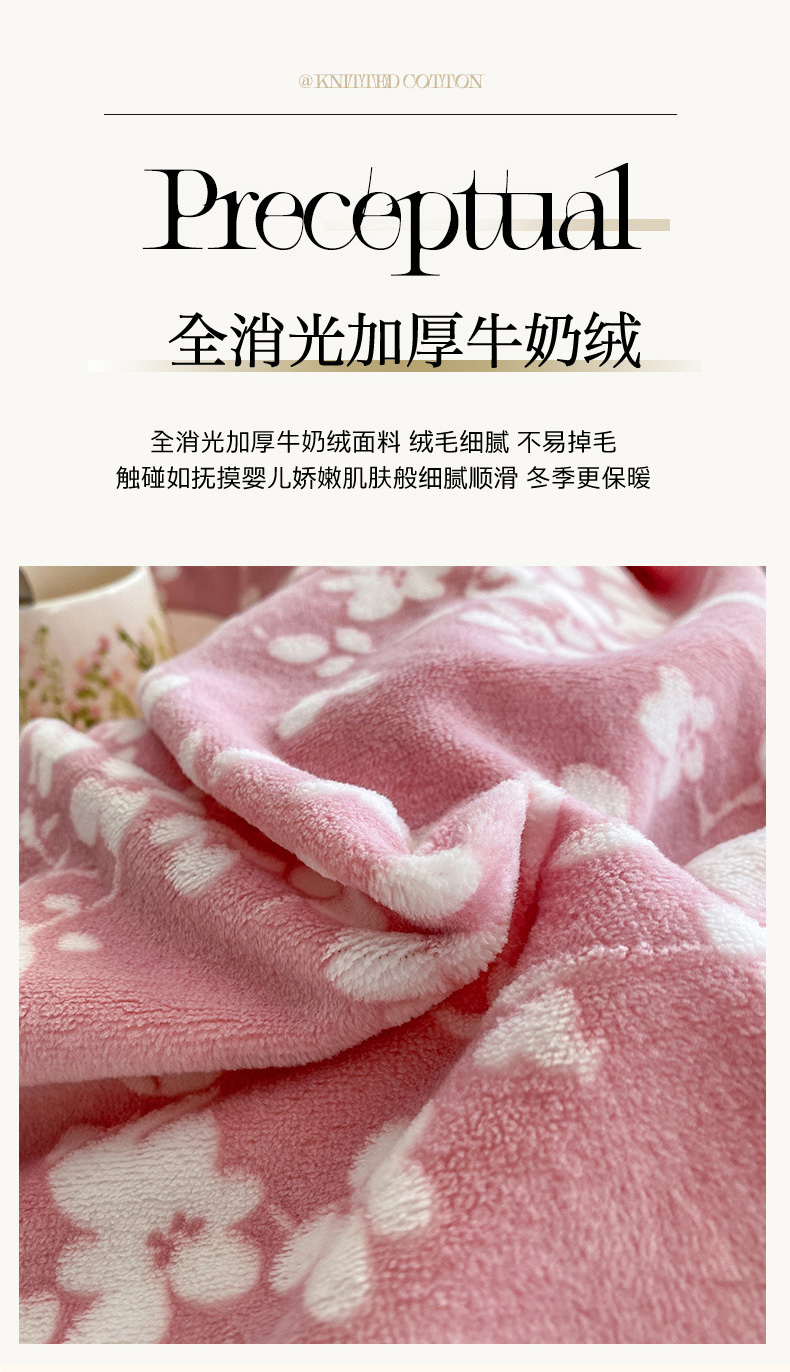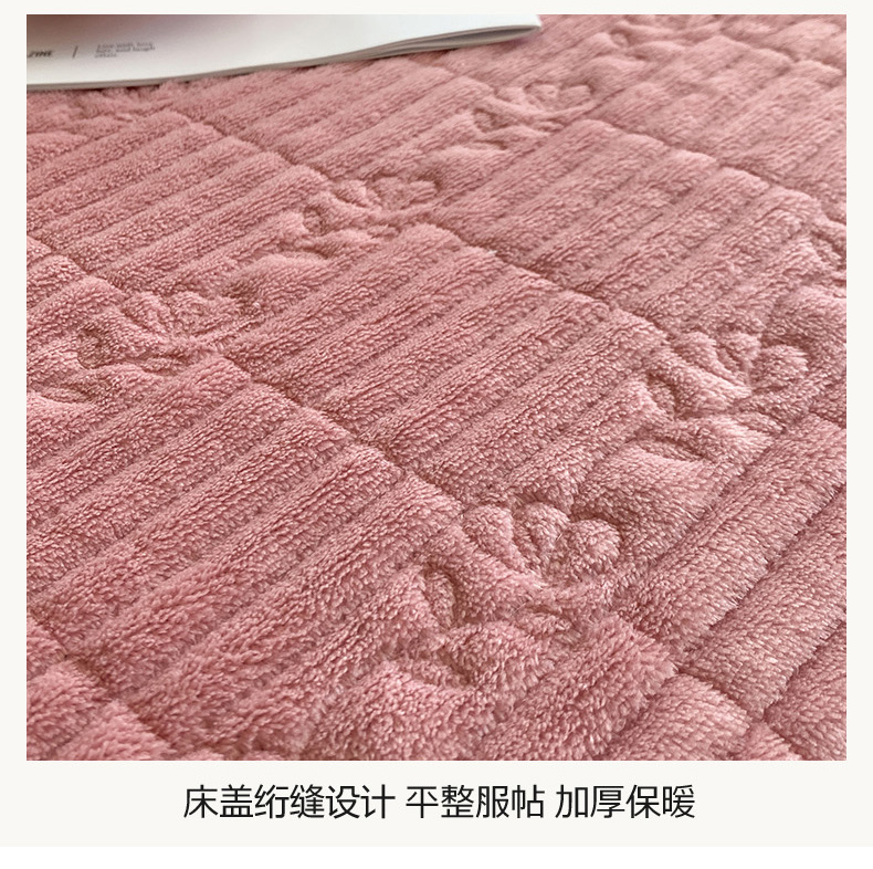 商品名称:青竹苑 2025新款韩版全消光烂花牛奶绒床盖四件套 樱花-豆沙