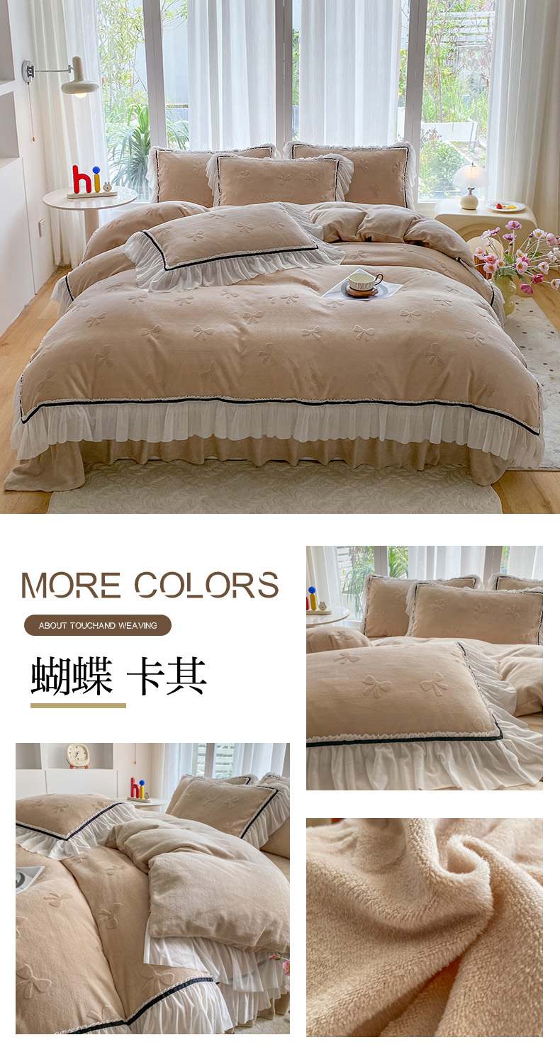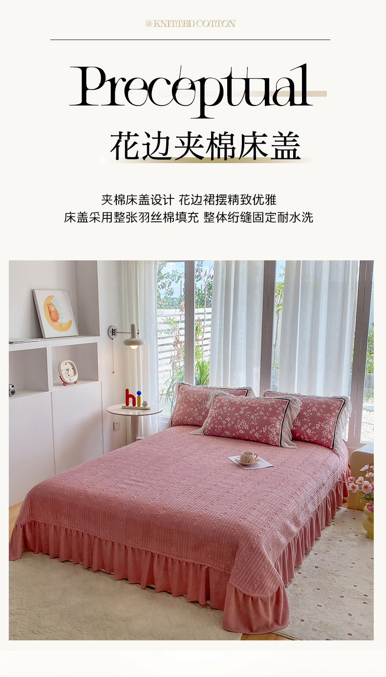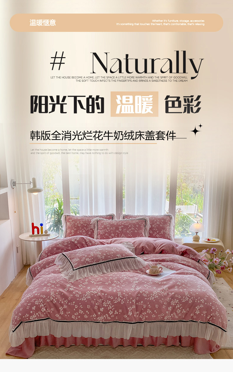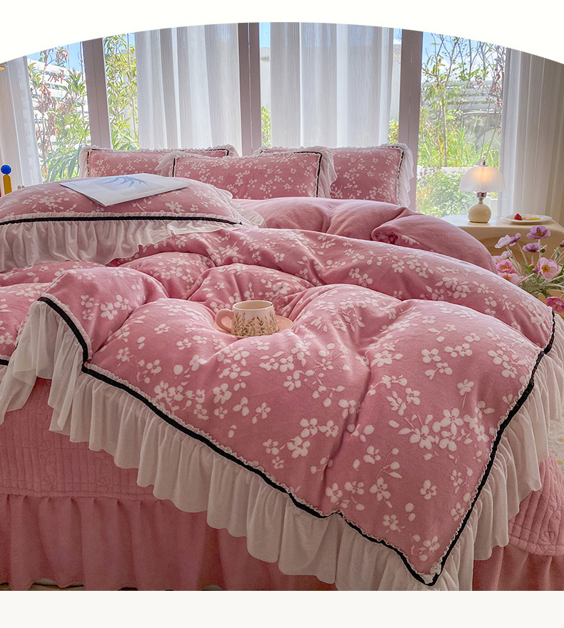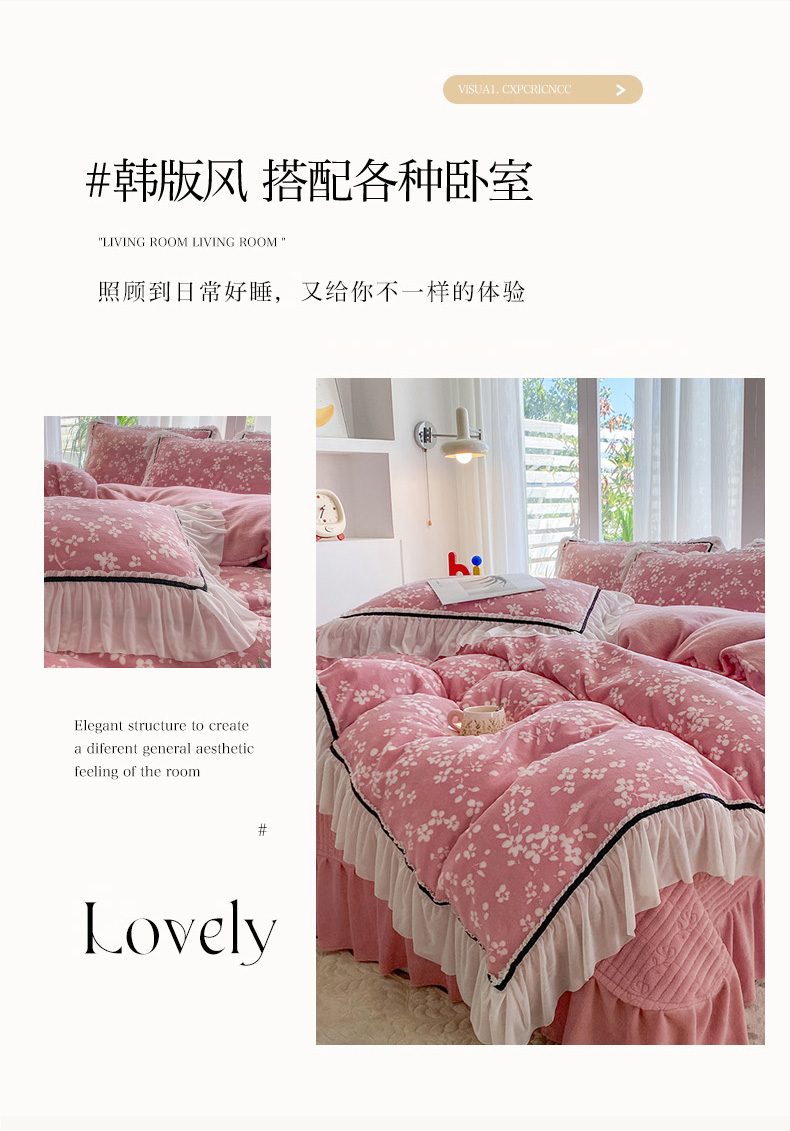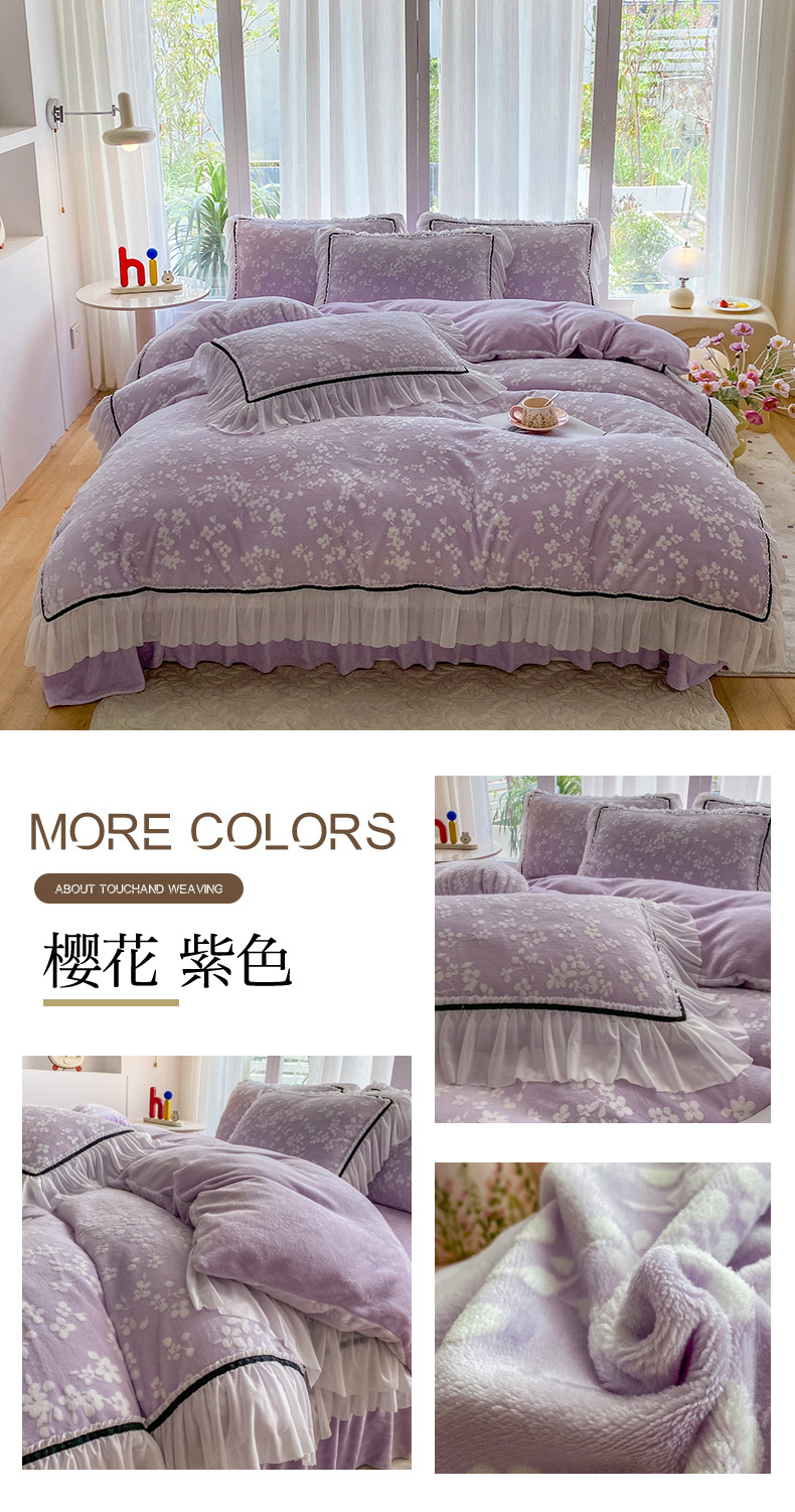 商品名称:青竹苑 2025新款韩版全消光烂花牛奶绒床盖四件套 樱花-豆沙