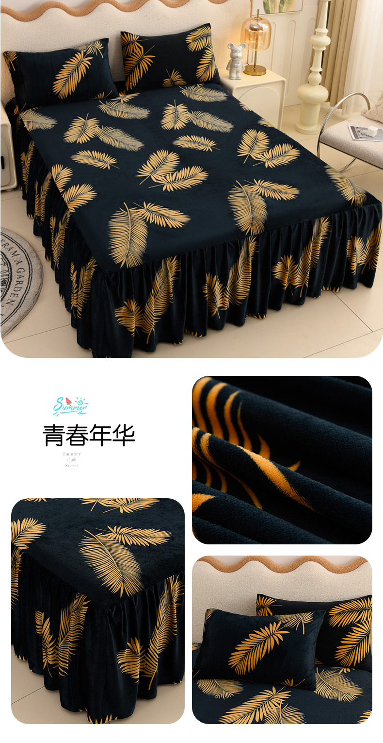 商品名称:圣靓 2025新款高克重牛奶绒印花床裙三件套 青春年华