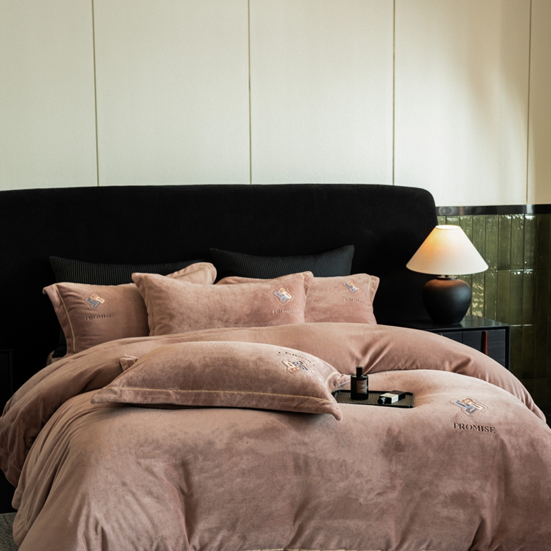 (总)时亿 2023新款加厚保暖獭兔绒四件套,抹茶绿,肉肉粉