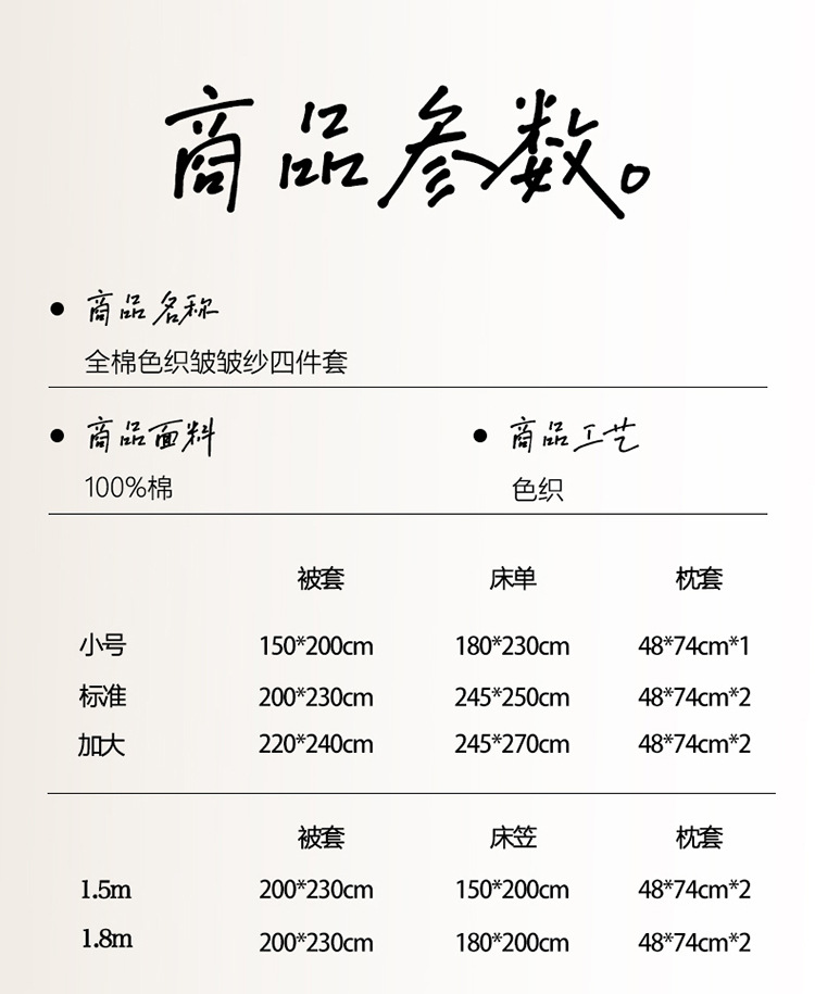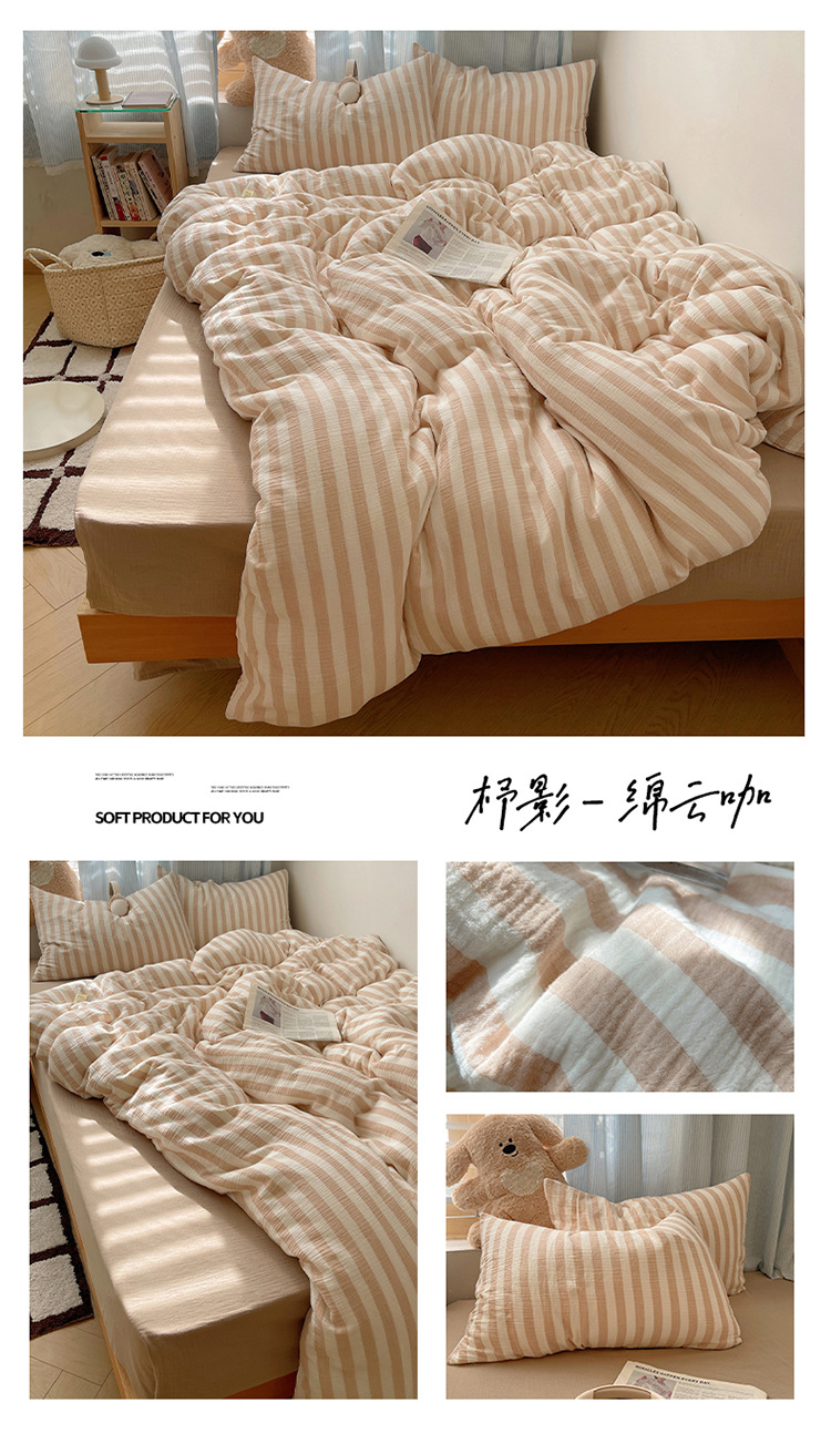 商品名称:良品汇馆 2025【全棉色织皱皱纱四件套】条纹A类双层纱套件民宿柔软床品 杼影-雨巷灰
