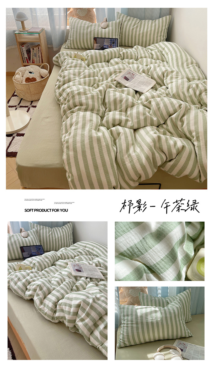 良品汇馆 2025【全棉色织皱皱纱四件套】条纹A类双层纱套件民宿柔软床品 杼影-雨巷灰