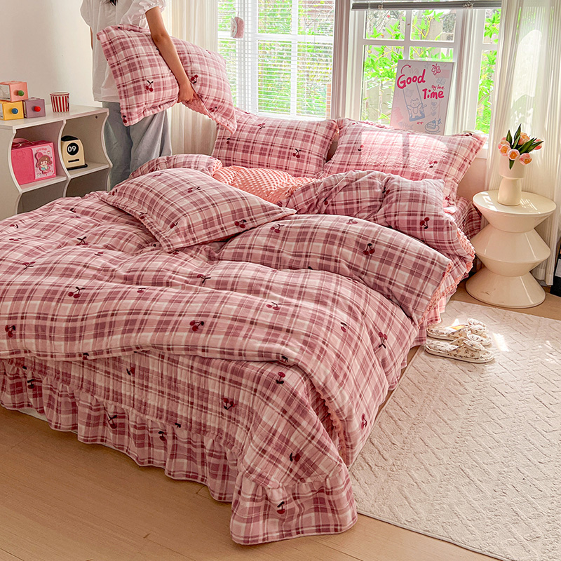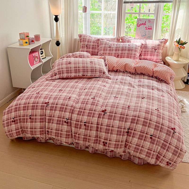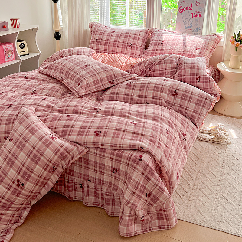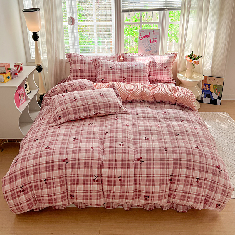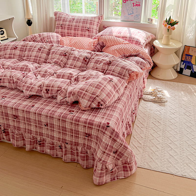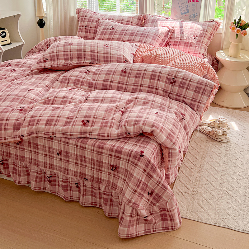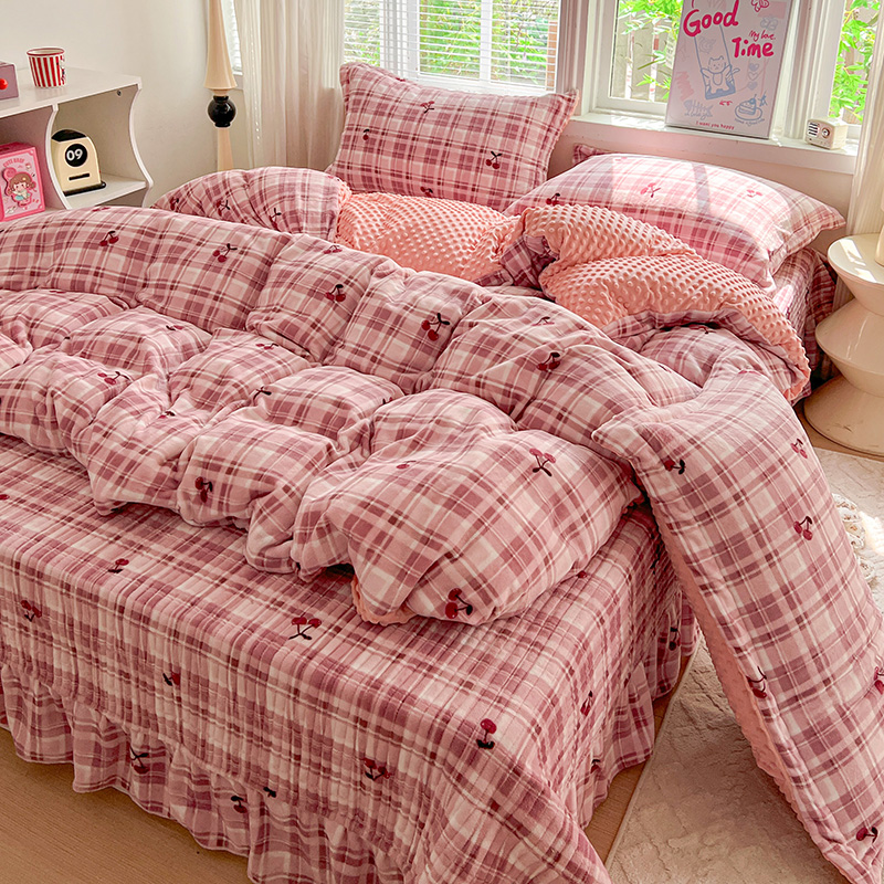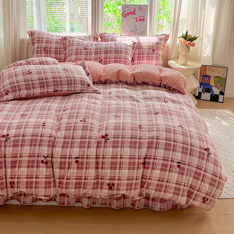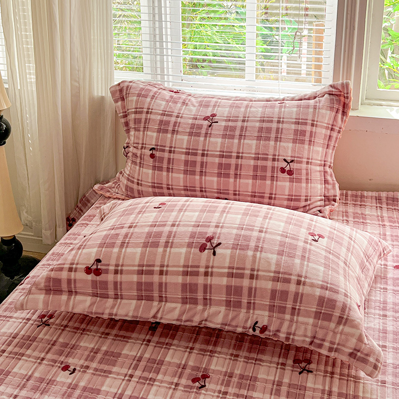 当前位置: 91家纺网 > 商品网购 > 床品套件 > 四件套 > 牛奶绒四件套 > 一比一 2025新款加厚保暖豆豆牛奶绒床盖款四件套车厘子