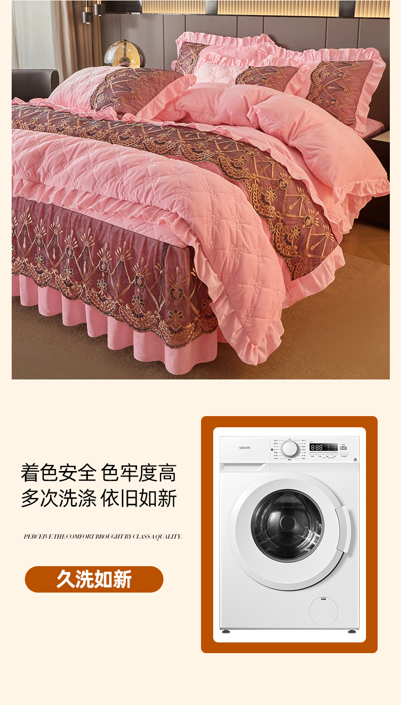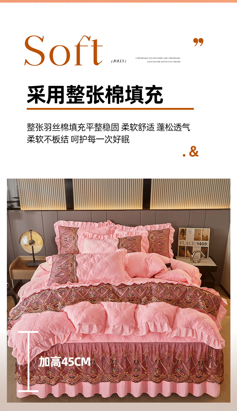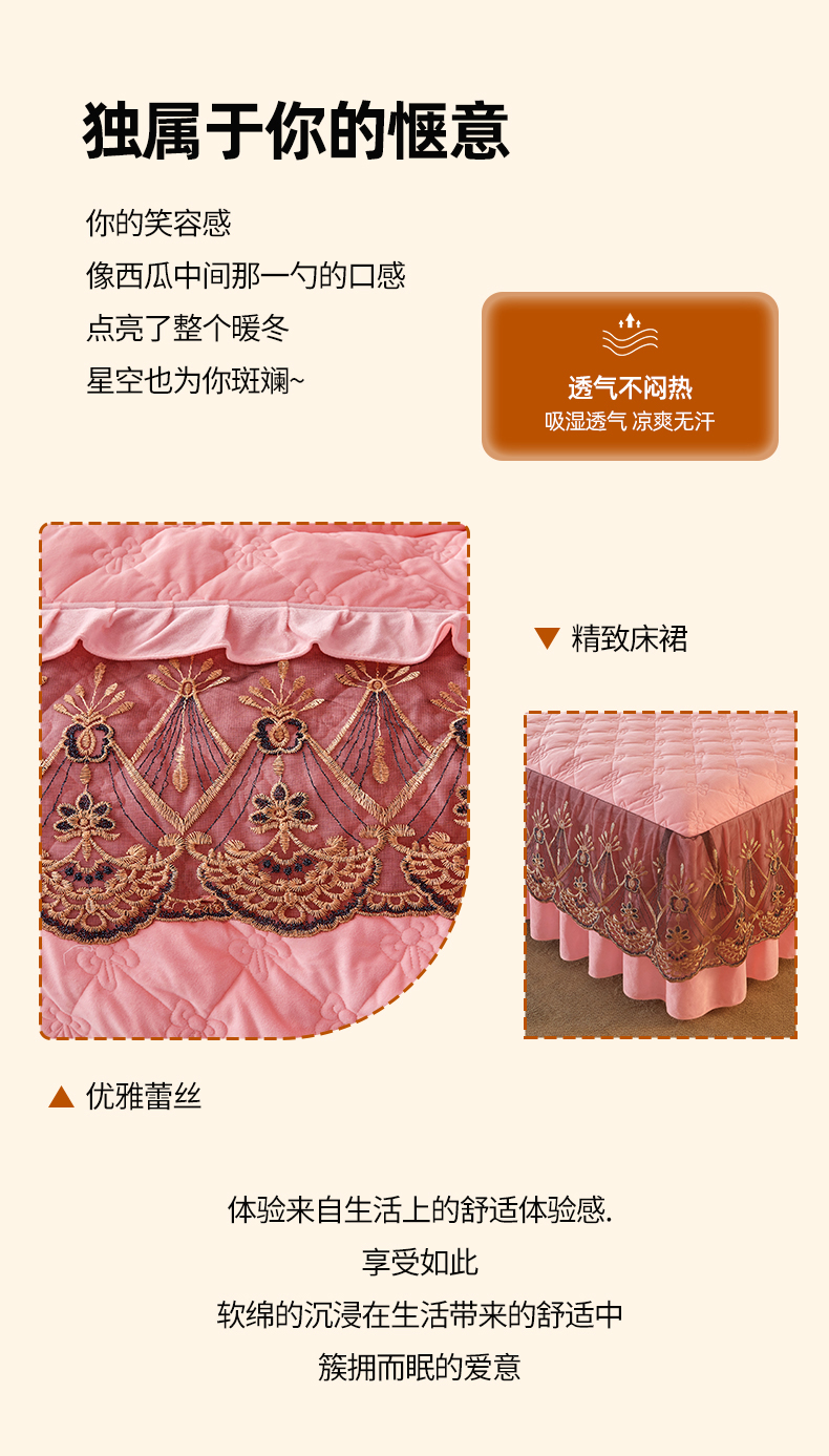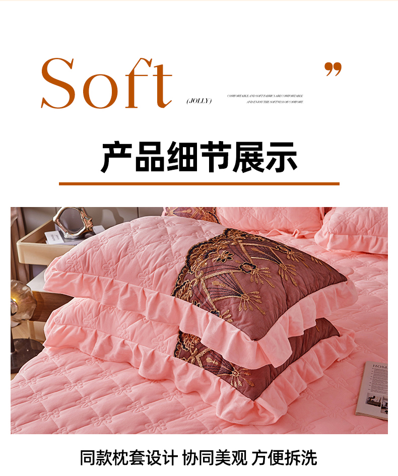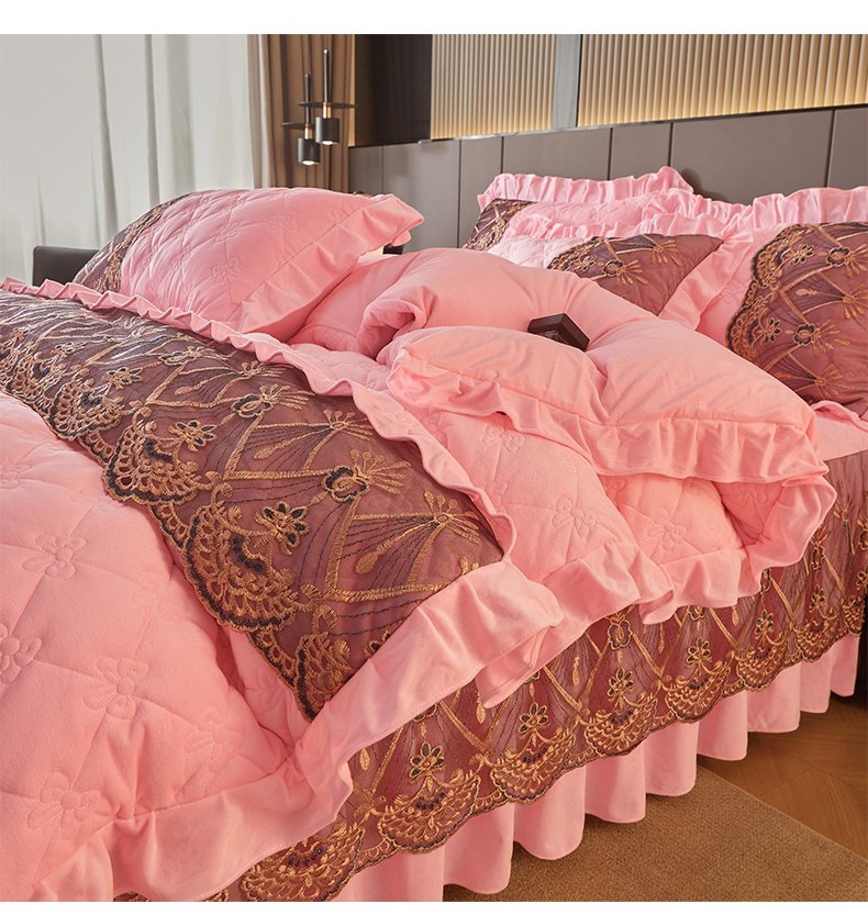 当前位置: 91家纺网 > 商品网购 > 床品套件 > 四件套 > 水晶绒四件套 > 屹成家纺2025新款水晶绒夹棉绗缝床裙四件套(塞纳河畔)四件套起售价不低于230元 粉玉