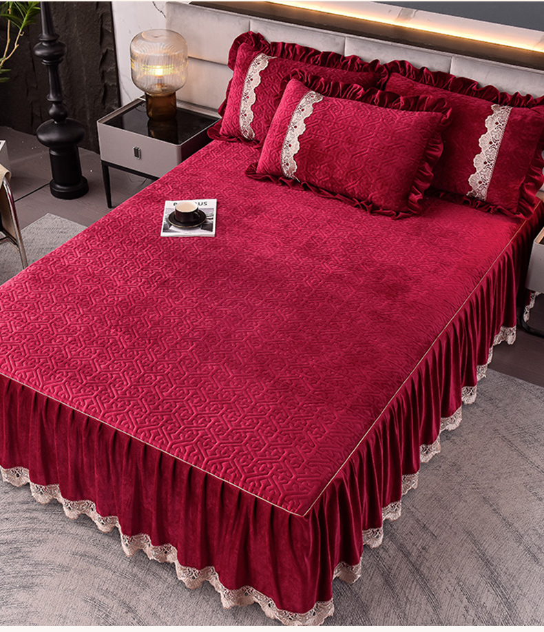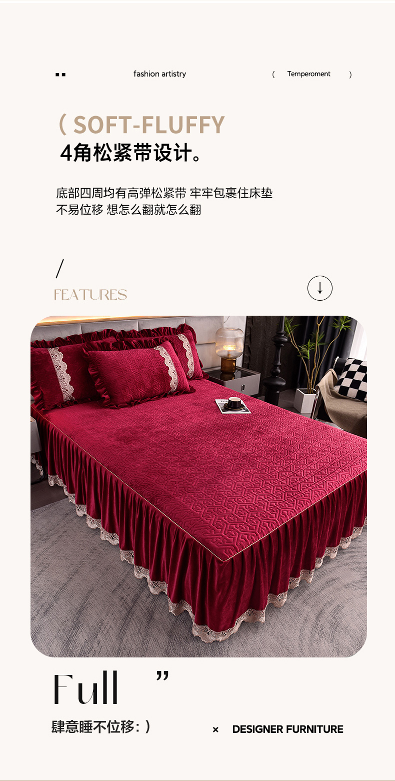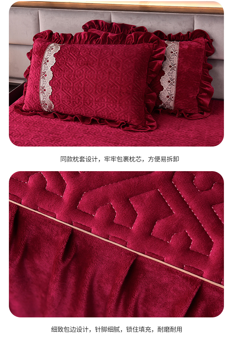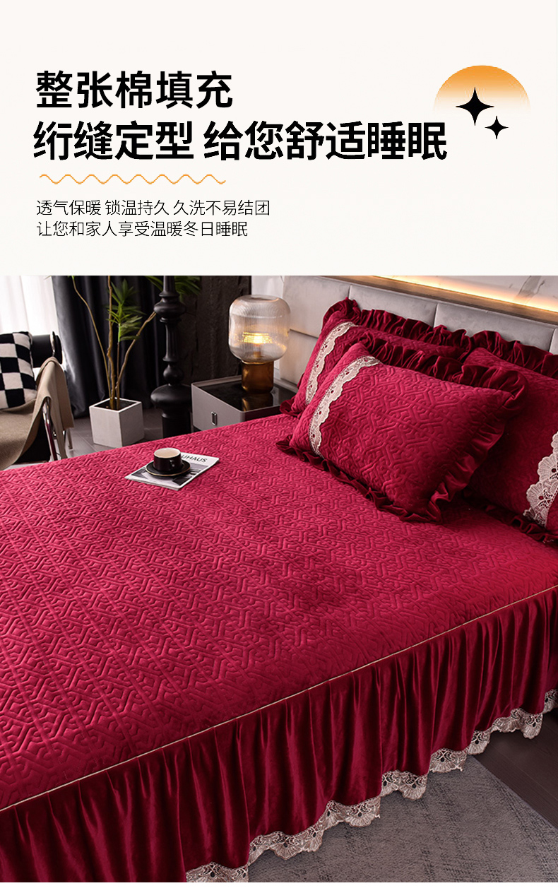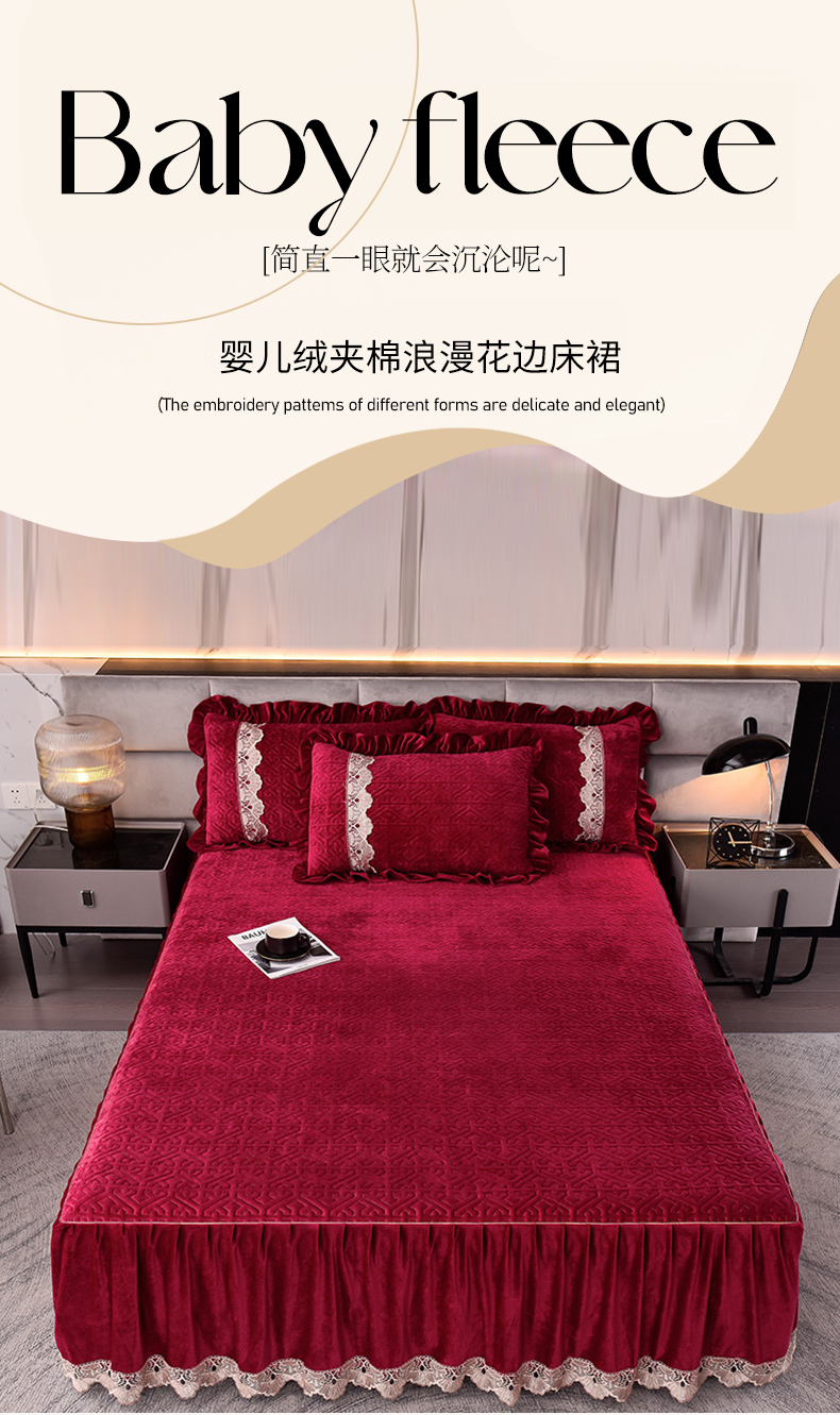 商品名称:忘忧草 2025新款婴儿绒夹棉单床裙 床裙单件-安娜系列 安娜-亮酒红